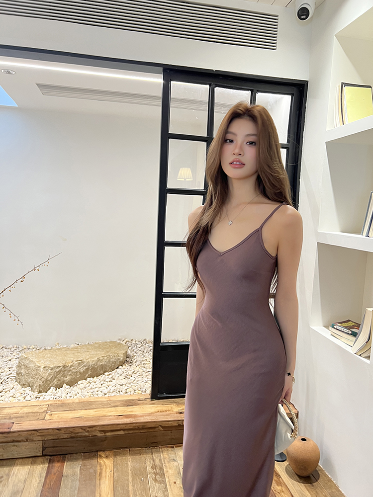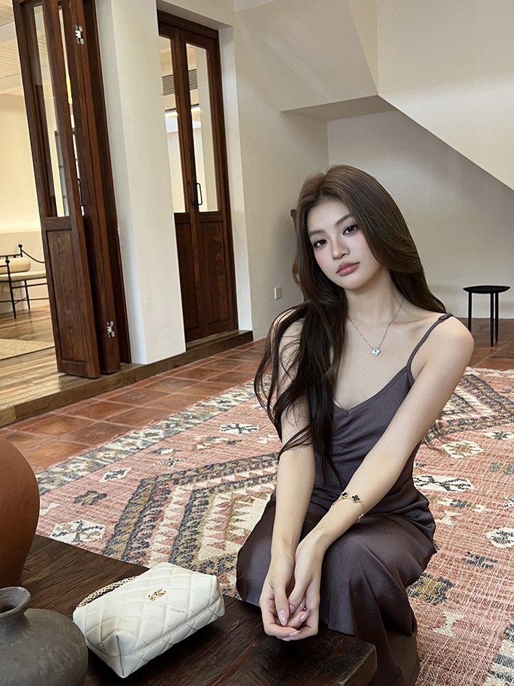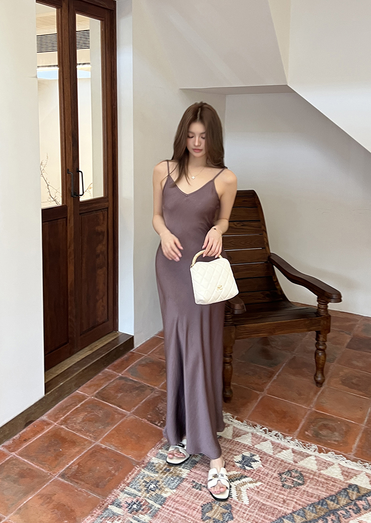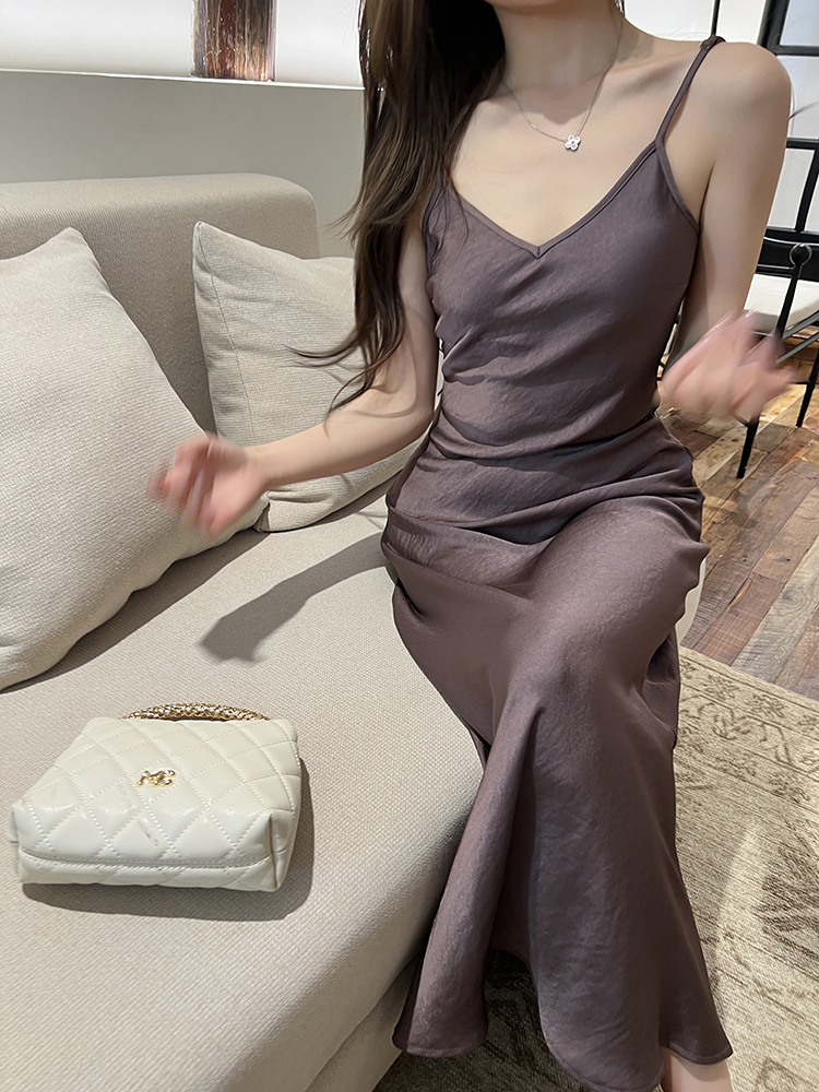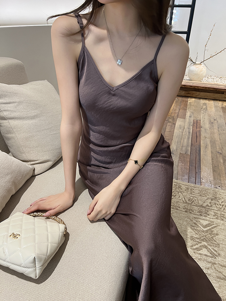 实拍2026春夏新款优雅知性高级感缎面吊带裙女连衣裙气质垂感长裙