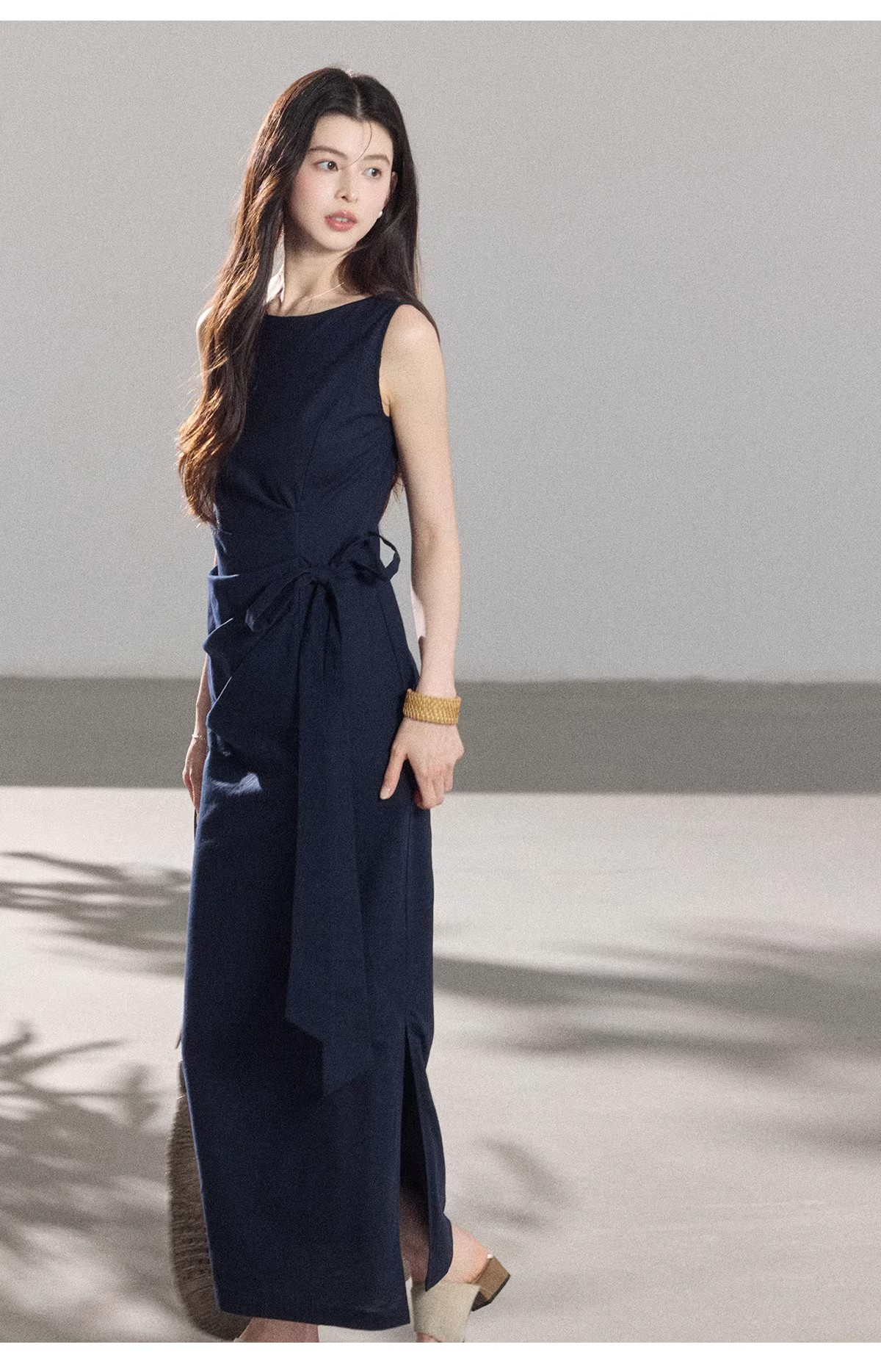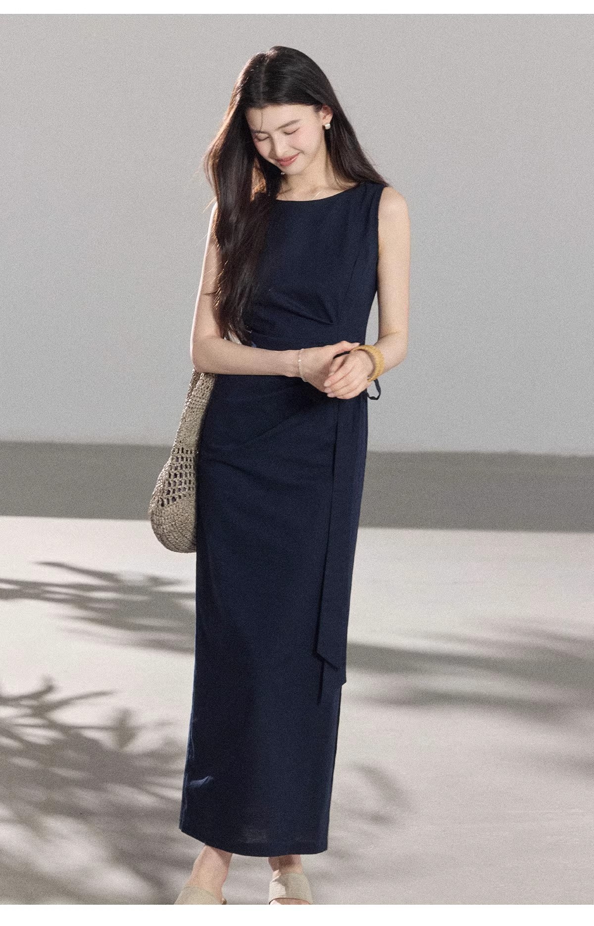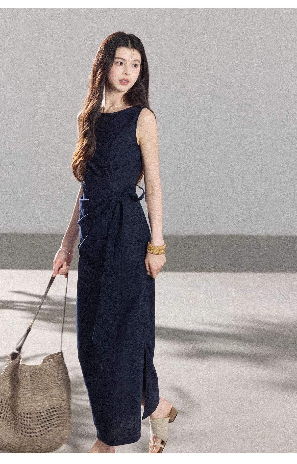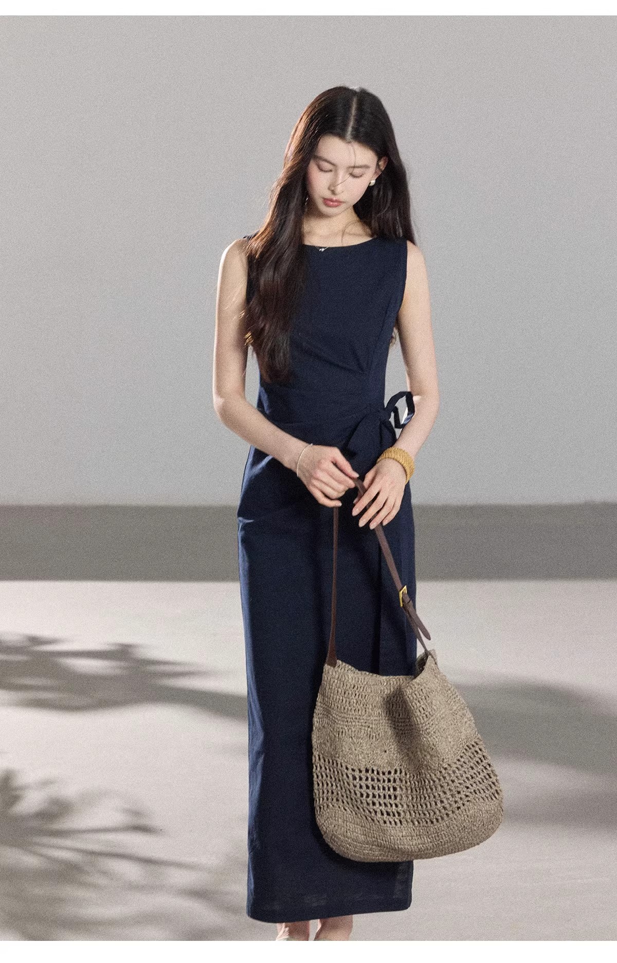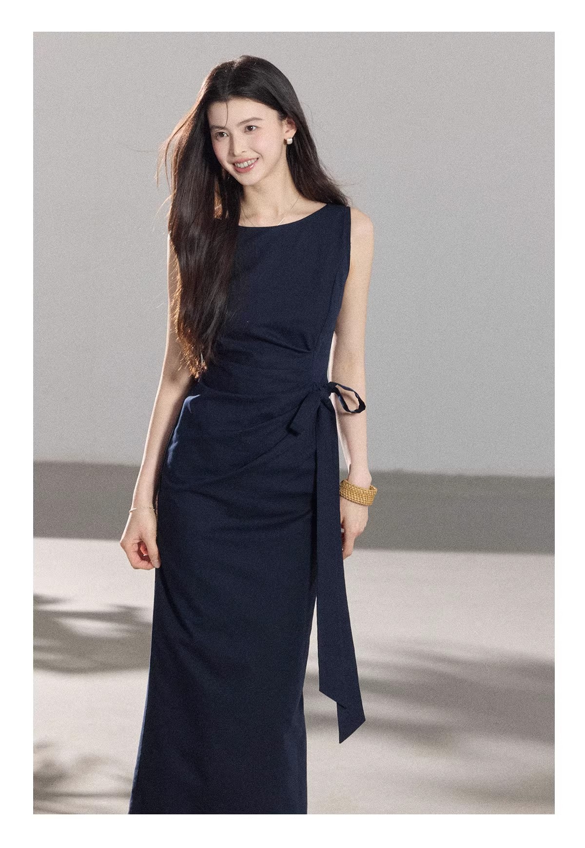 高级感气质收腰系带连衣裙女通勤百搭背心裙