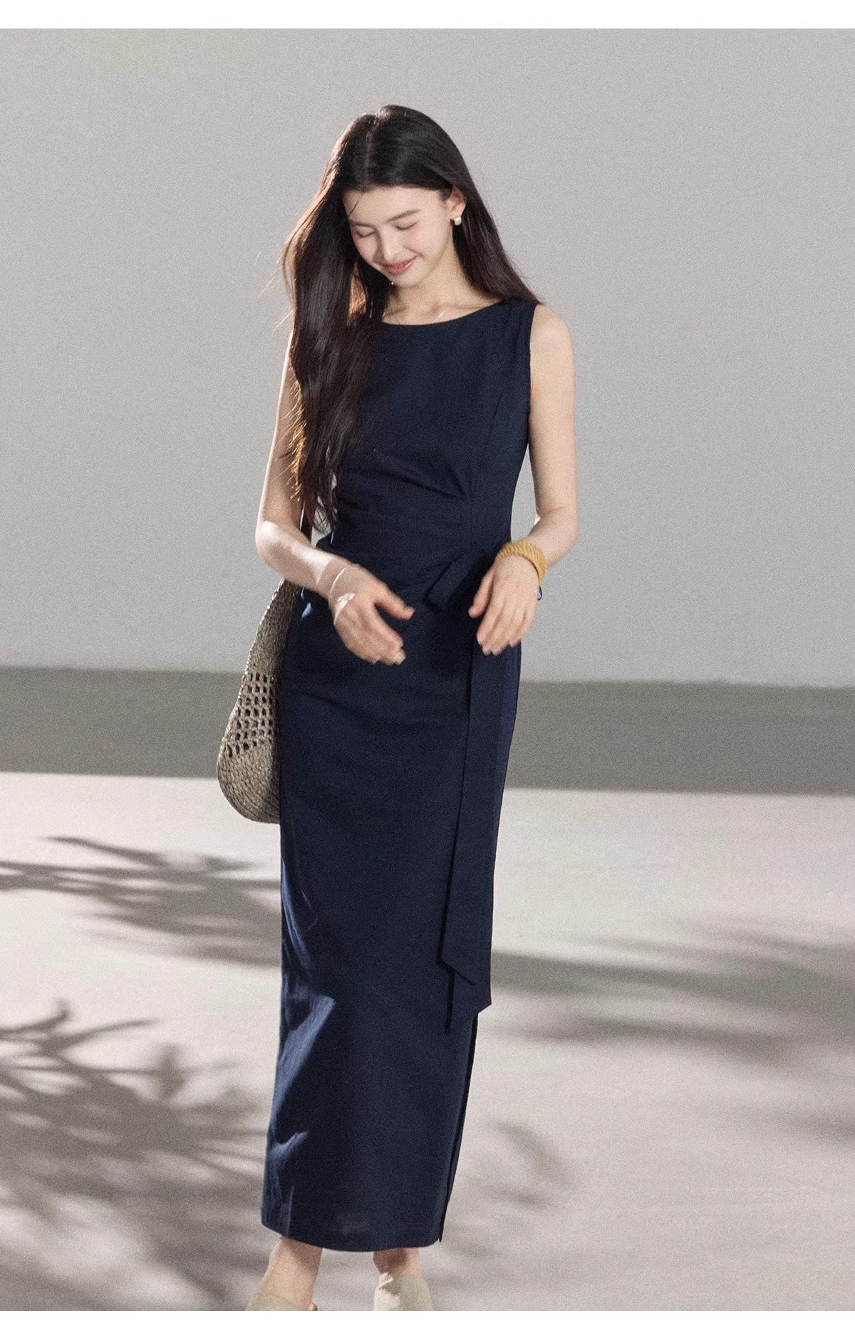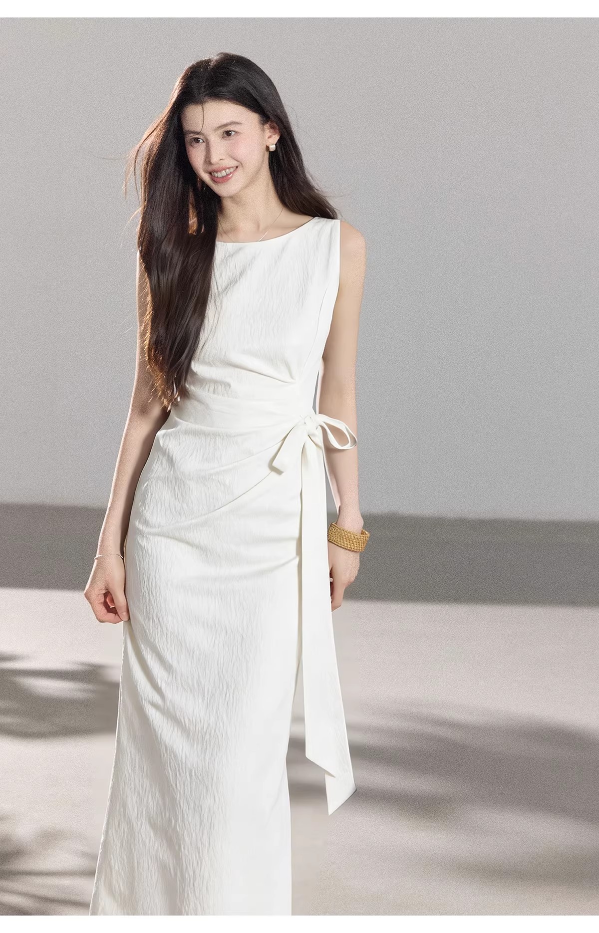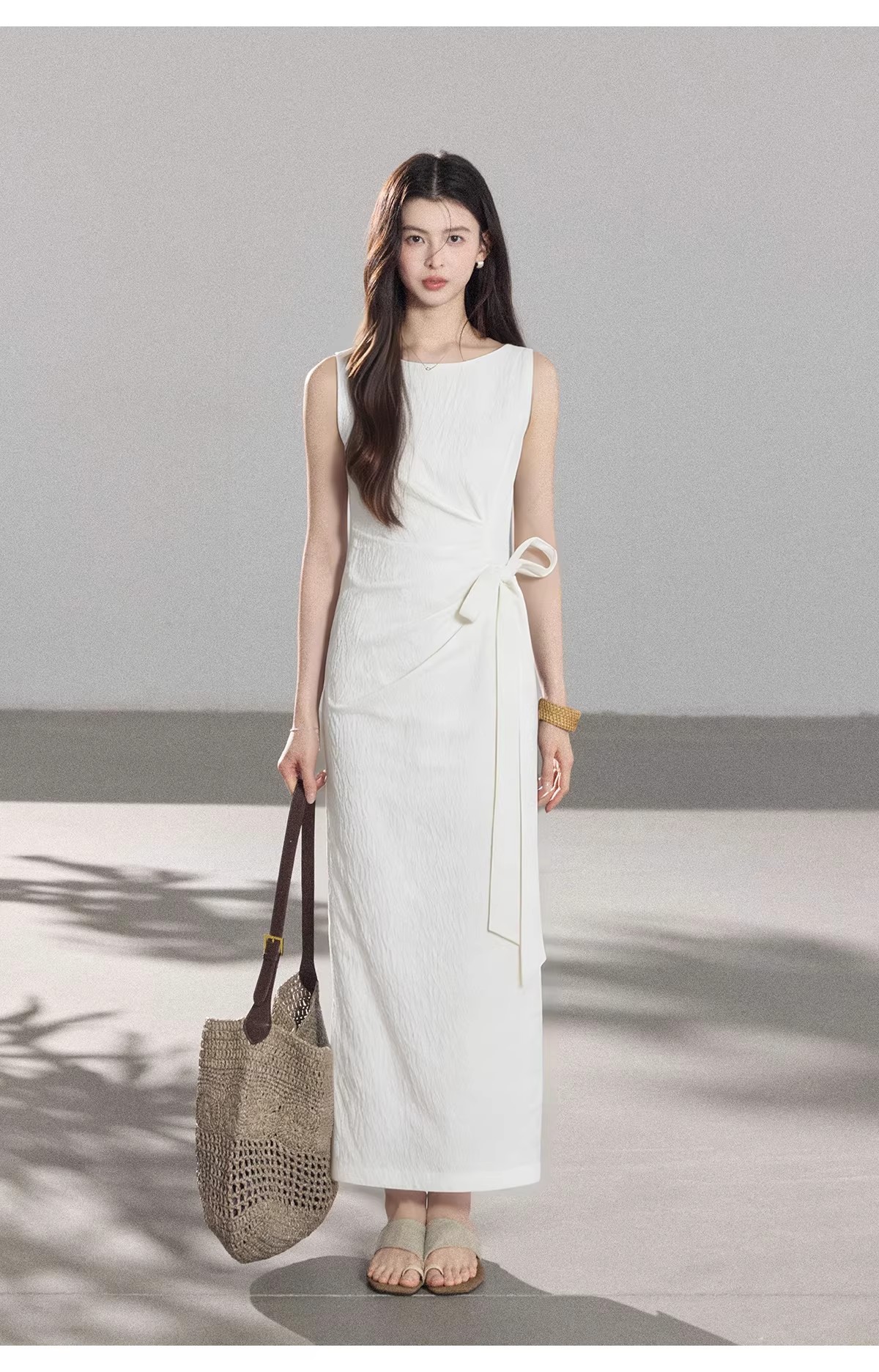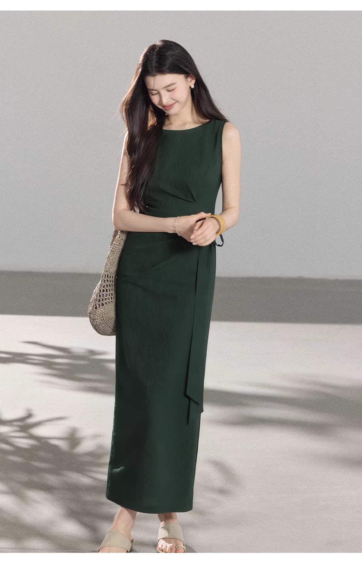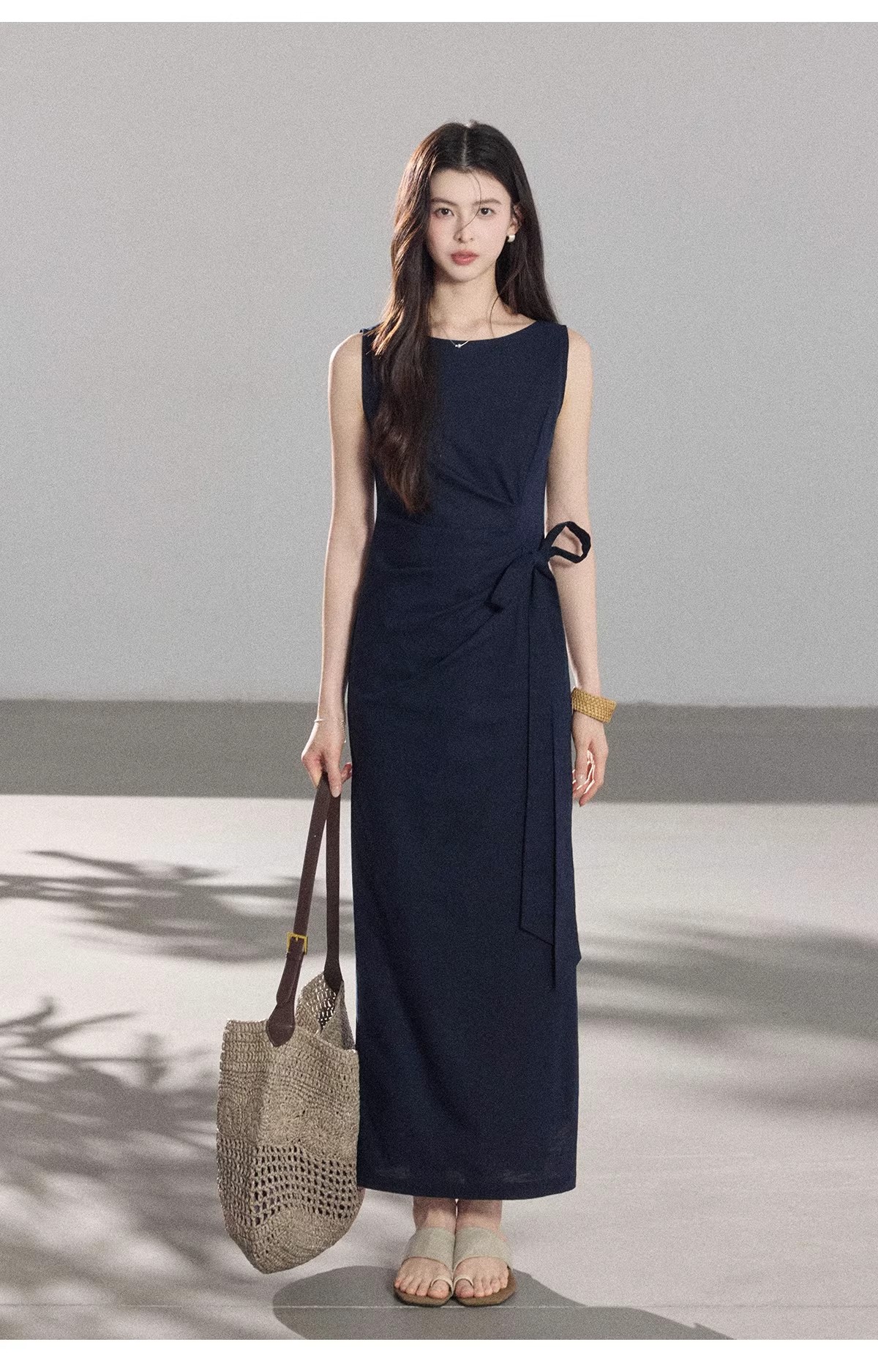 高级感气质收腰系带连衣裙女通勤百搭背心裙