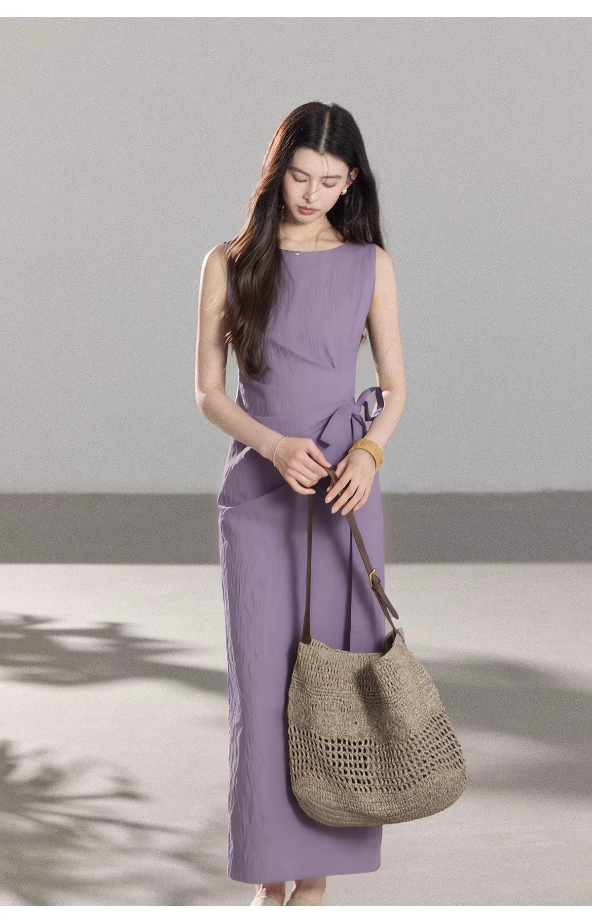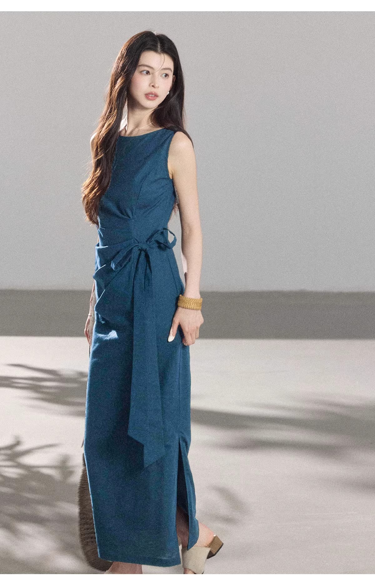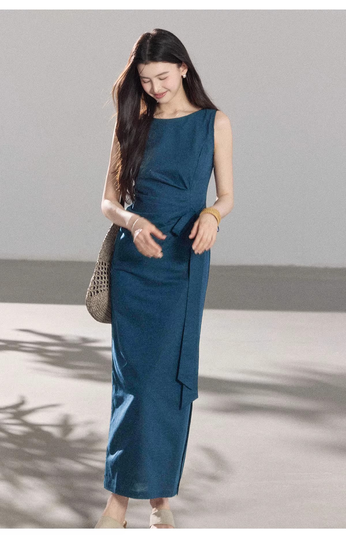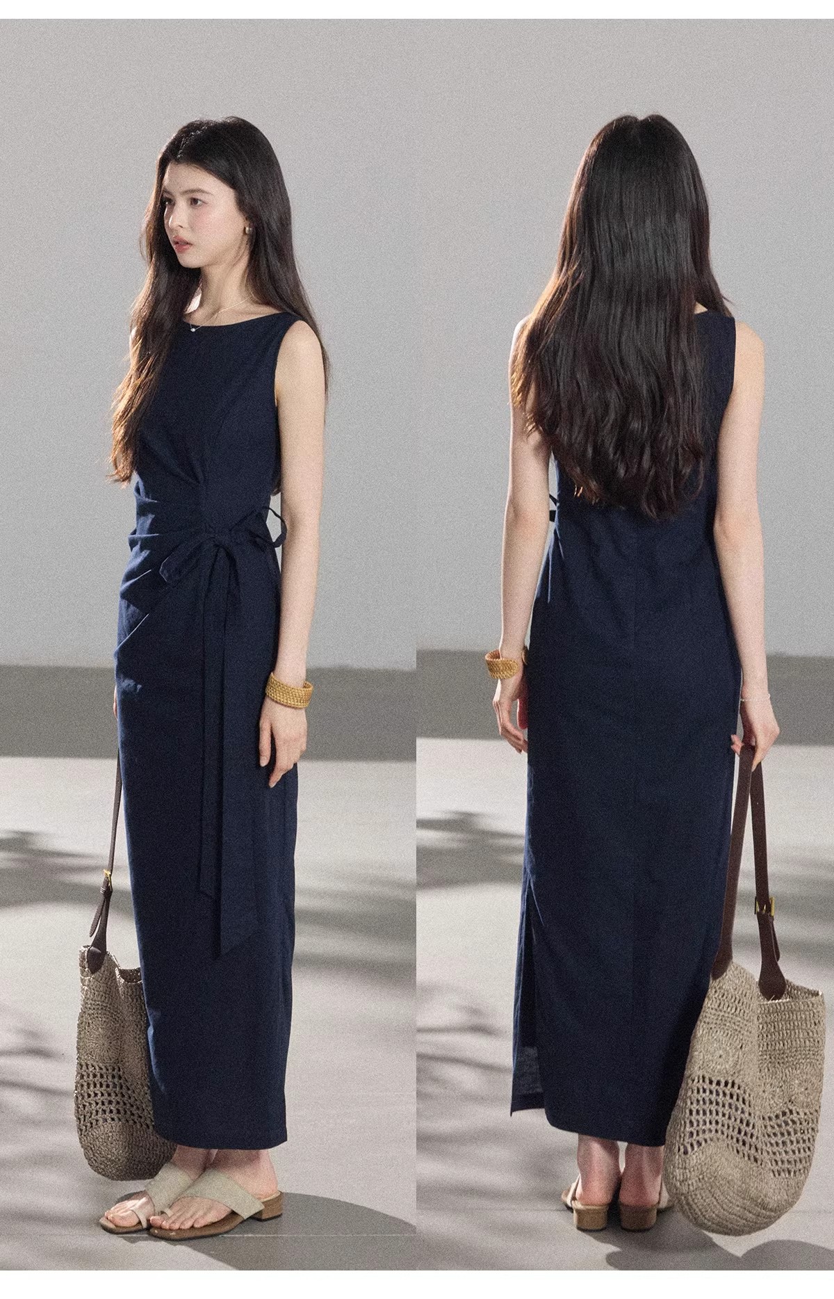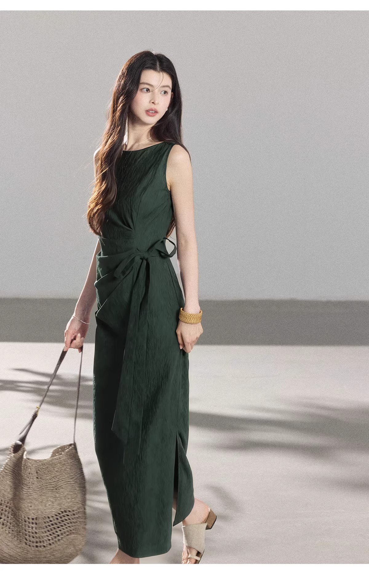 高级感气质收腰系带连衣裙女通勤百搭背心裙