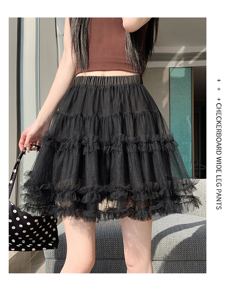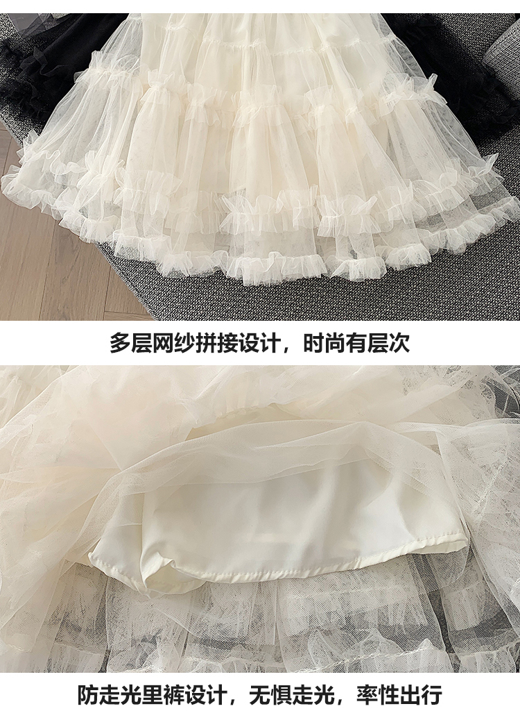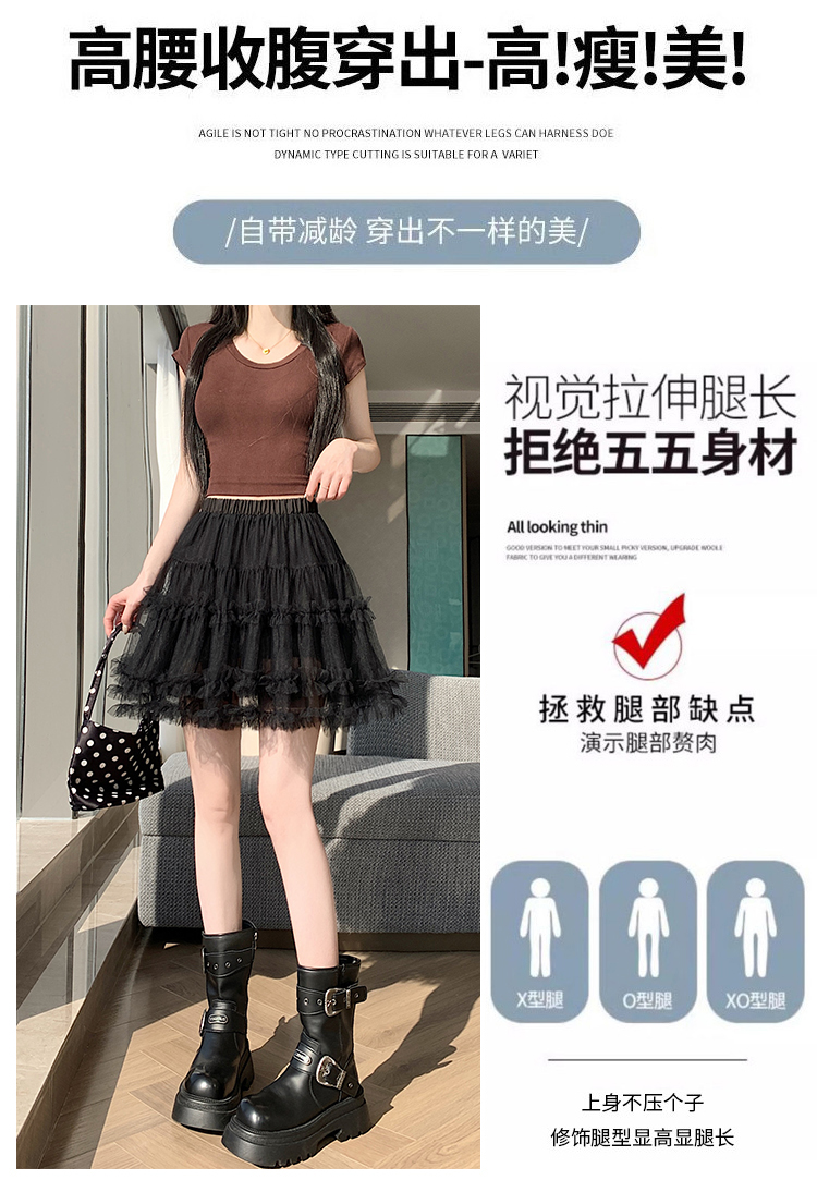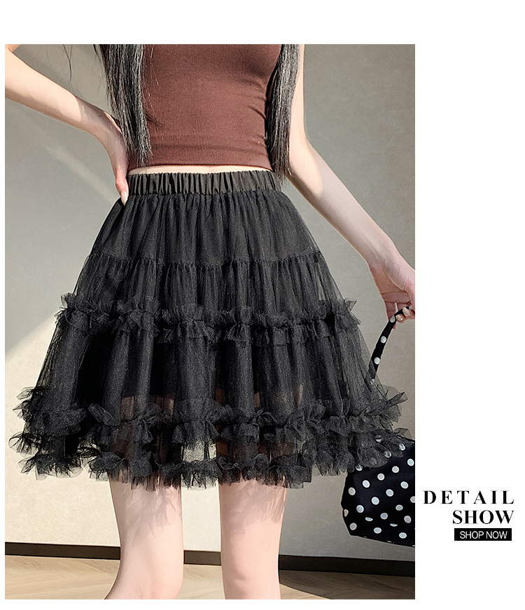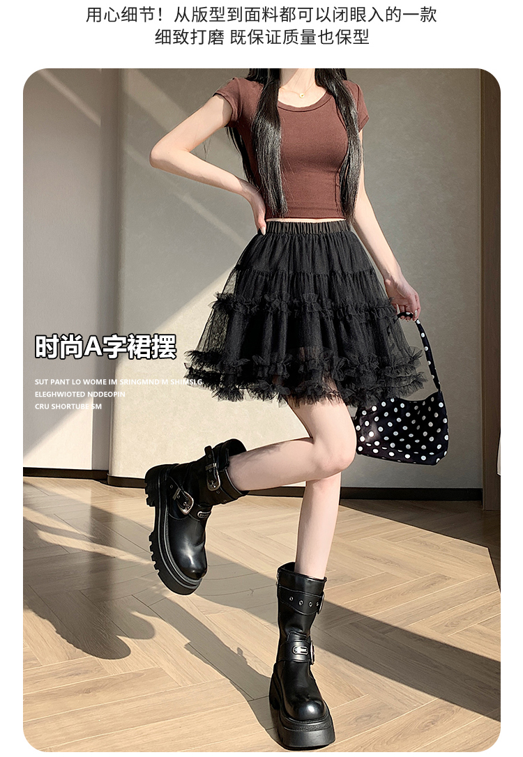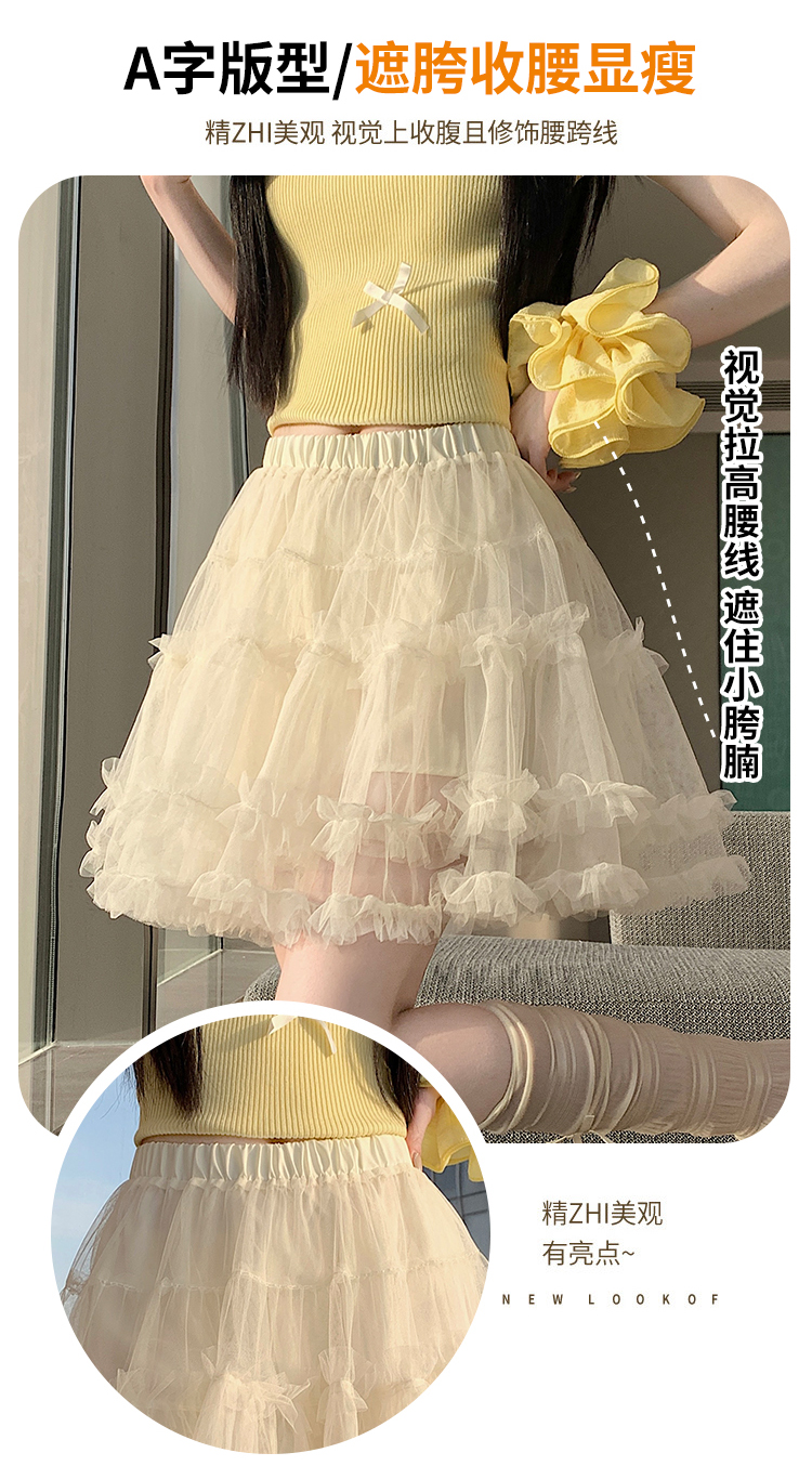 实拍芭蕾风木耳边蛋糕半身裙女夏2025新款高腰A字防走光蓬蓬短裙