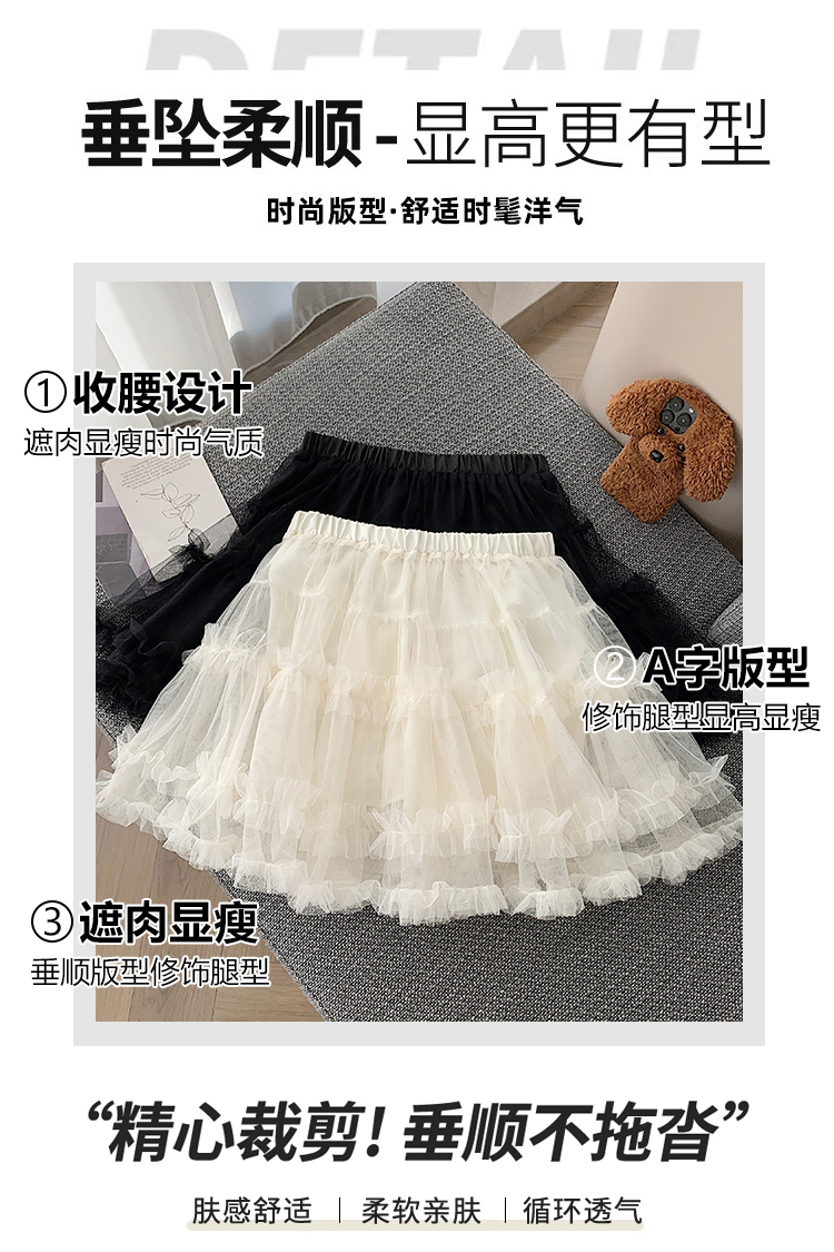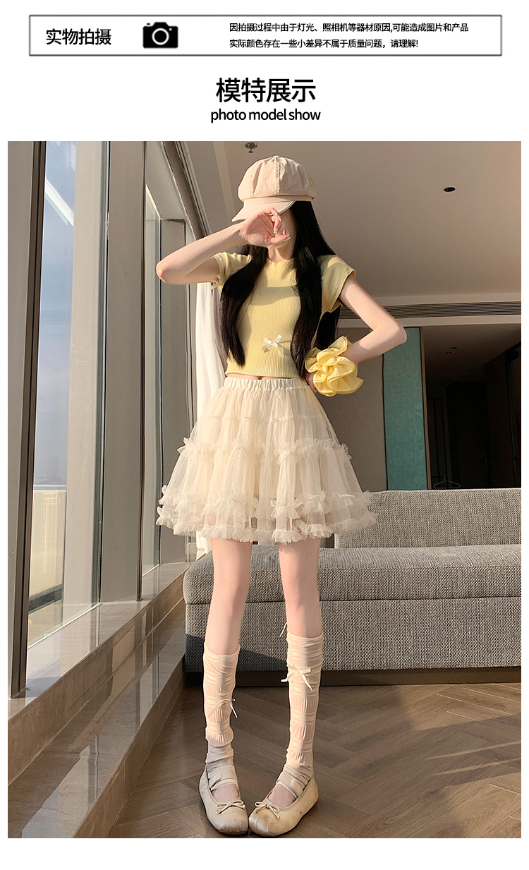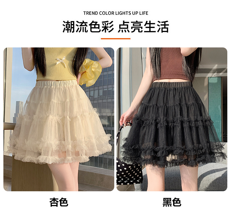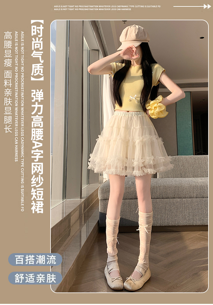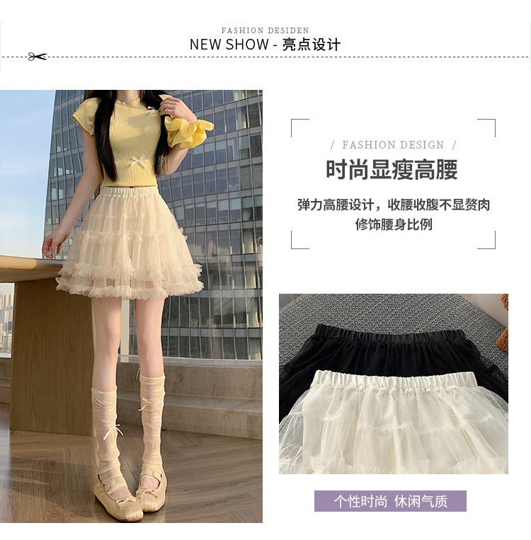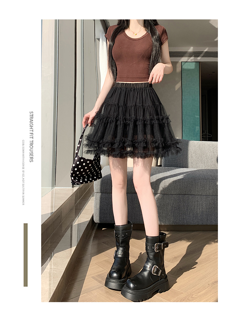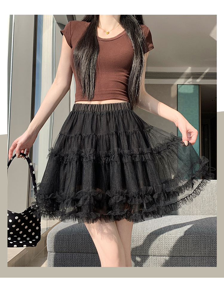 实拍芭蕾风木耳边蛋糕半身裙女夏2025新款高腰A字防走光蓬蓬短裙