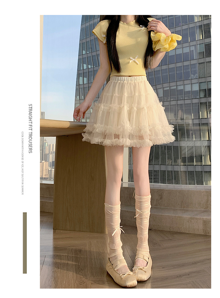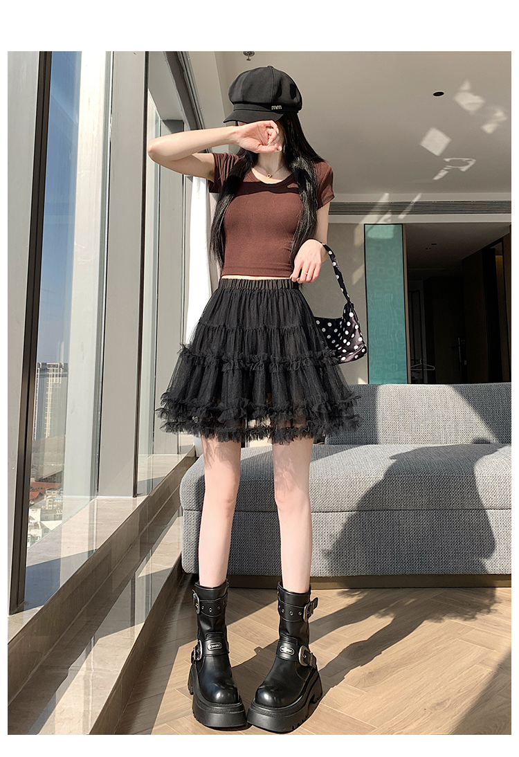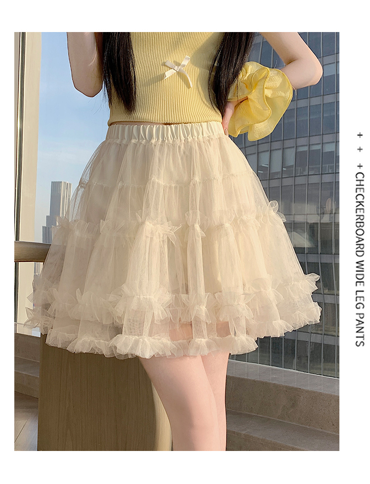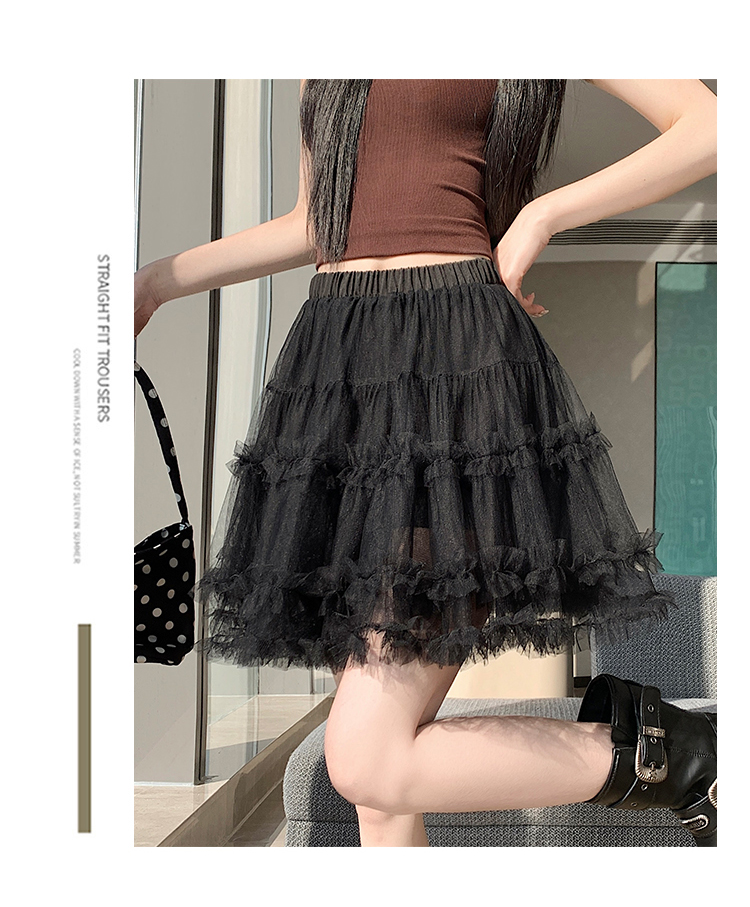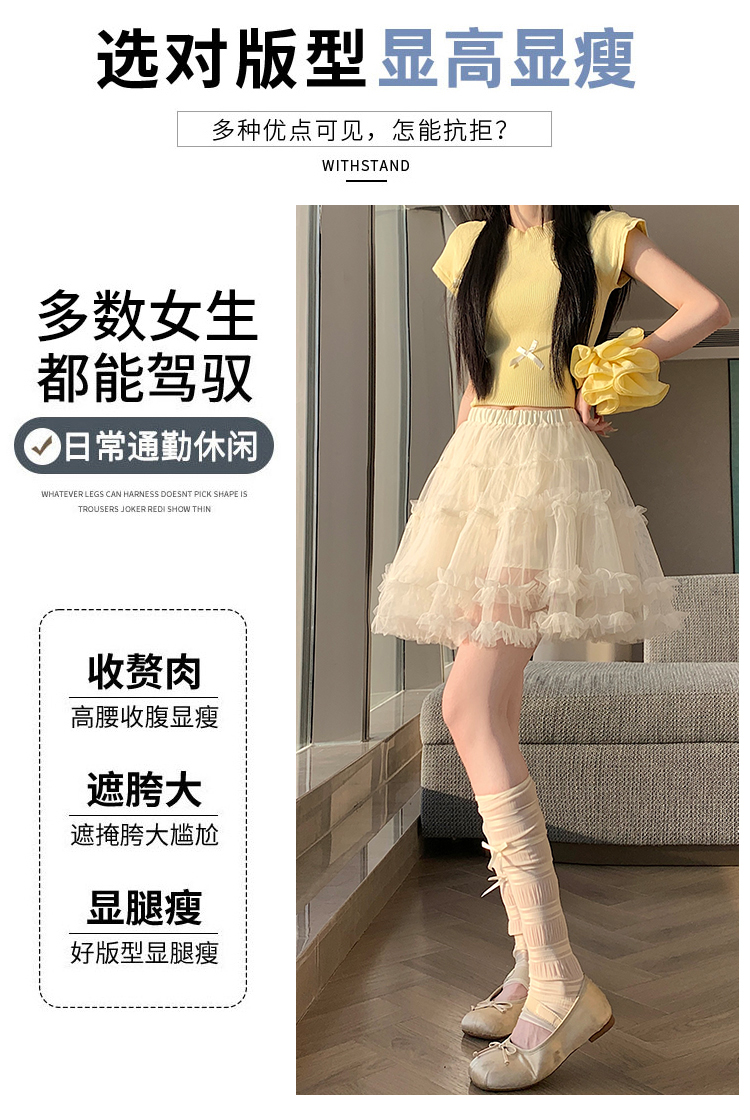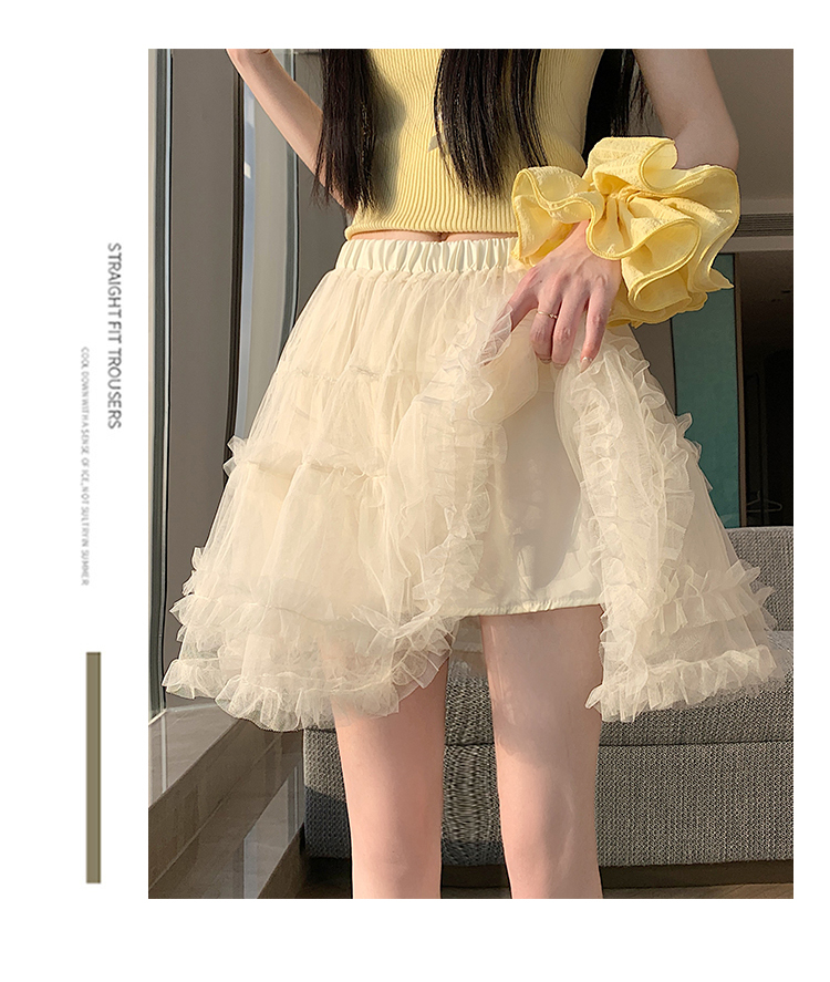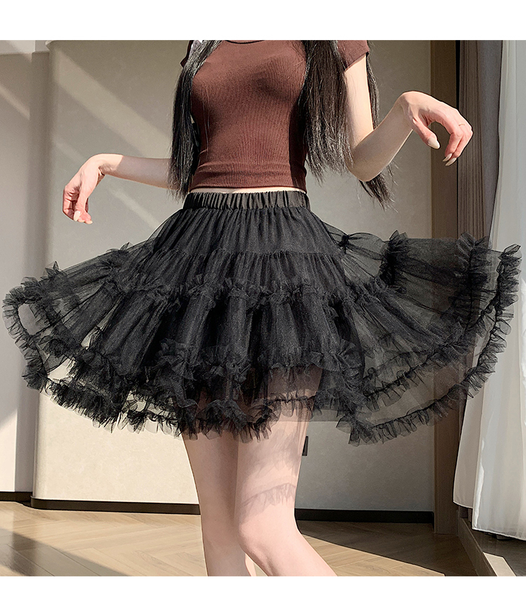 实拍芭蕾风木耳边蛋糕半身裙女夏2025新款高腰A字防走光蓬蓬短裙