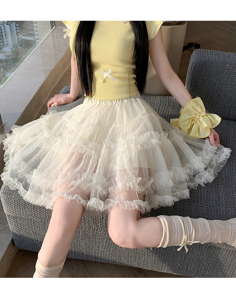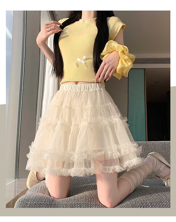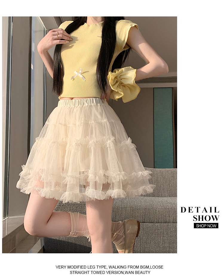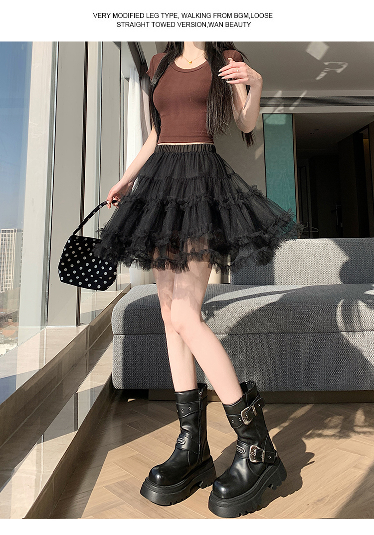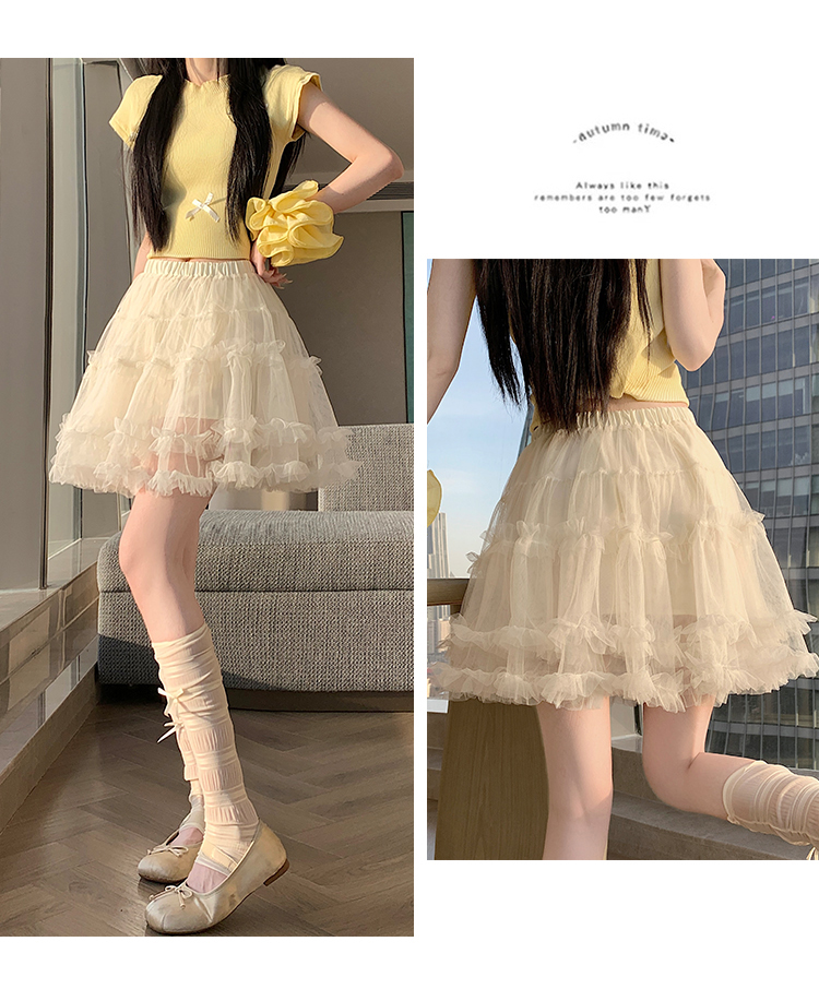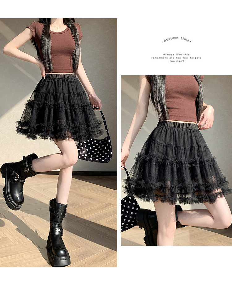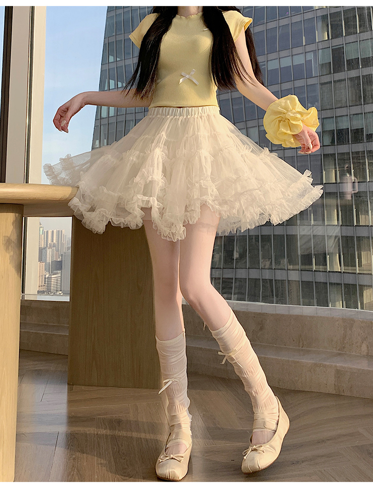 实拍芭蕾风木耳边蛋糕半身裙女夏2025新款高腰A字防走光蓬蓬短裙