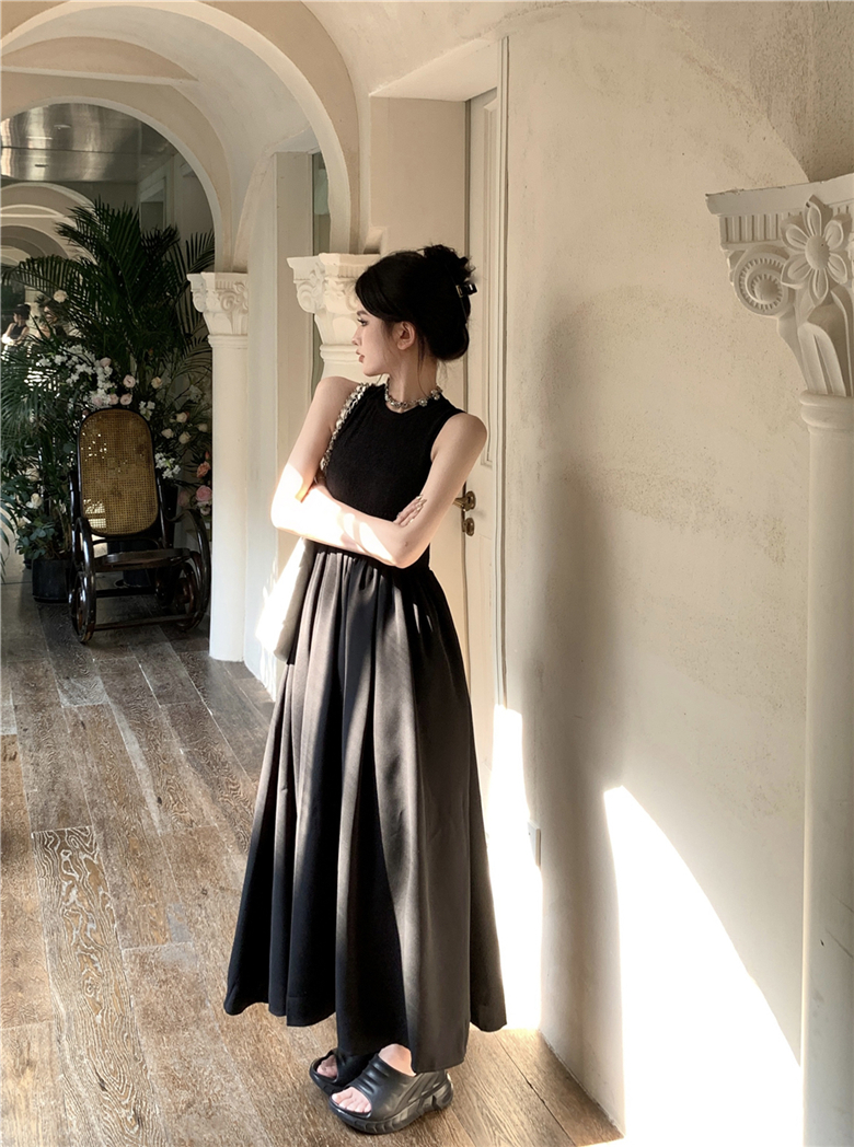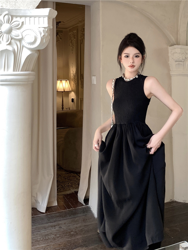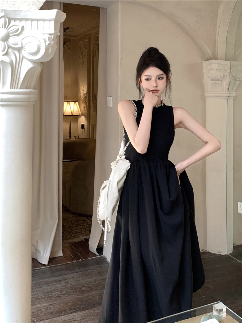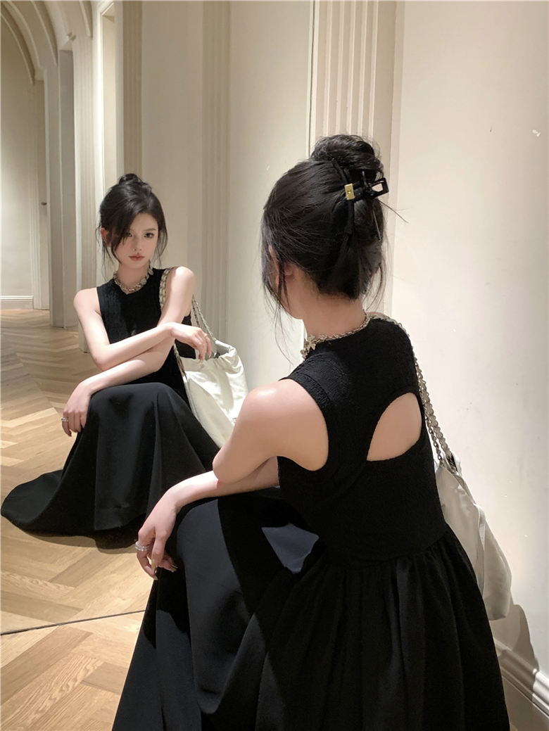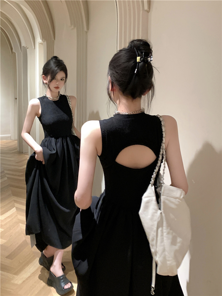实拍夏季法式复古连衣裙女设计感性感长裙收腰显瘦后背镂空长裙子