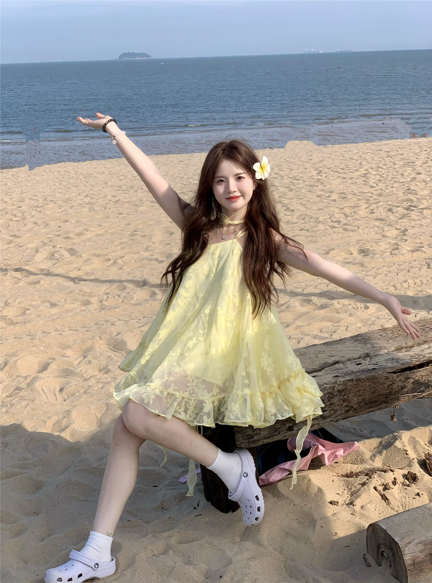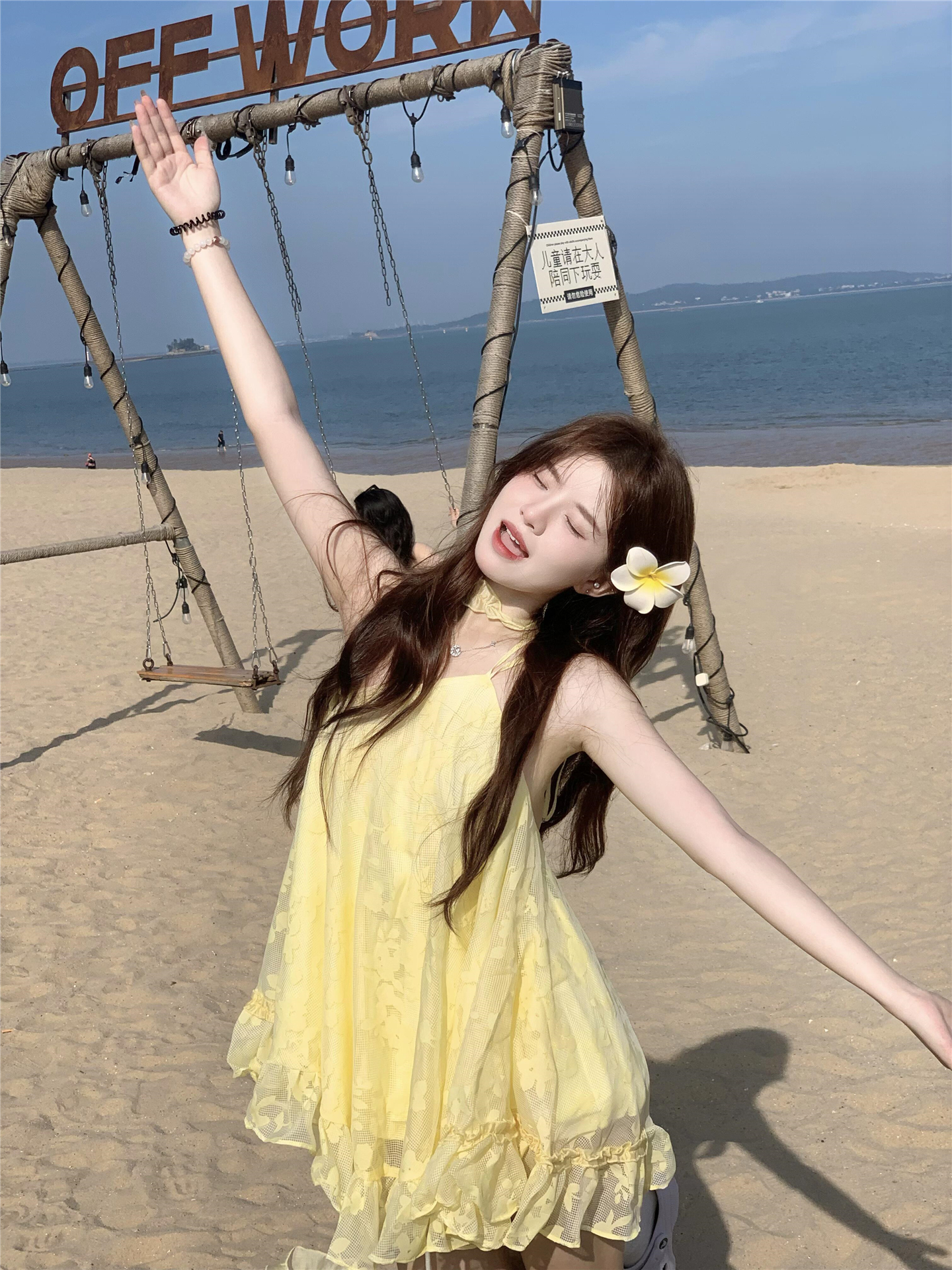 法式黄色吊带连衣裙女夏季2025新款爆款高级感超好看宽松显瘦短裙