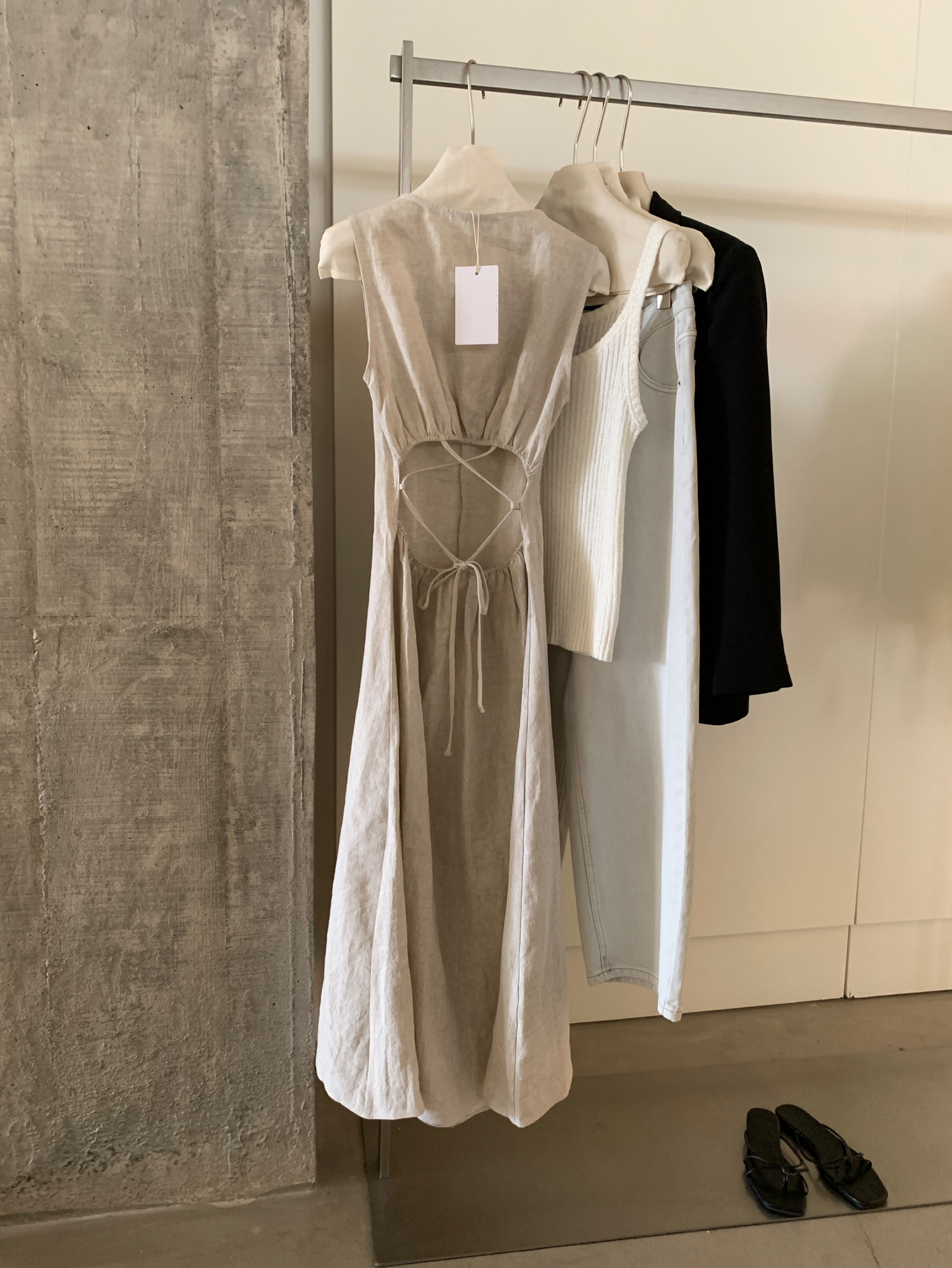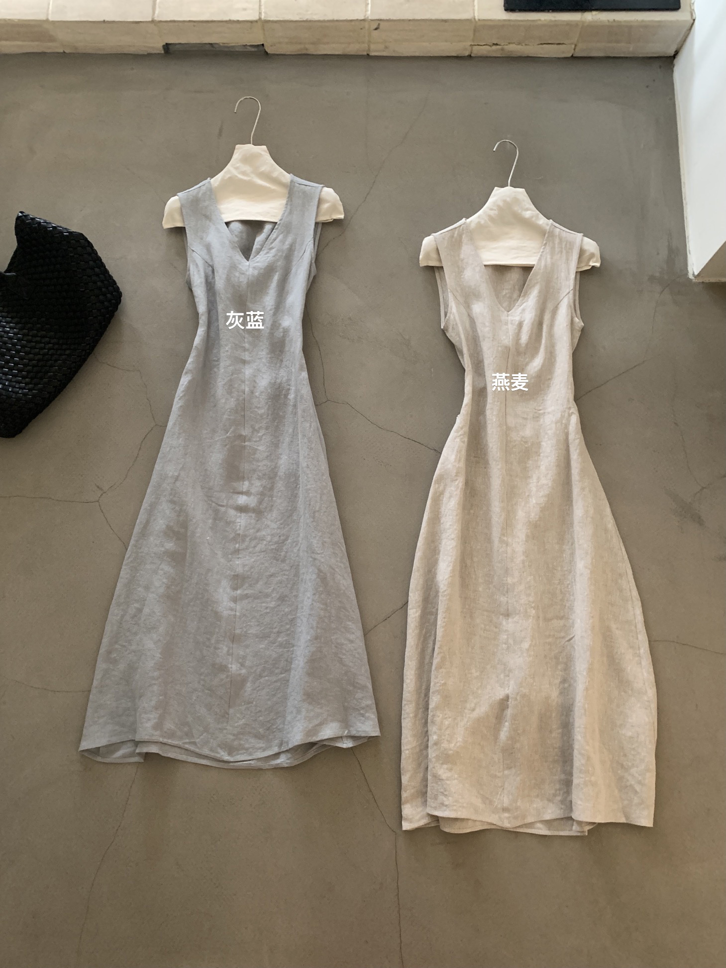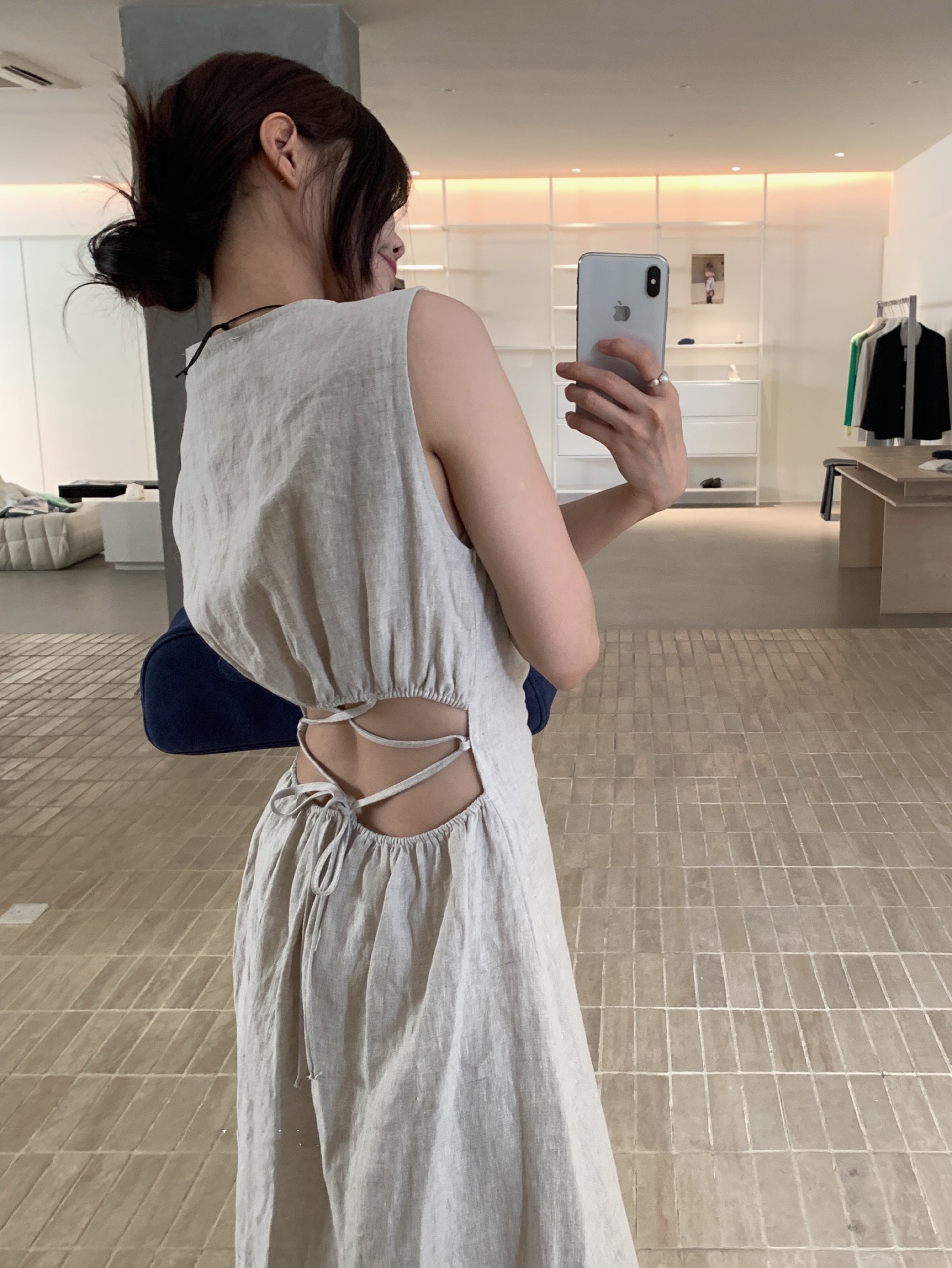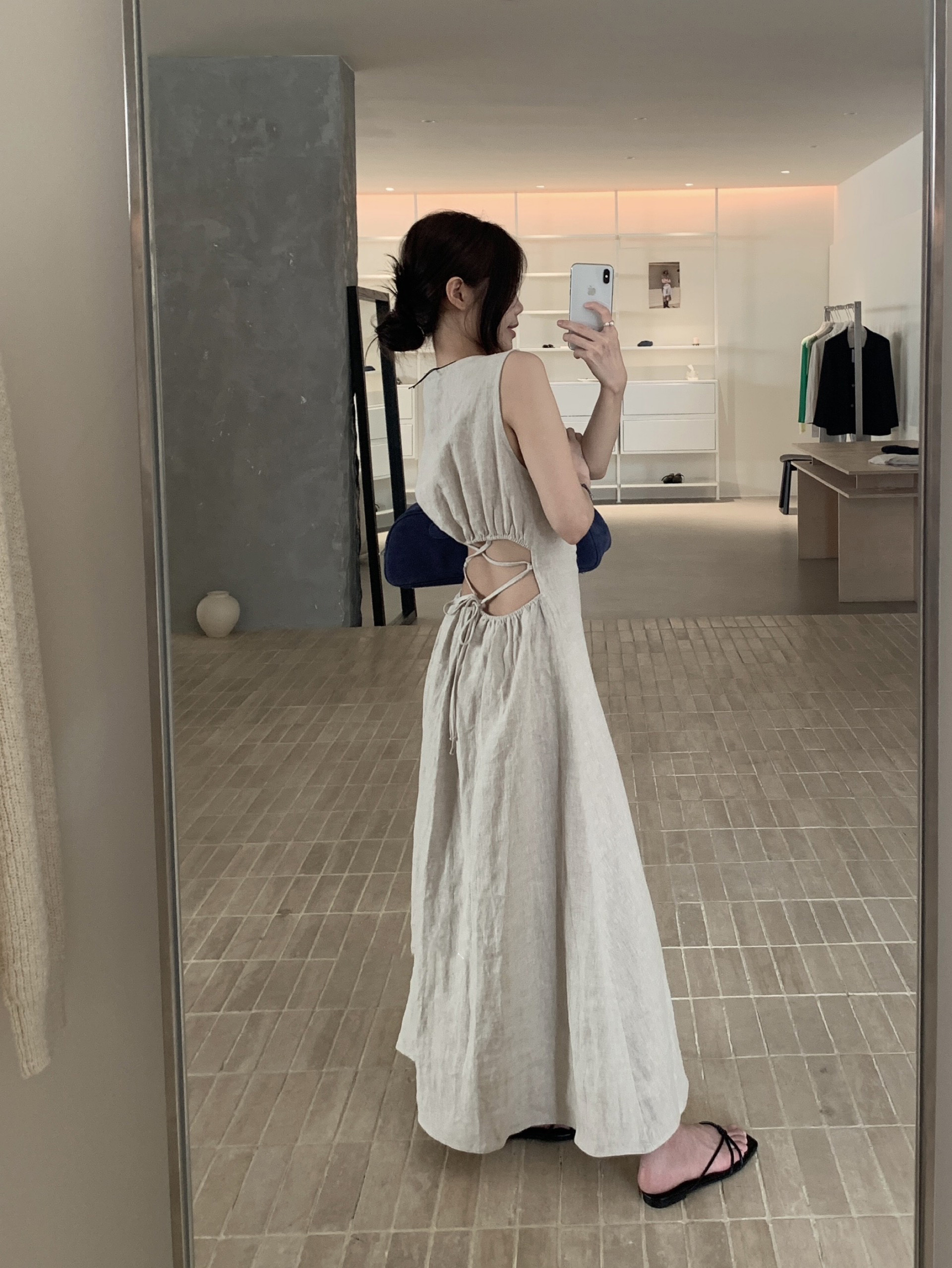 尺寸已更新 韩系气质高级感亚麻背心连衣裙后绑带镂空度假裙