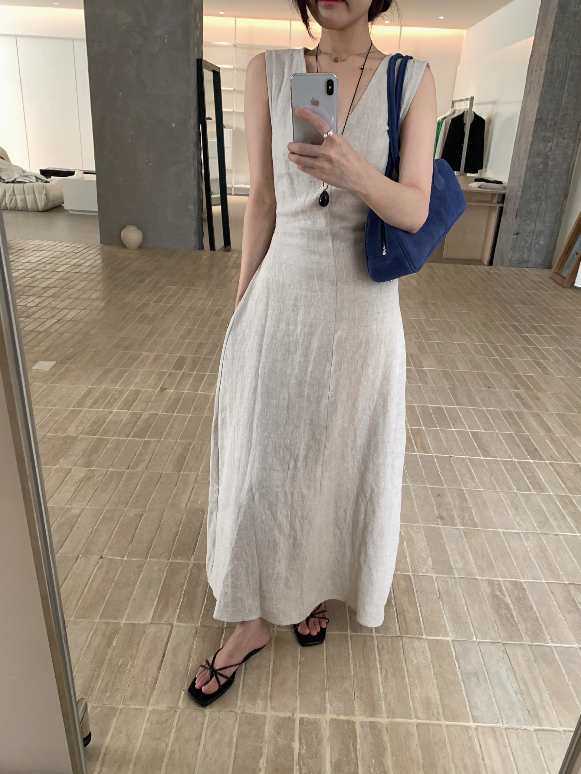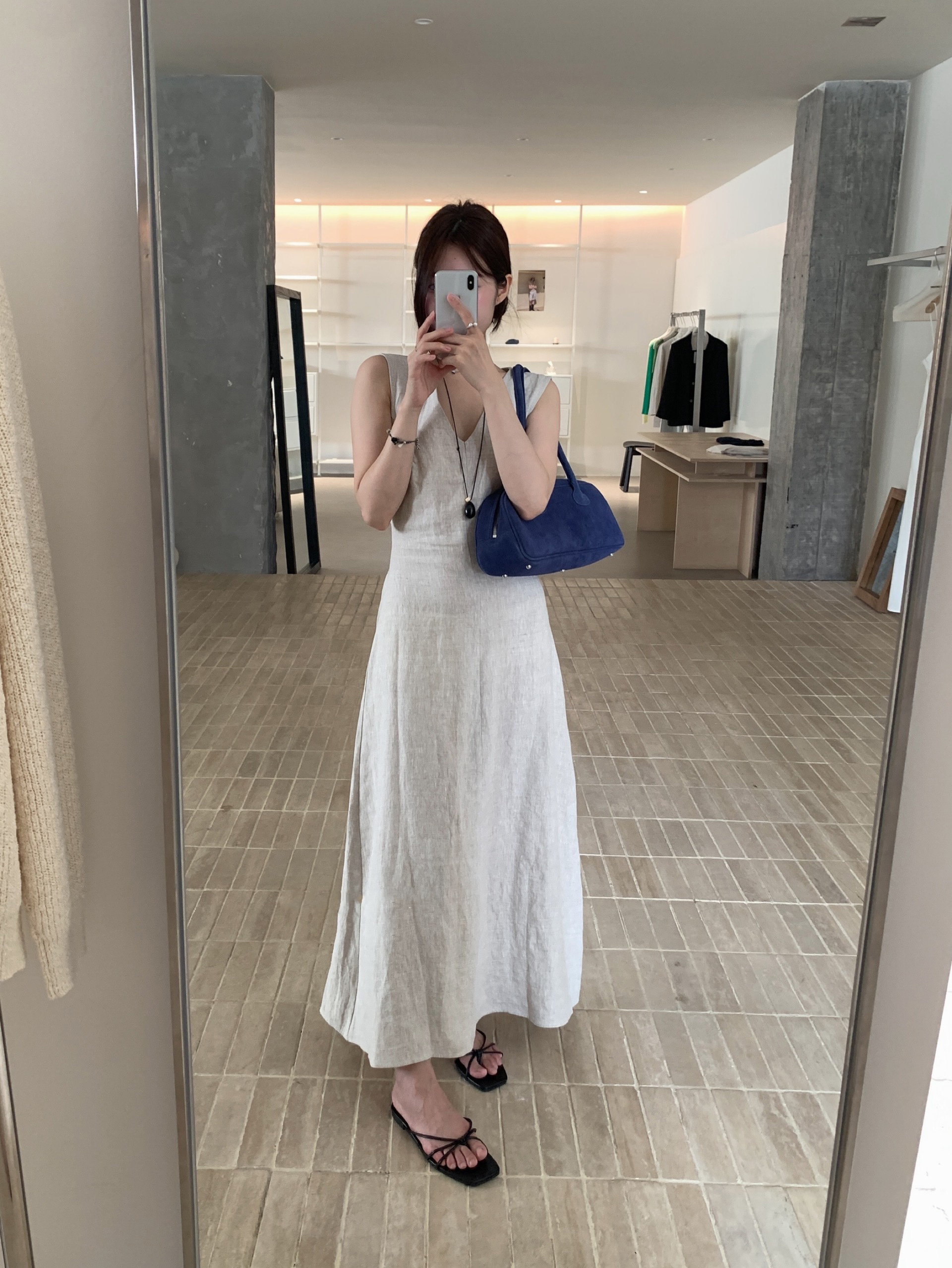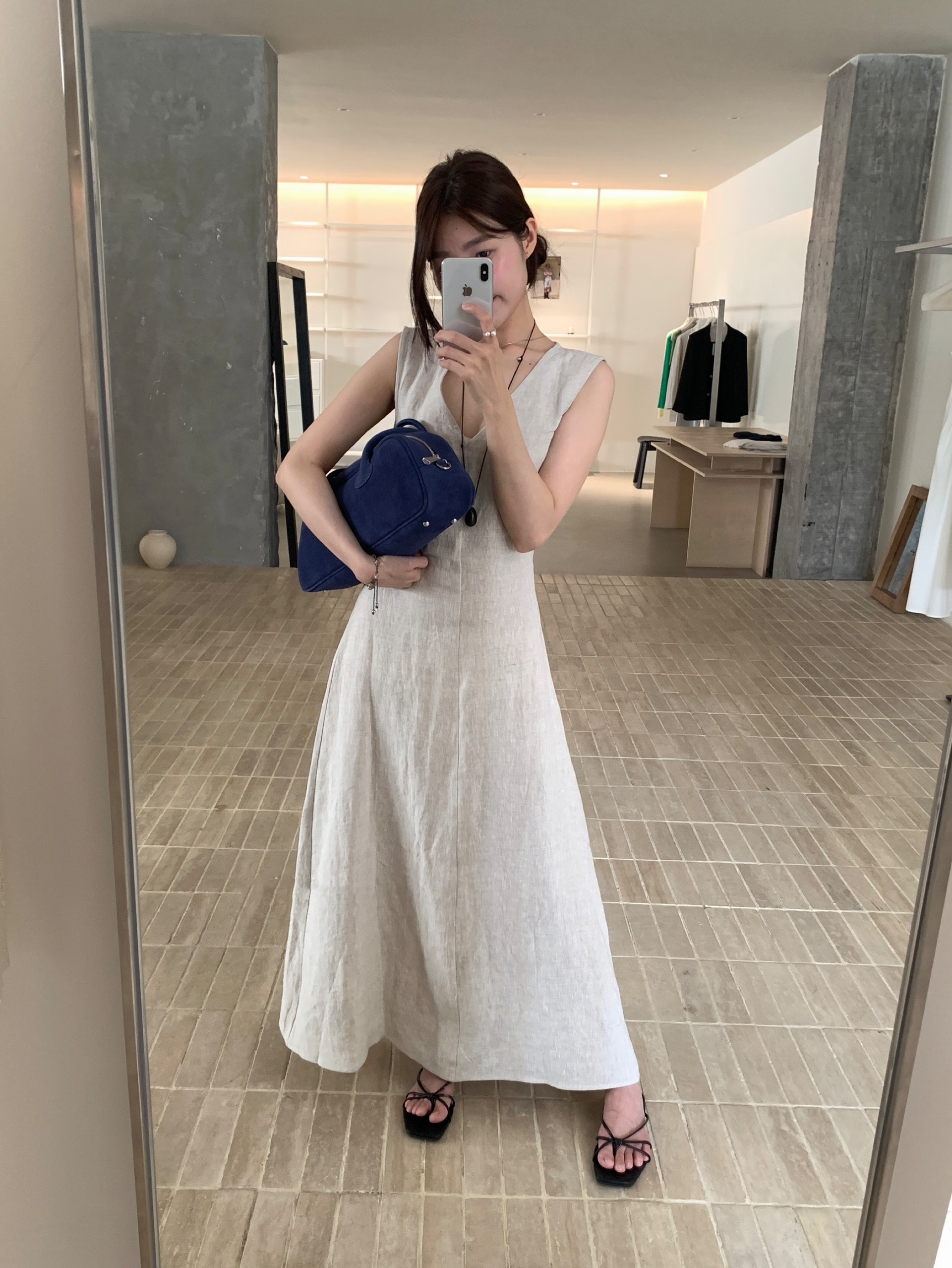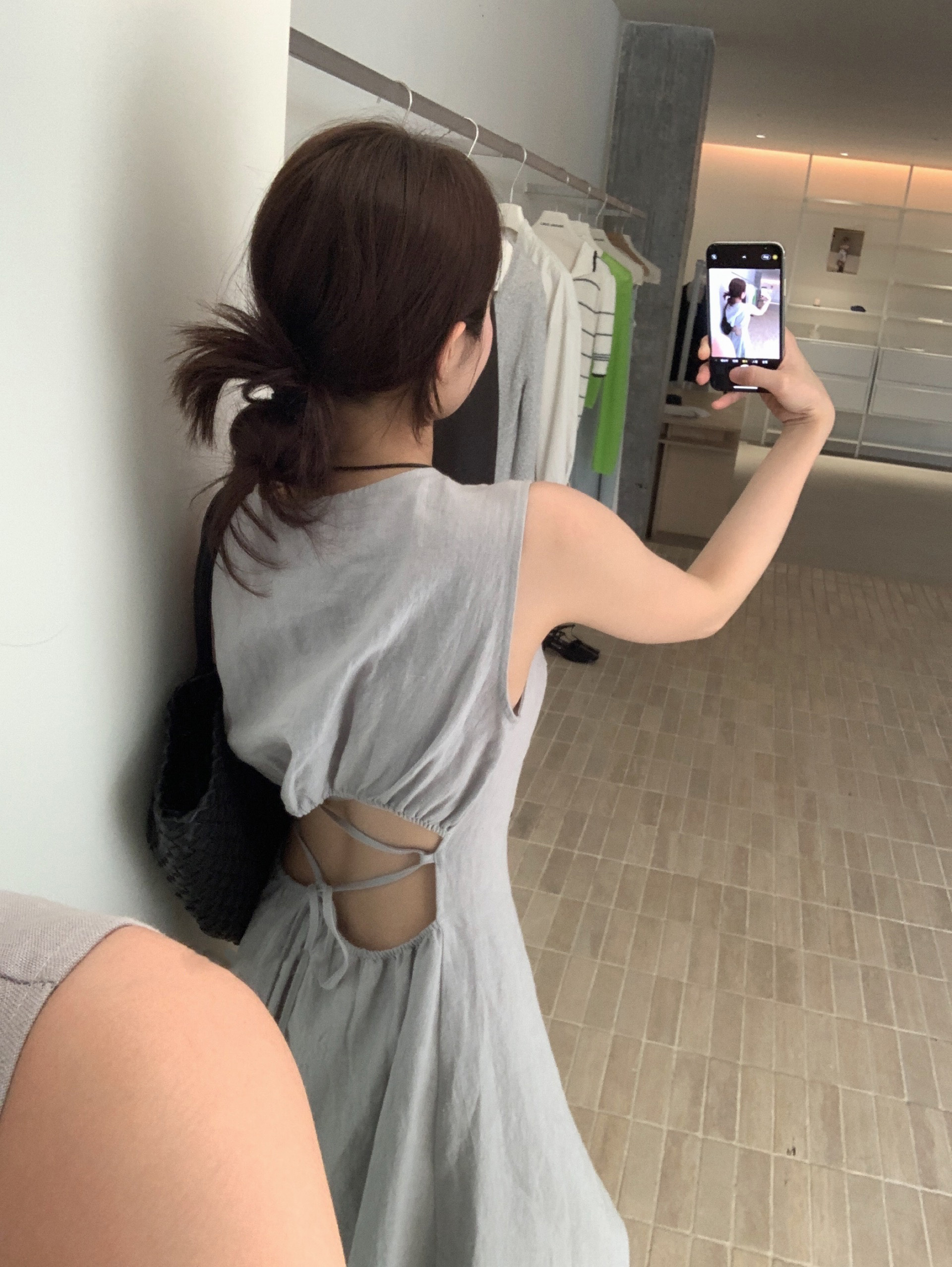 尺寸已更新 韩系气质高级感亚麻背心连衣裙后绑带镂空度假裙