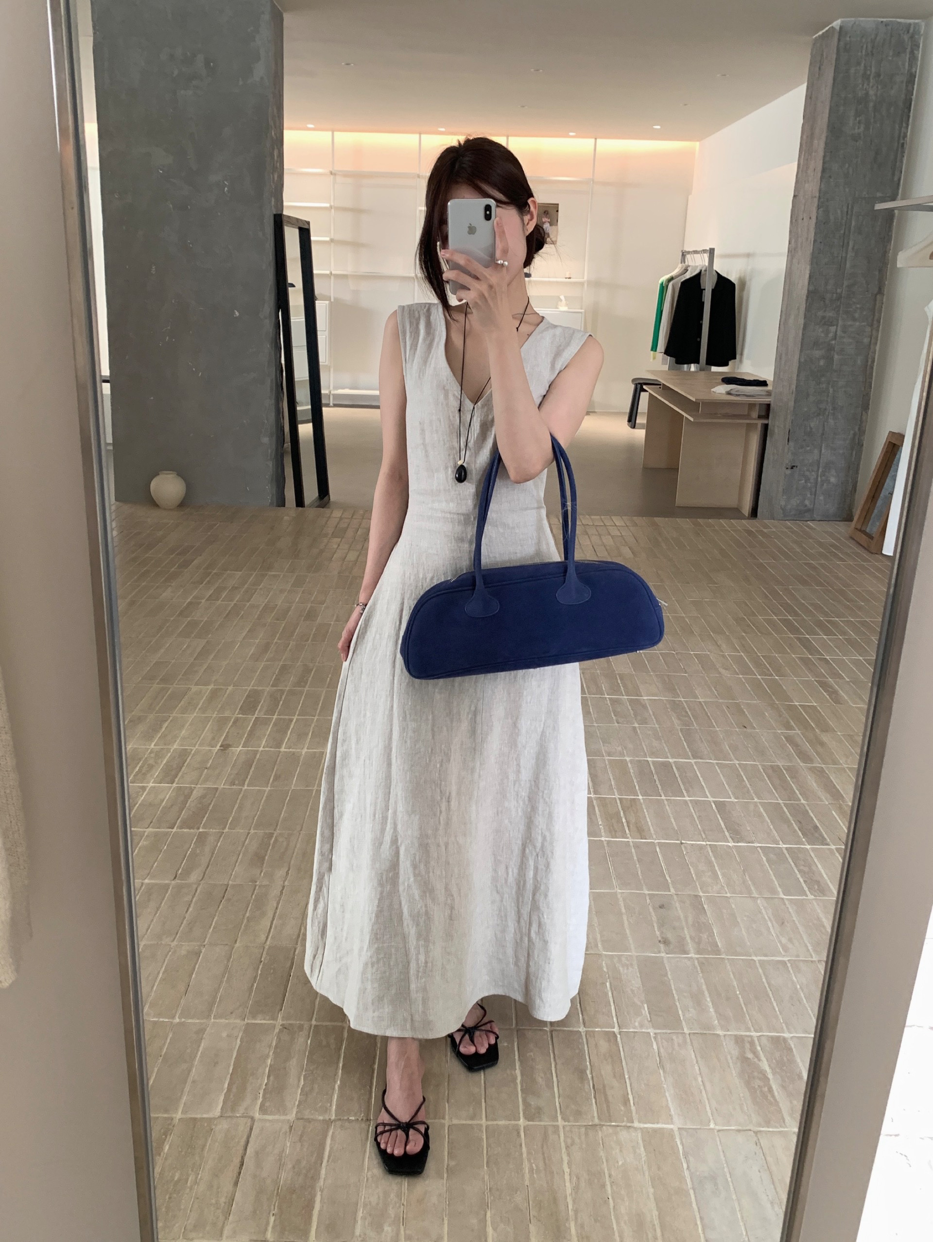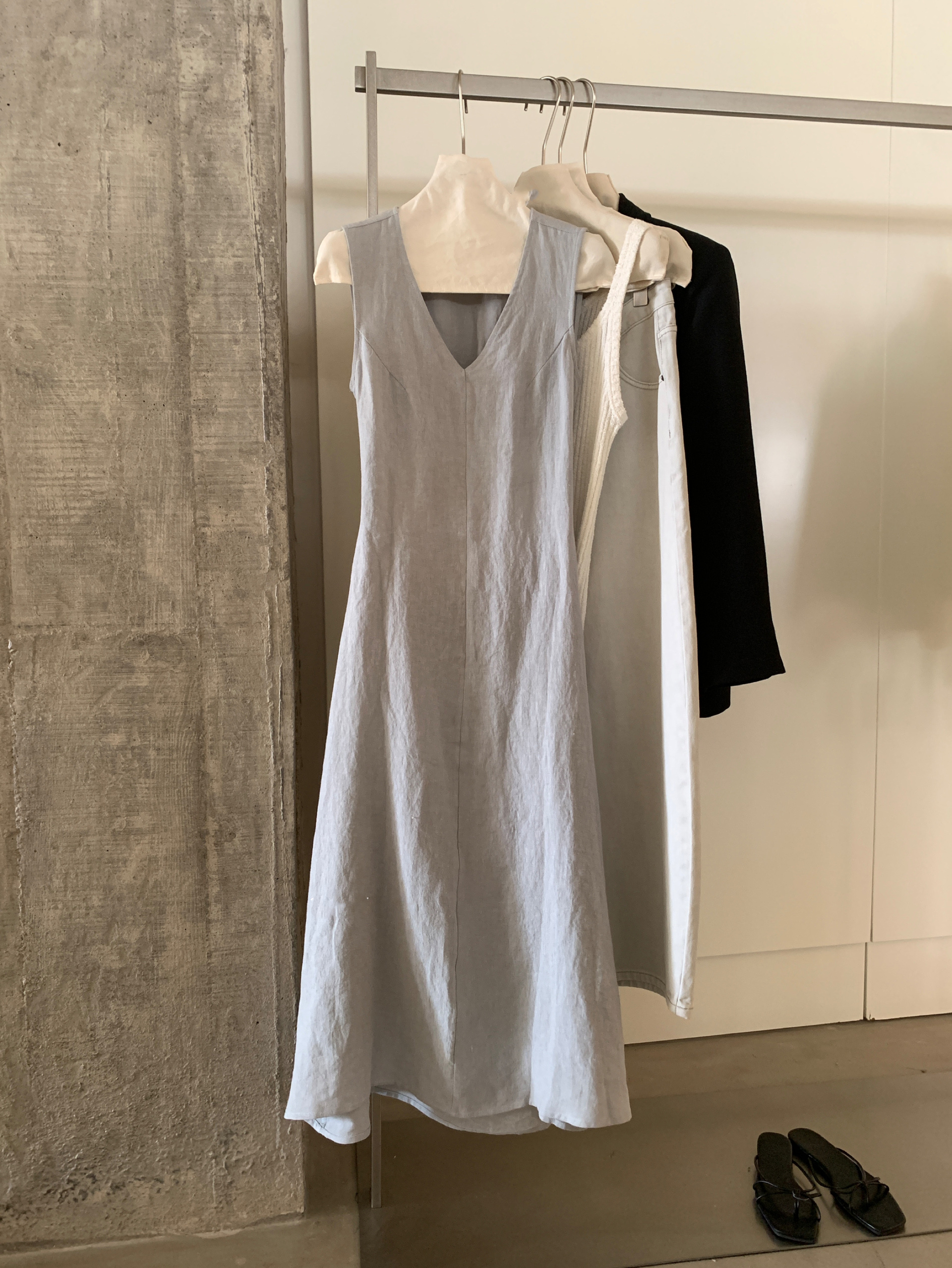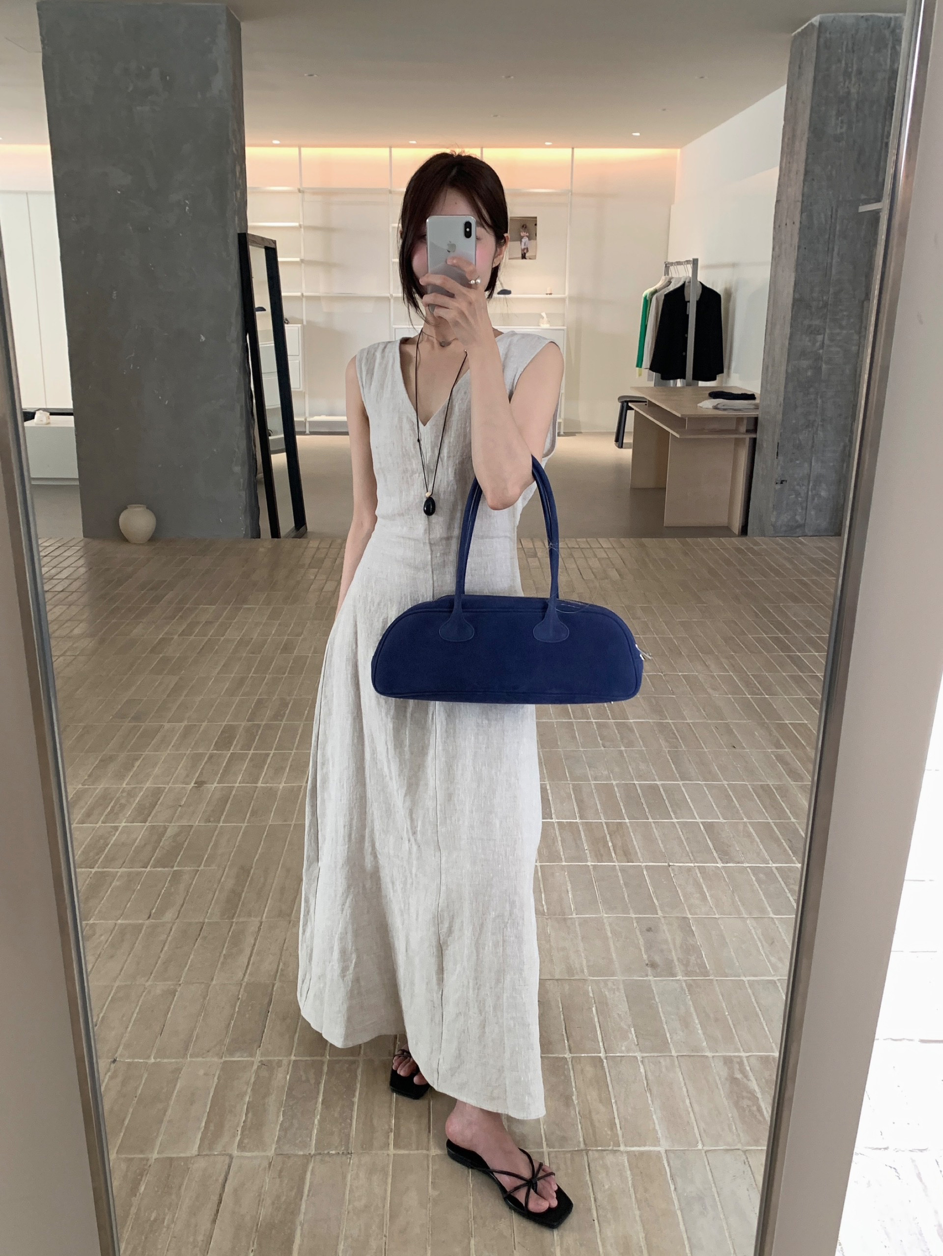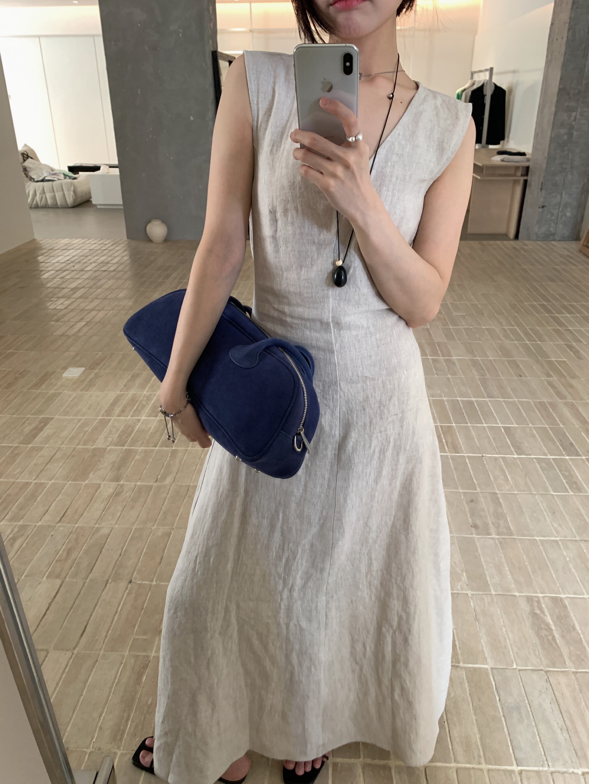 尺寸已更新 韩系气质高级感亚麻背心连衣裙后绑带镂空度假裙