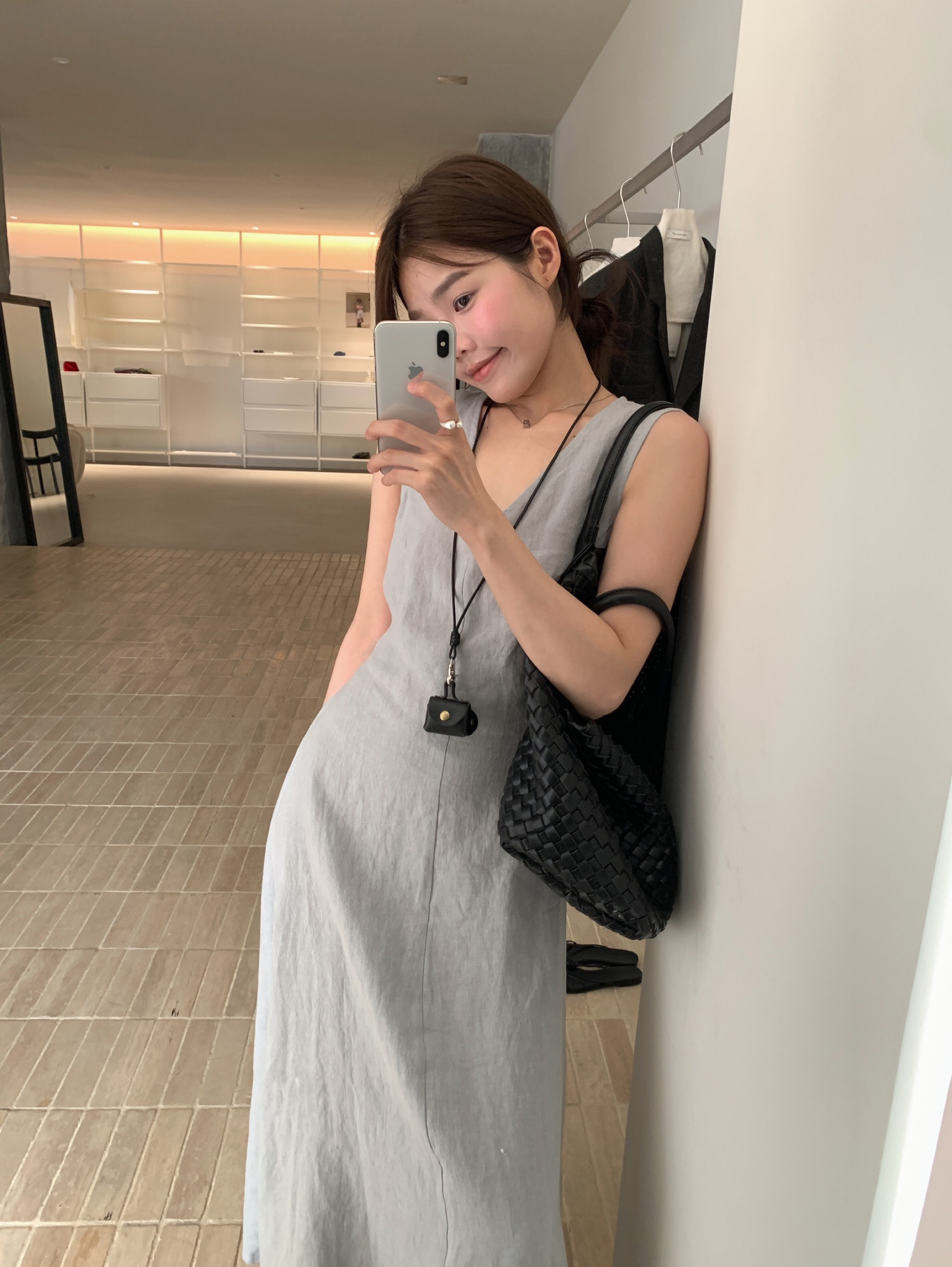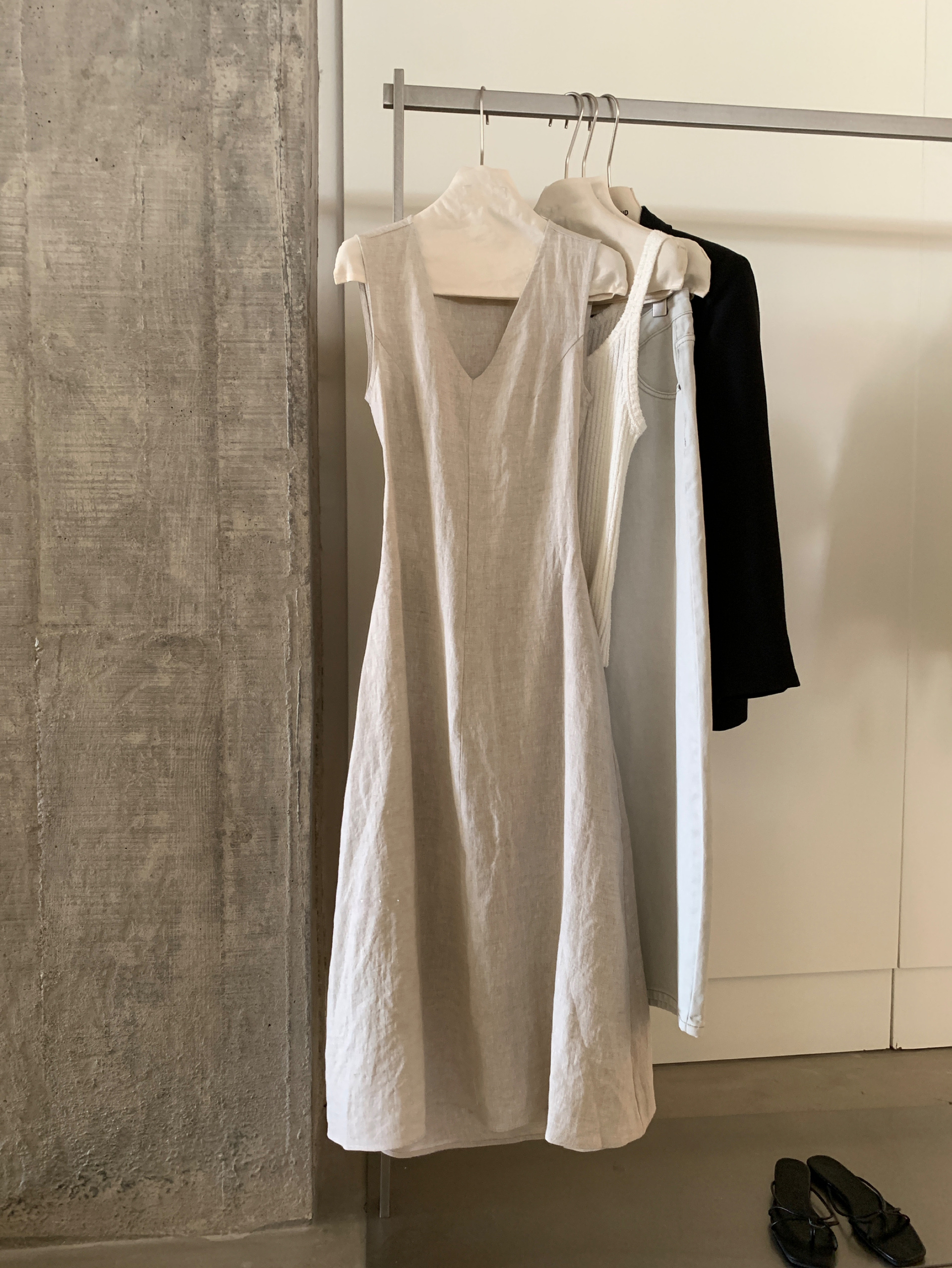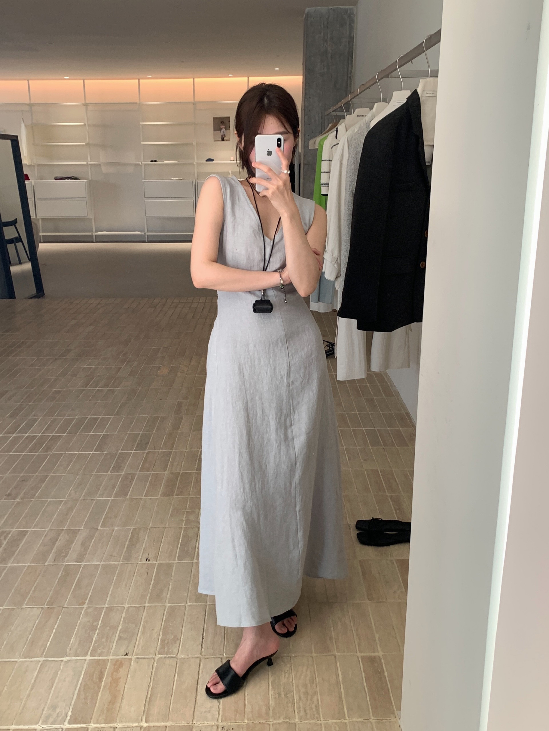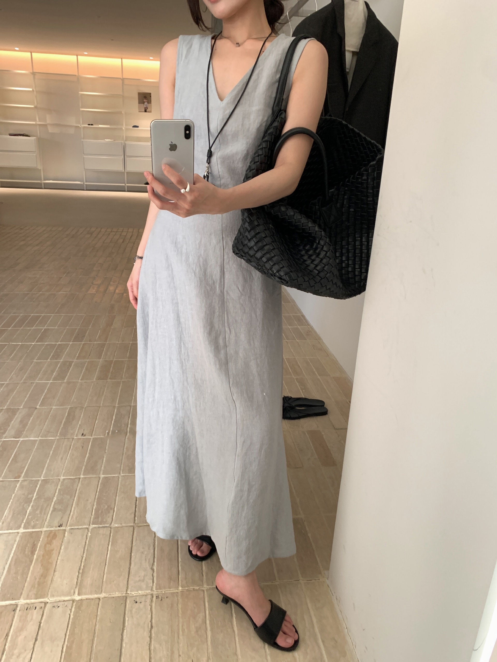 尺寸已更新 韩系气质高级感亚麻背心连衣裙后绑带镂空度假裙