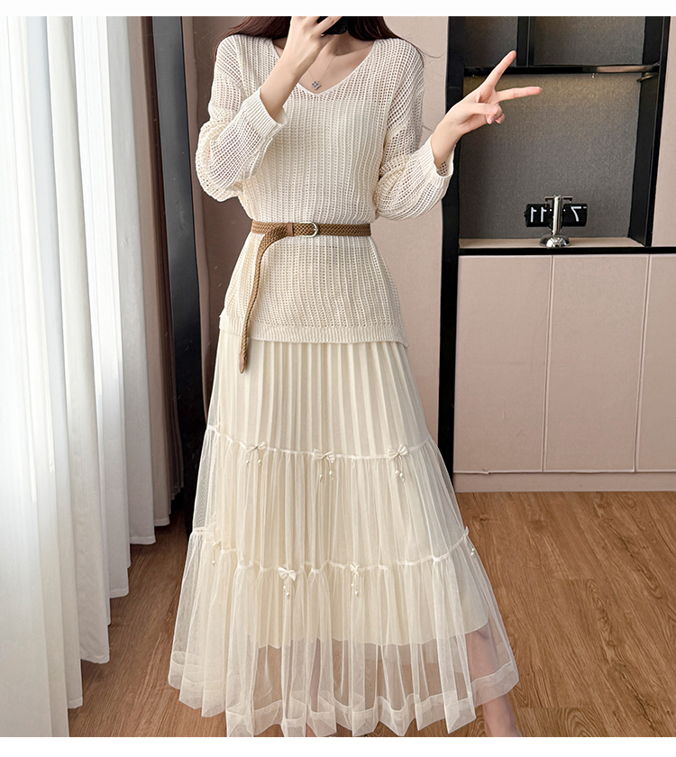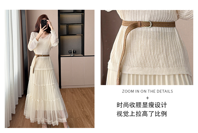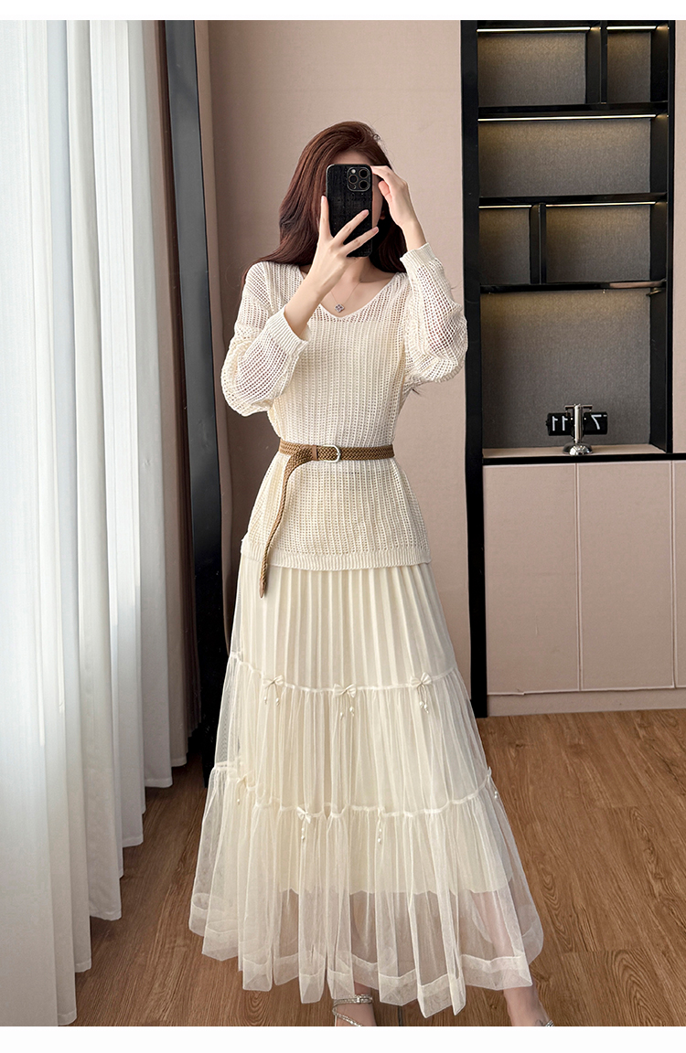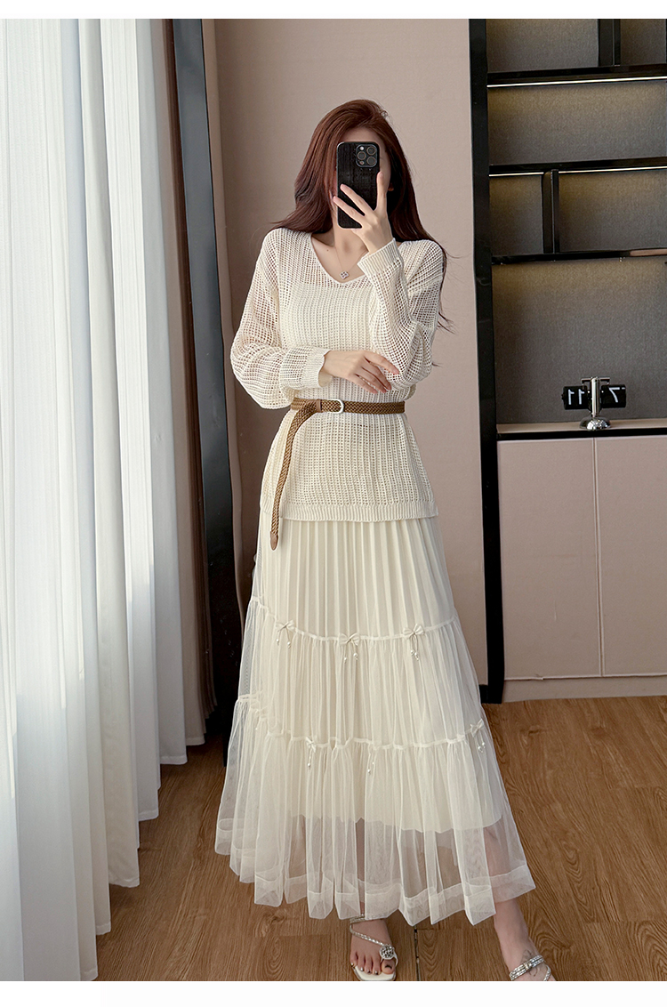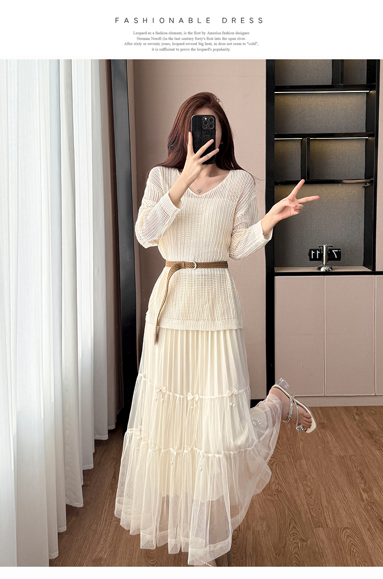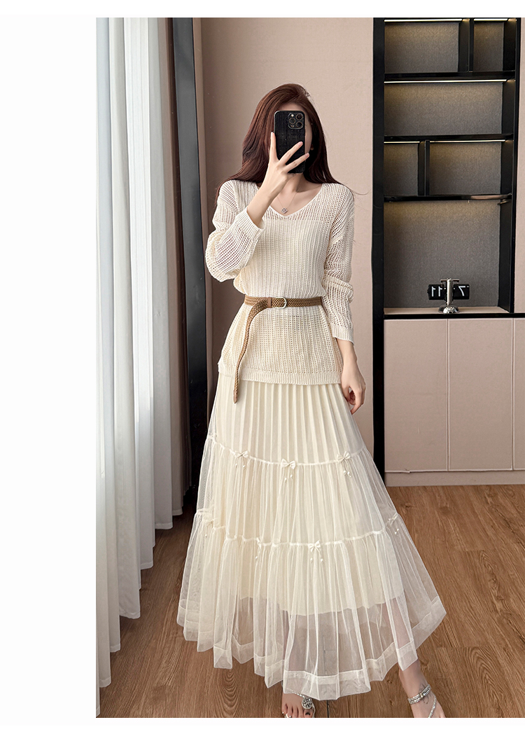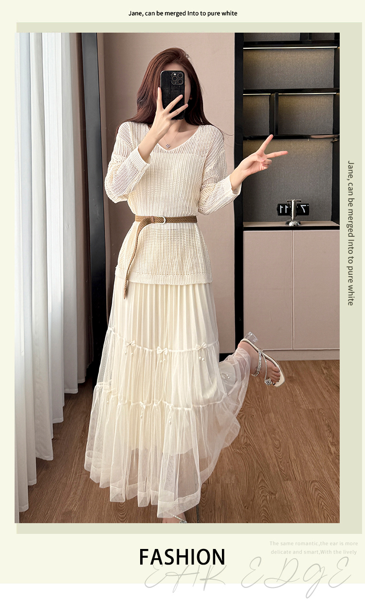 春夏季慵懒风宽松缕空防晒罩衫性感吊带背心高腰花边半身裙三件套