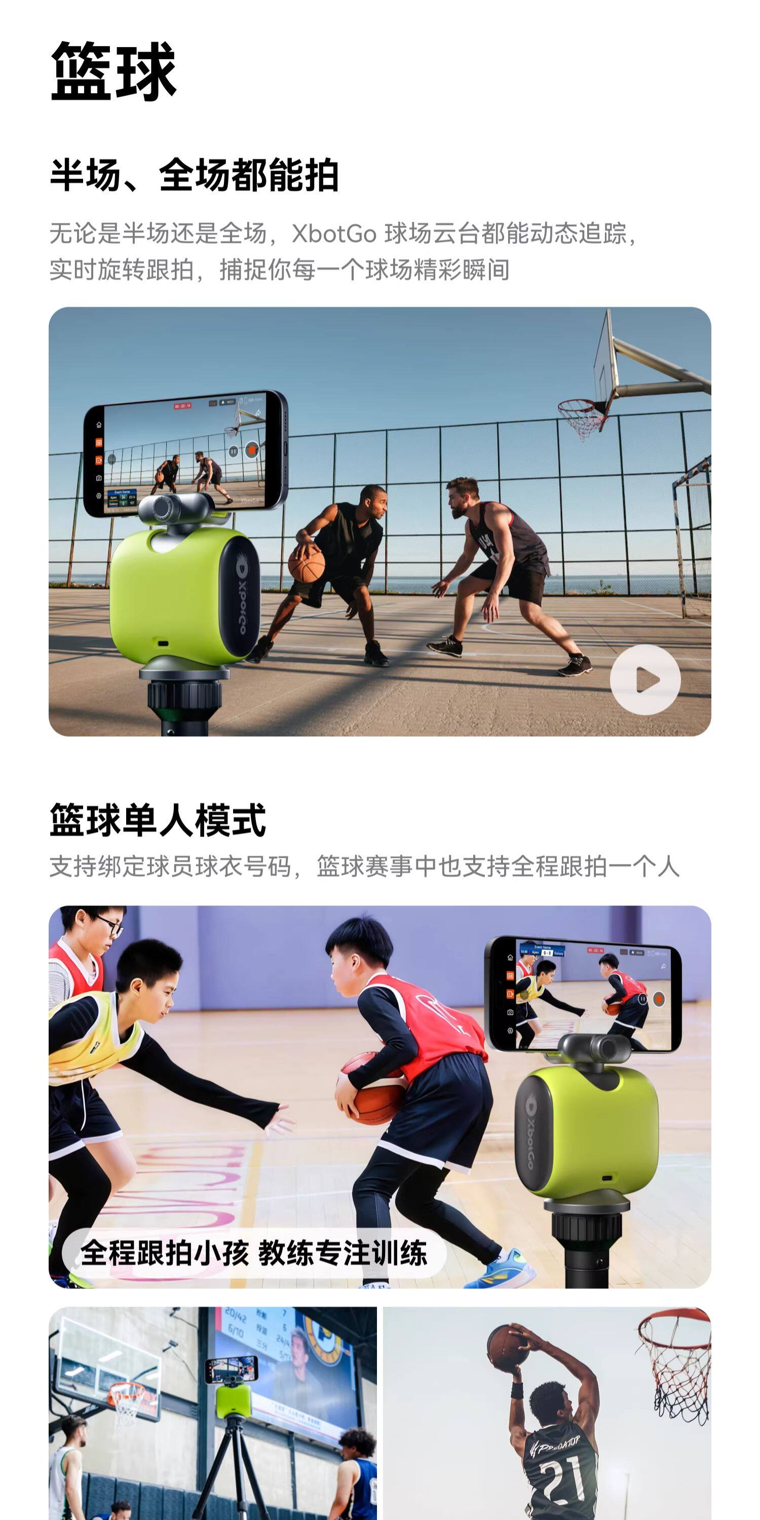 XbotGo变色龙手机拍摄球场云台 AI智能全自动跟拍 篮球足球团队体育比赛事高清veo直播运动追踪录像复盘设备