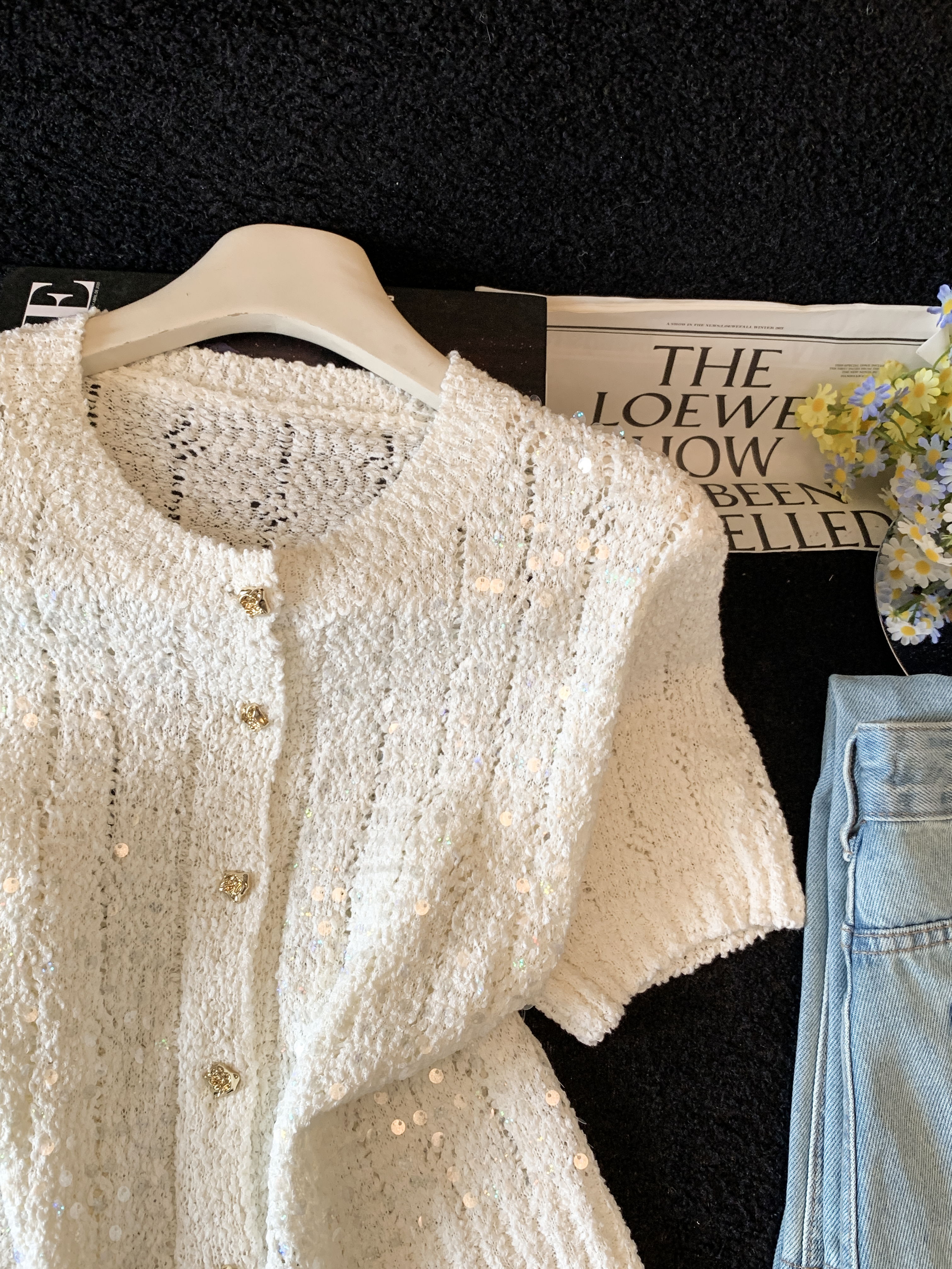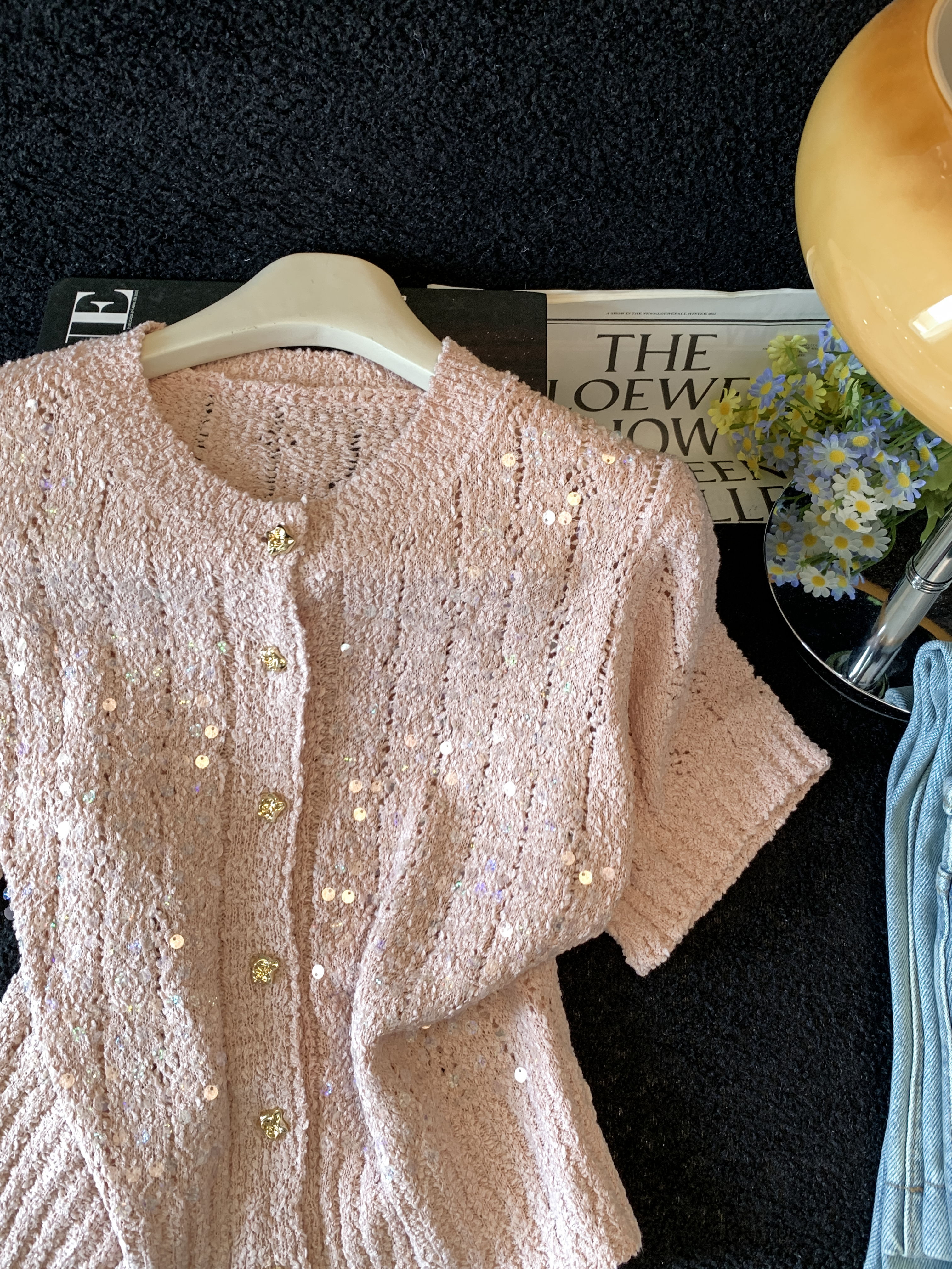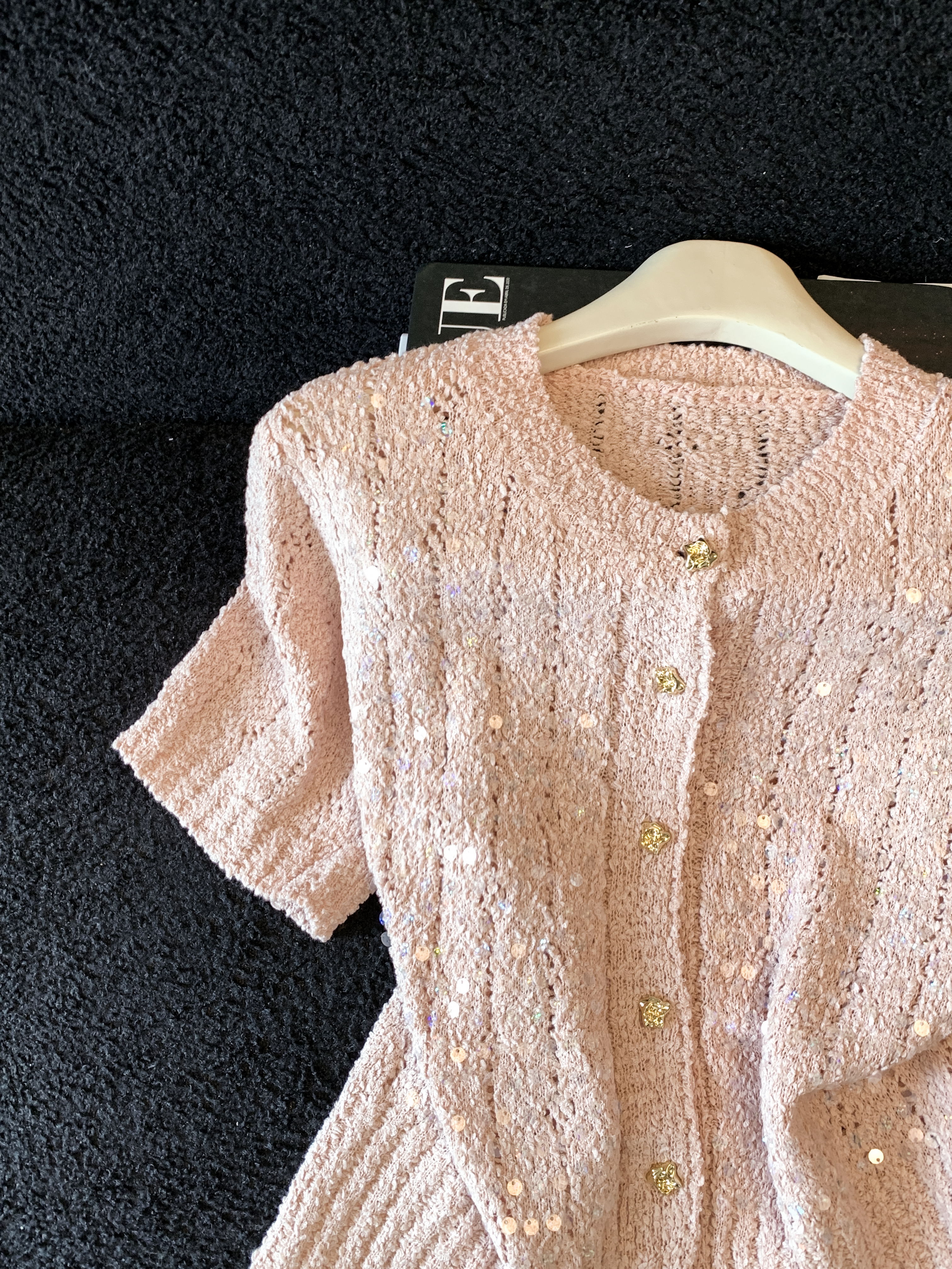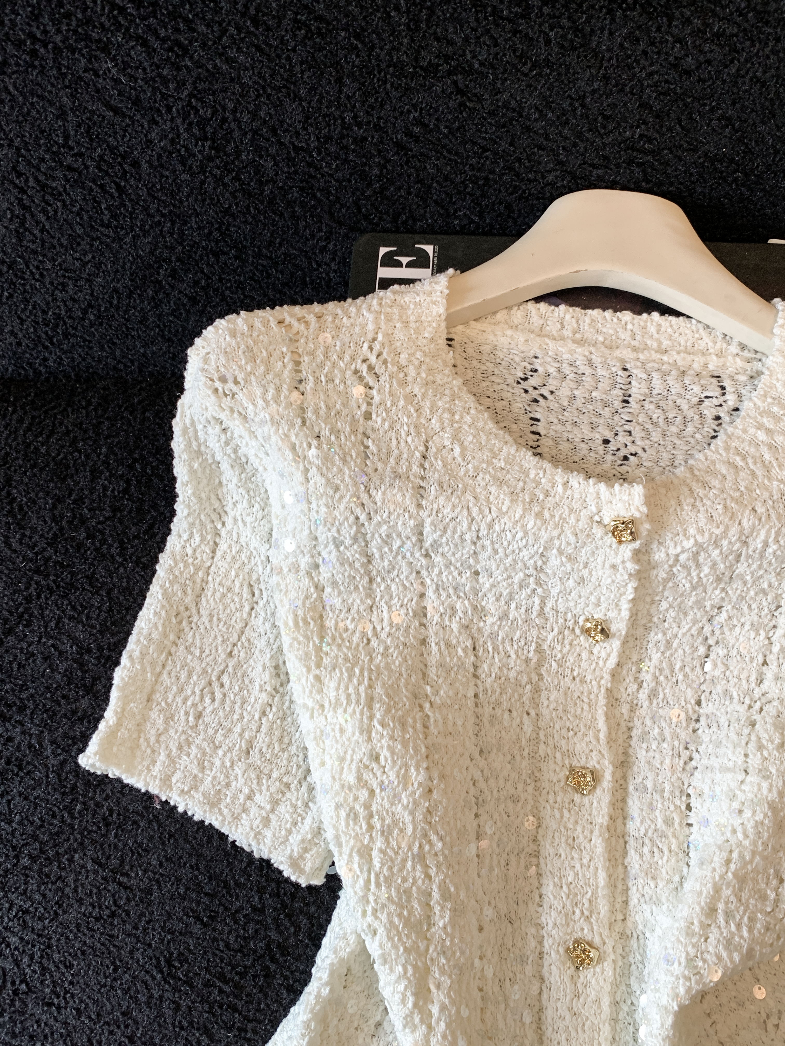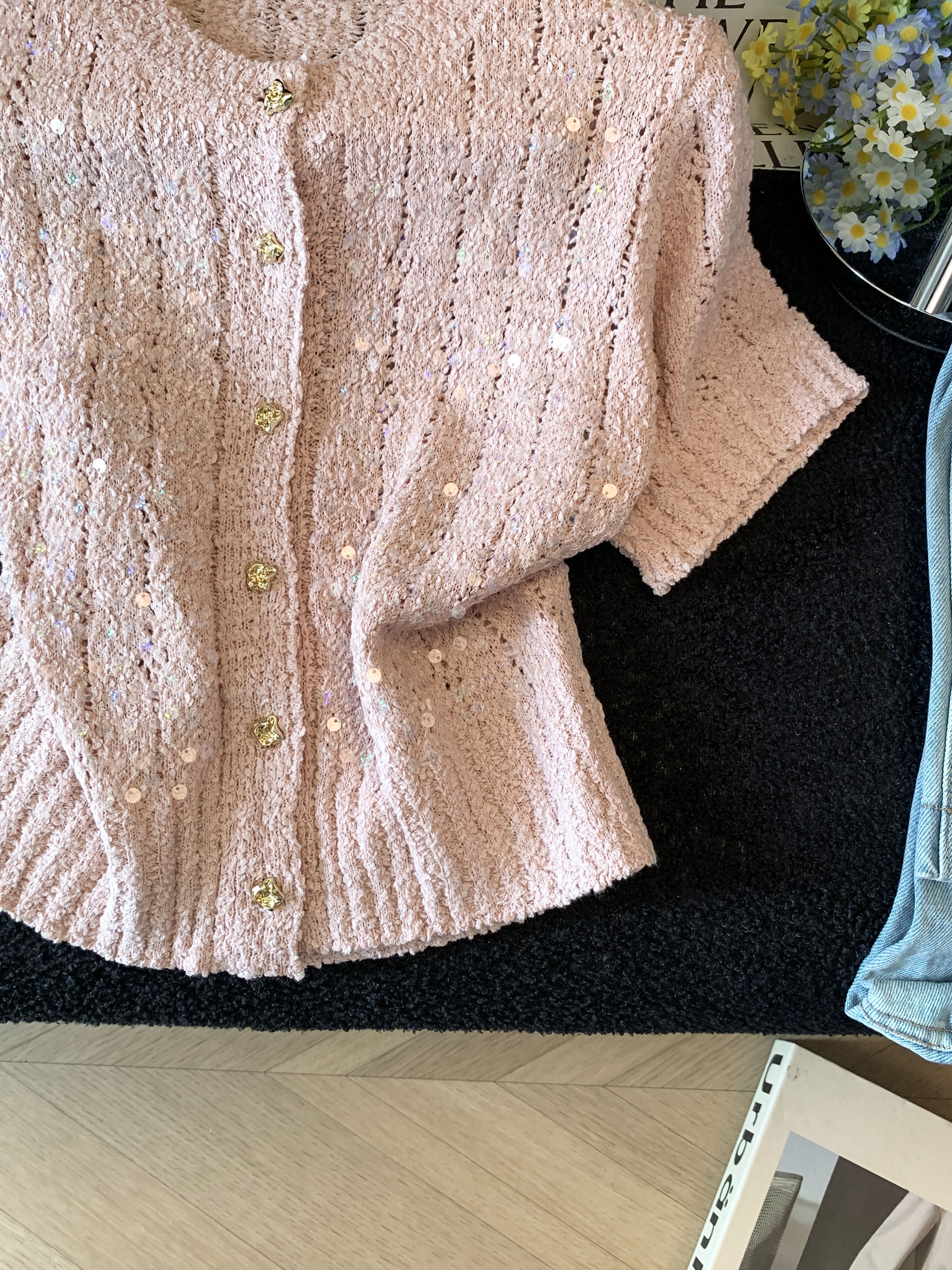 实拍~法式高级感闪耀珠片上衣女2026薄款轻奢镂空冰丝针织开衫