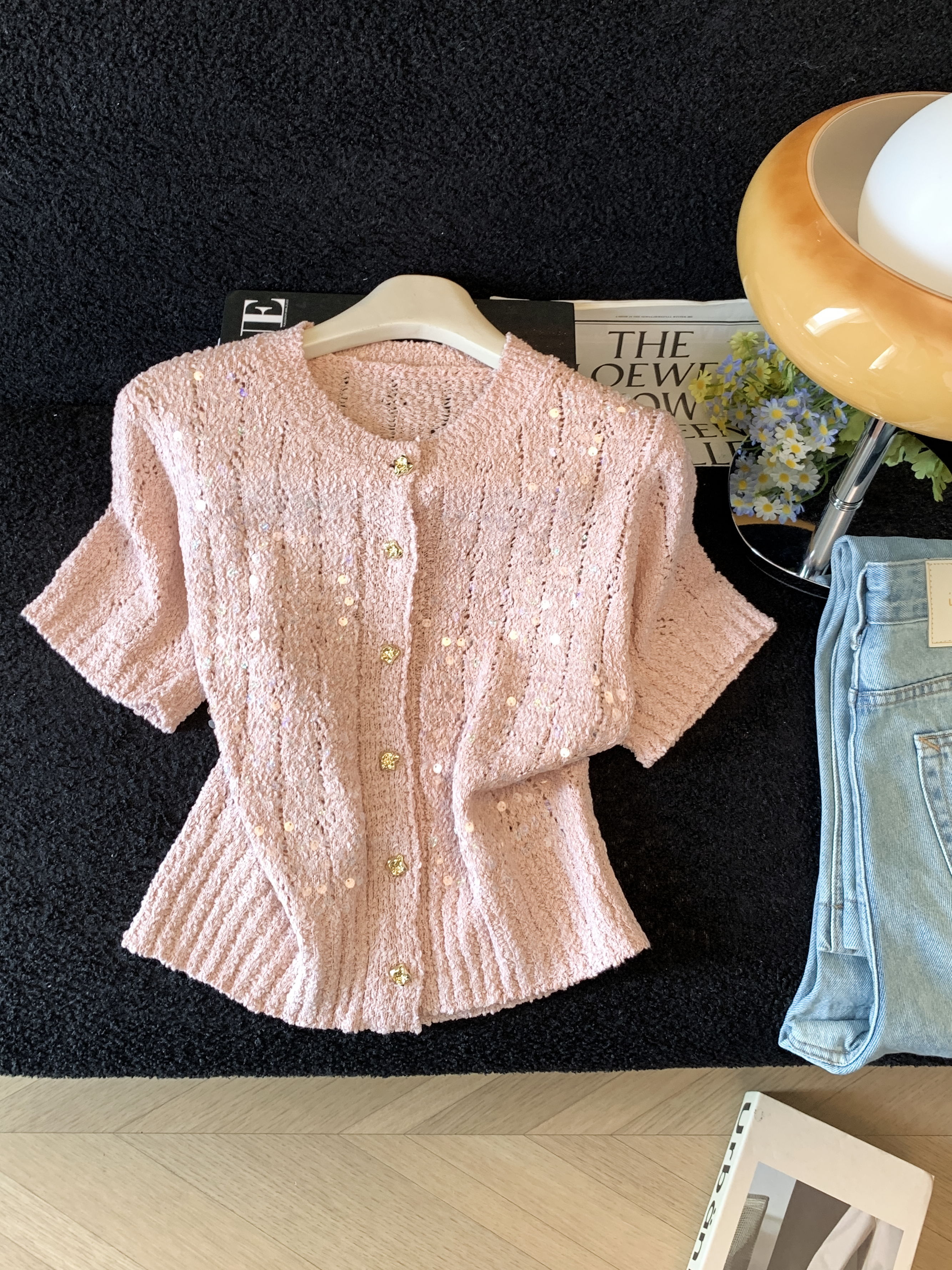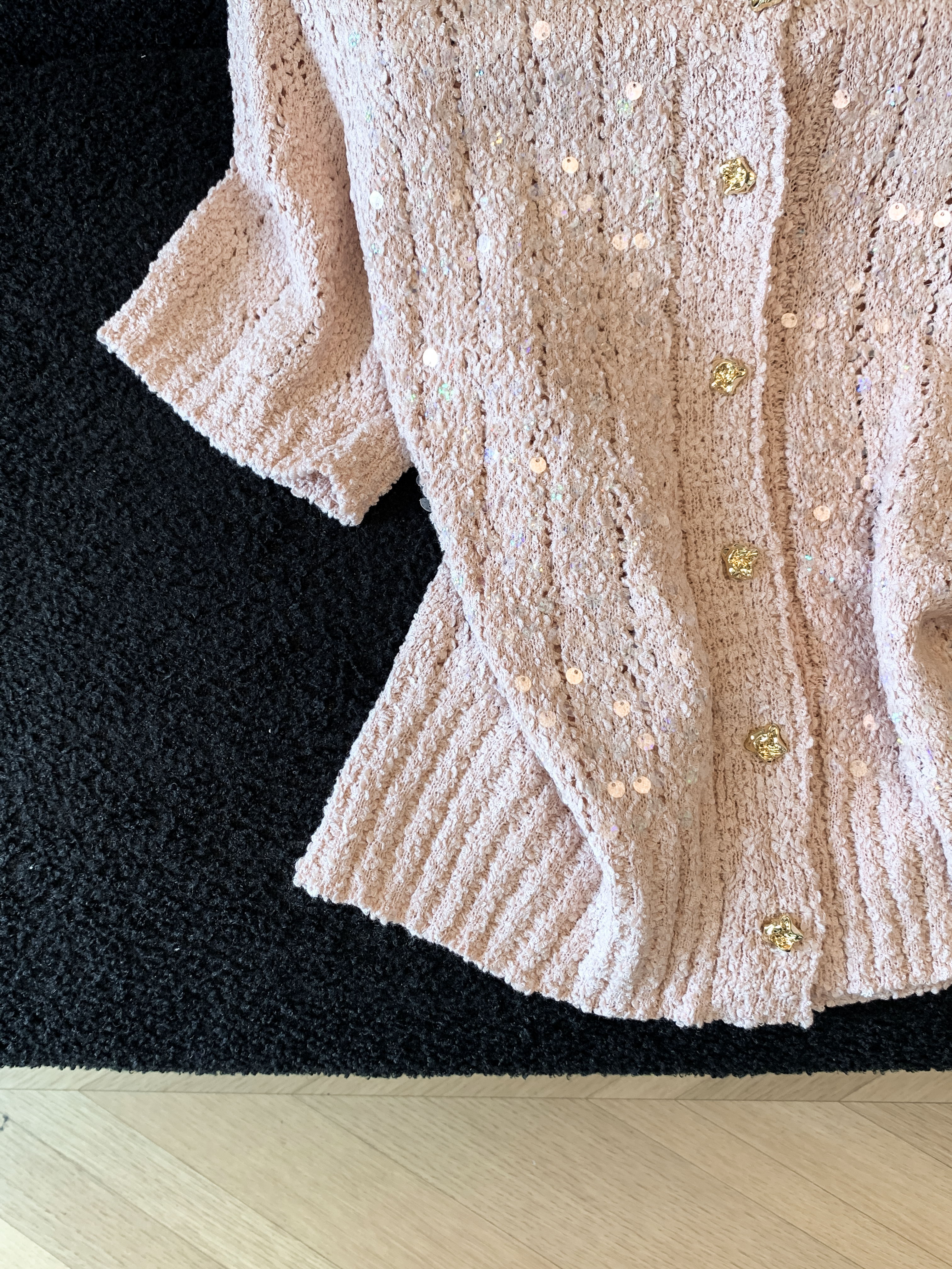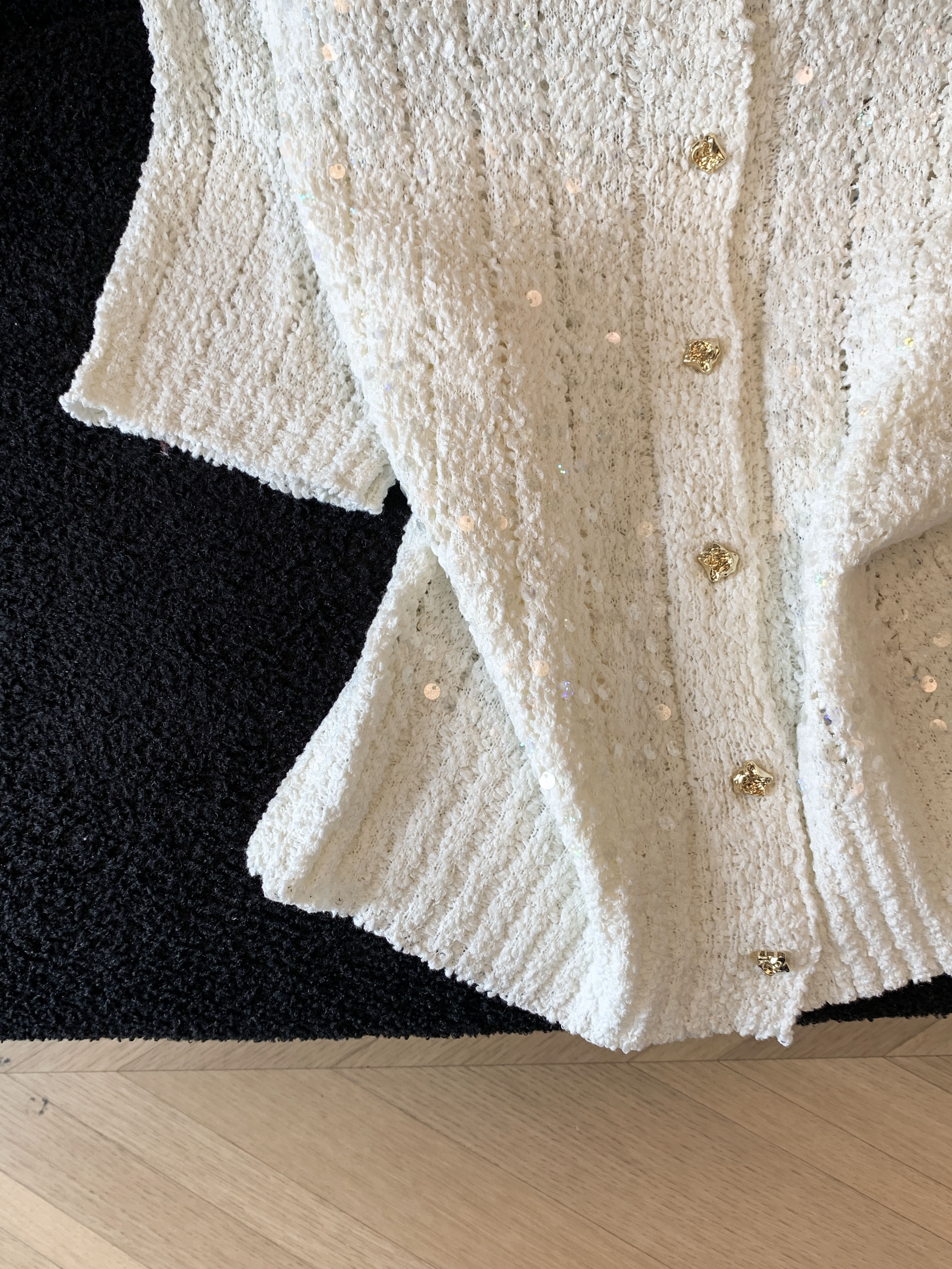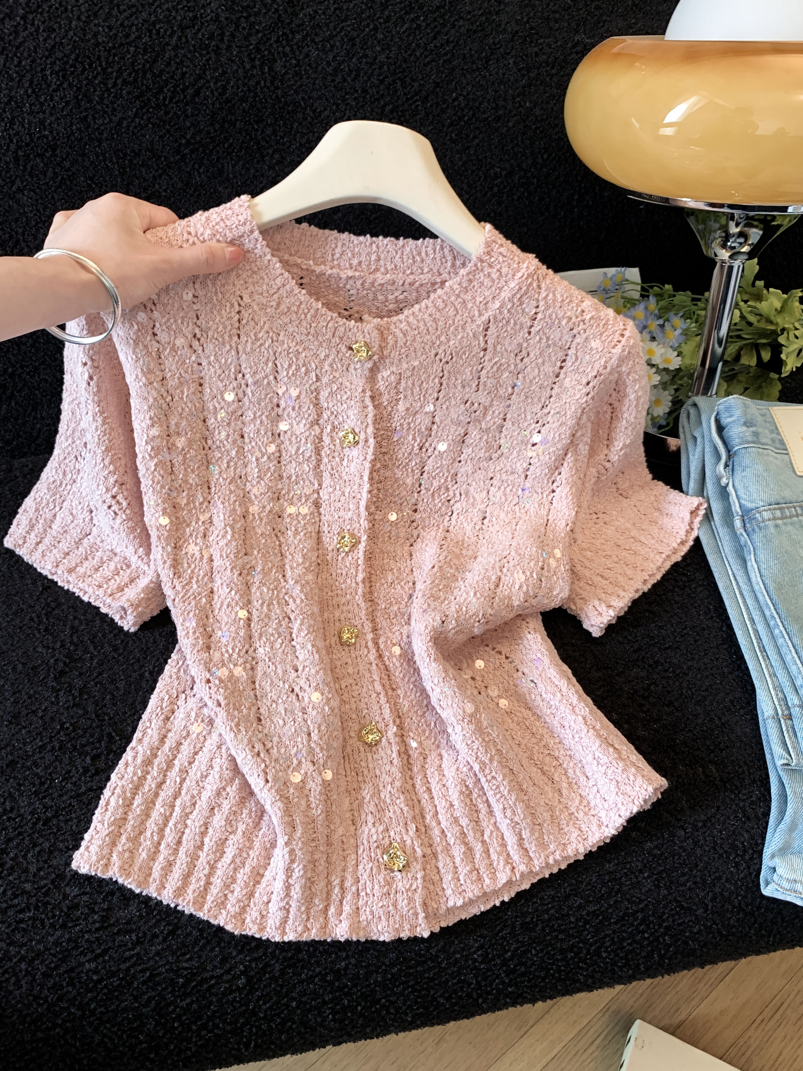 实拍~法式高级感闪耀珠片上衣女2026薄款轻奢镂空冰丝针织开衫