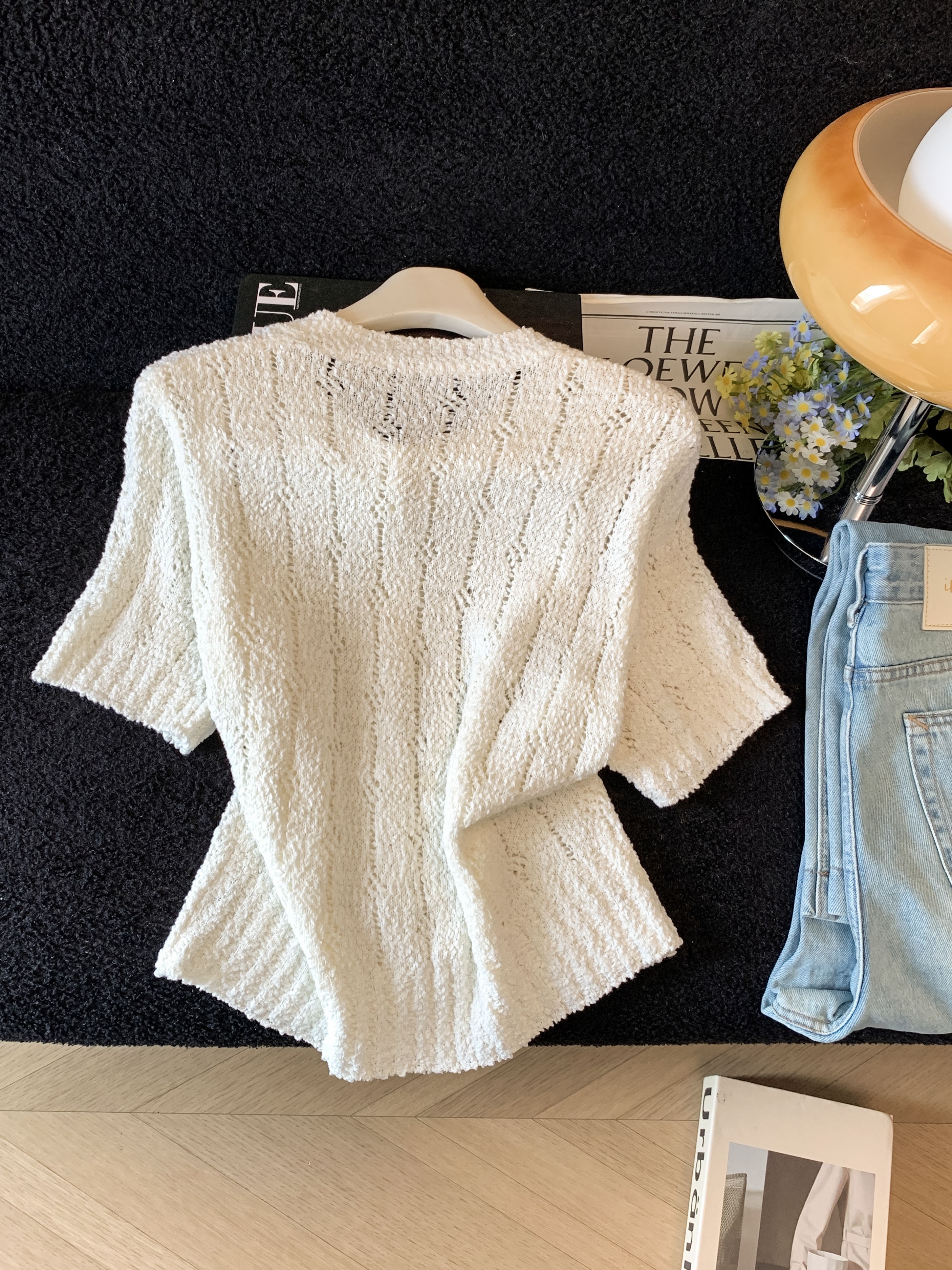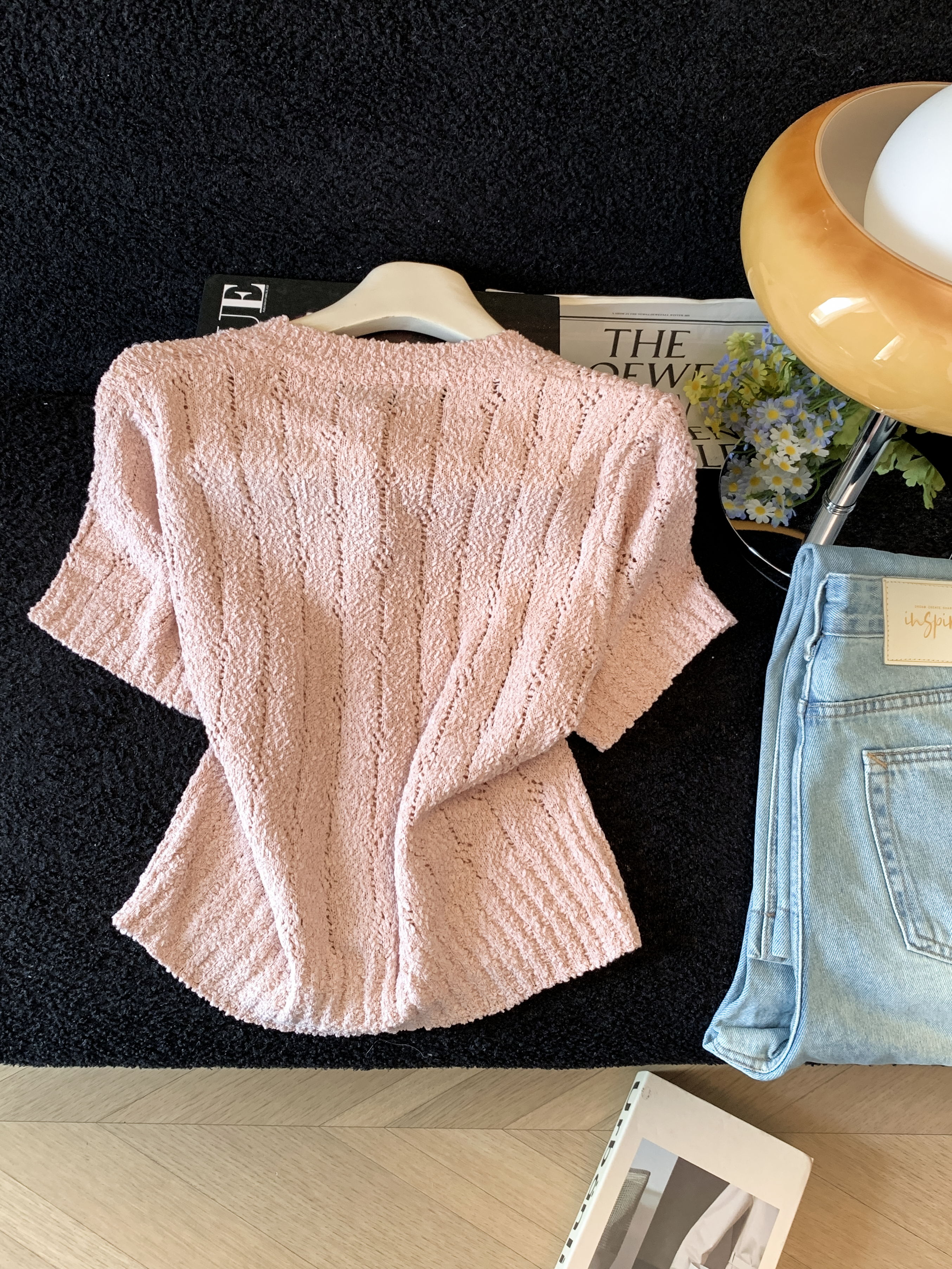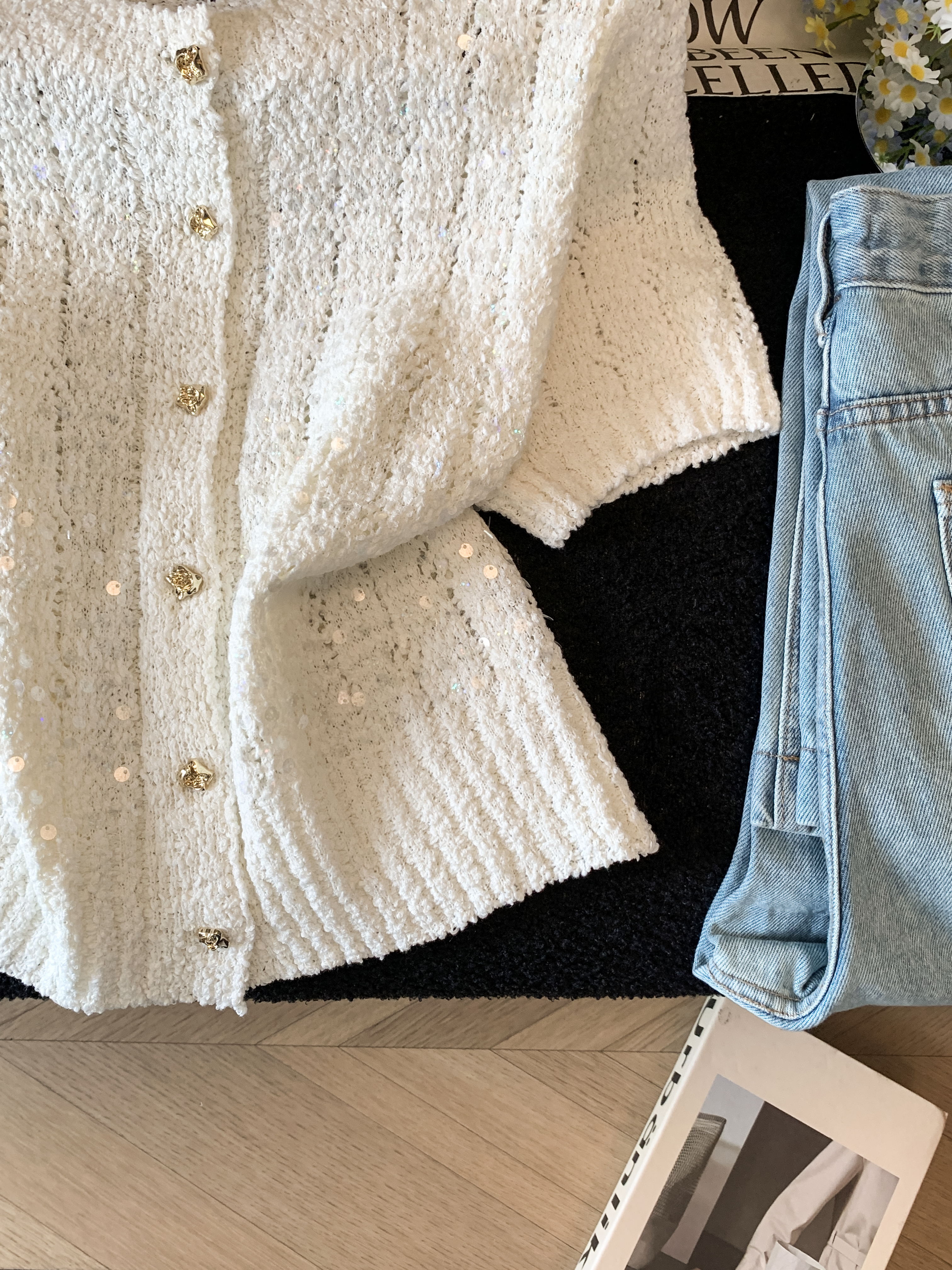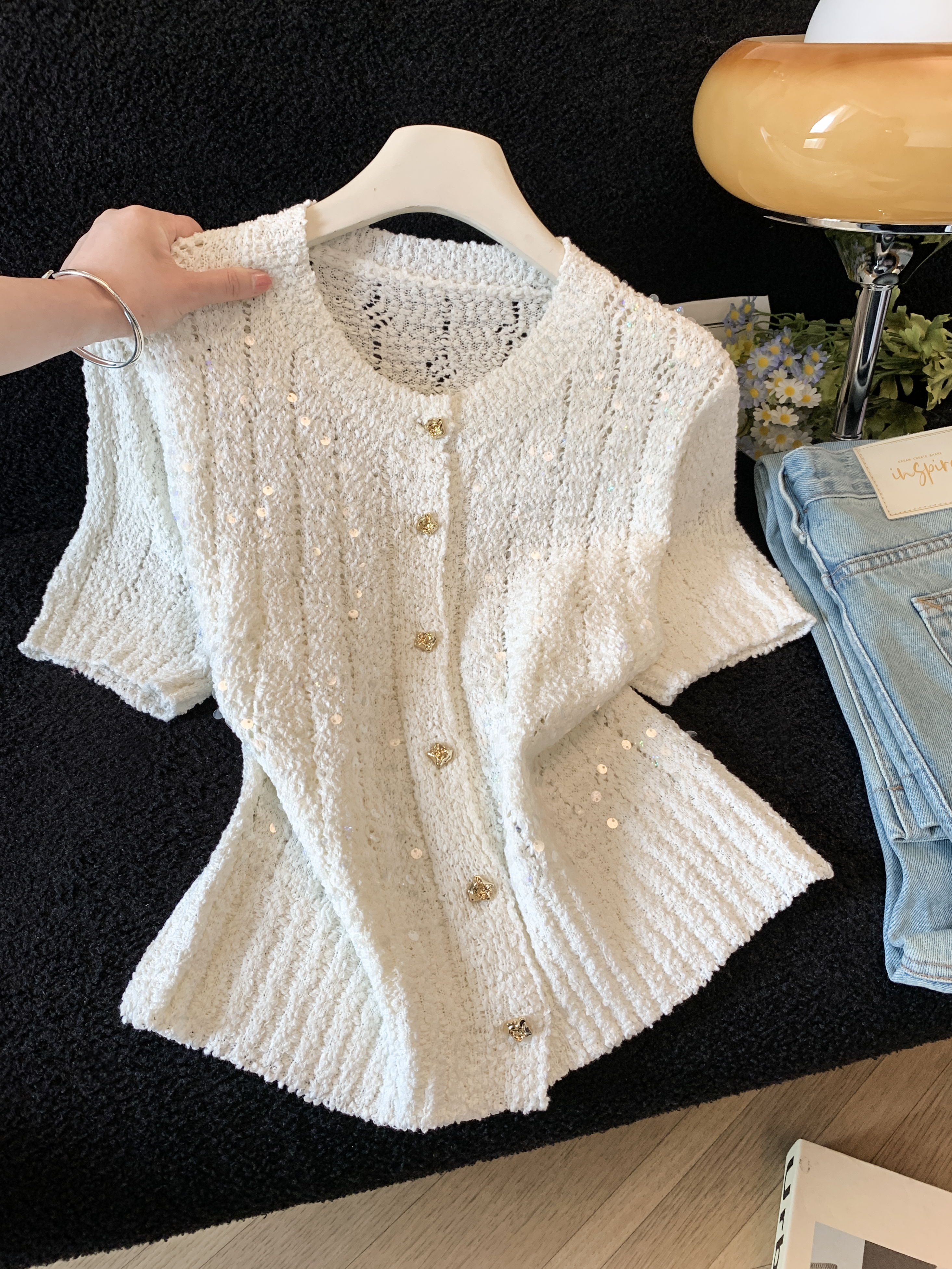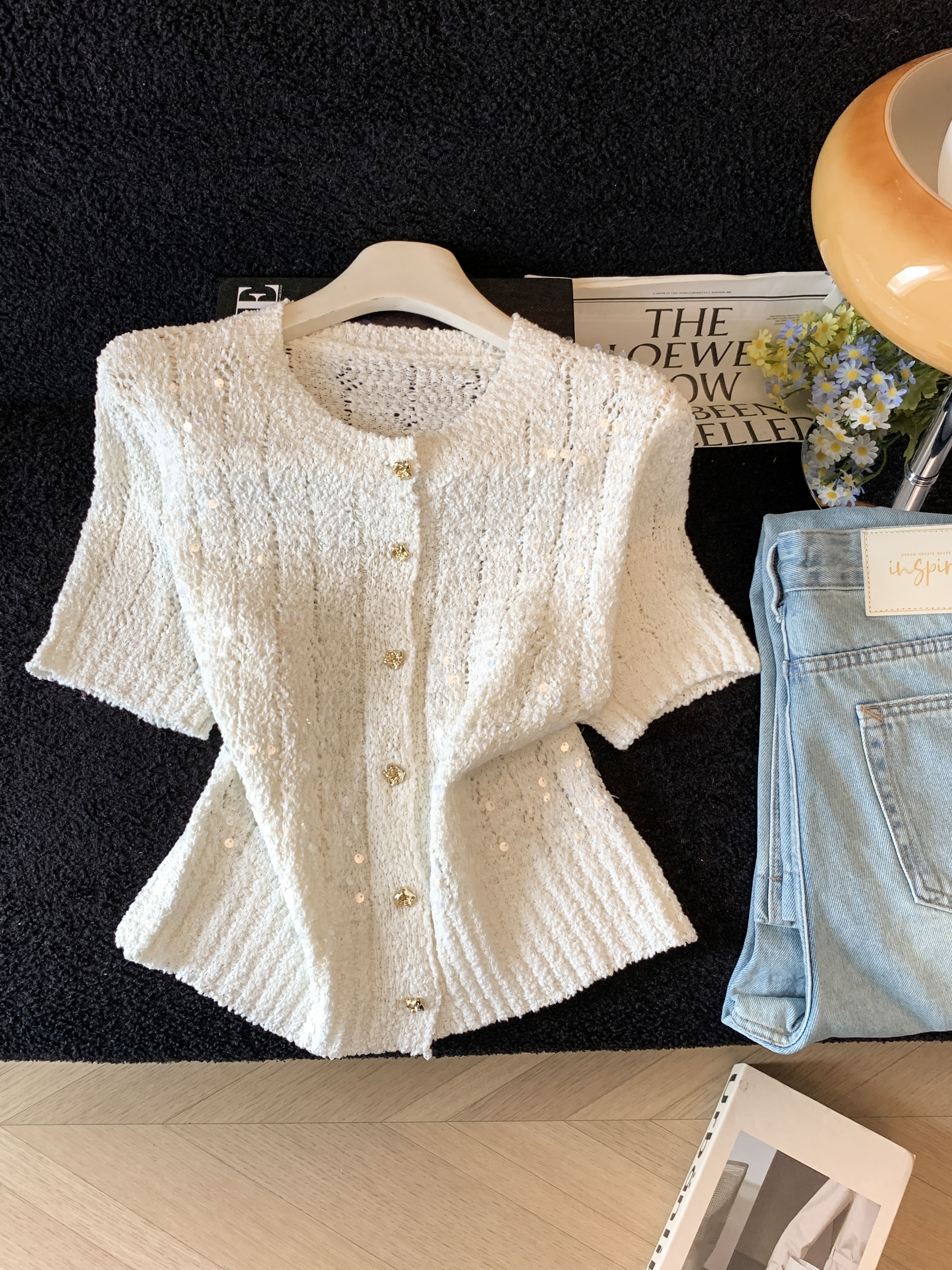 实拍~法式高级感闪耀珠片上衣女2026薄款轻奢镂空冰丝针织开衫
