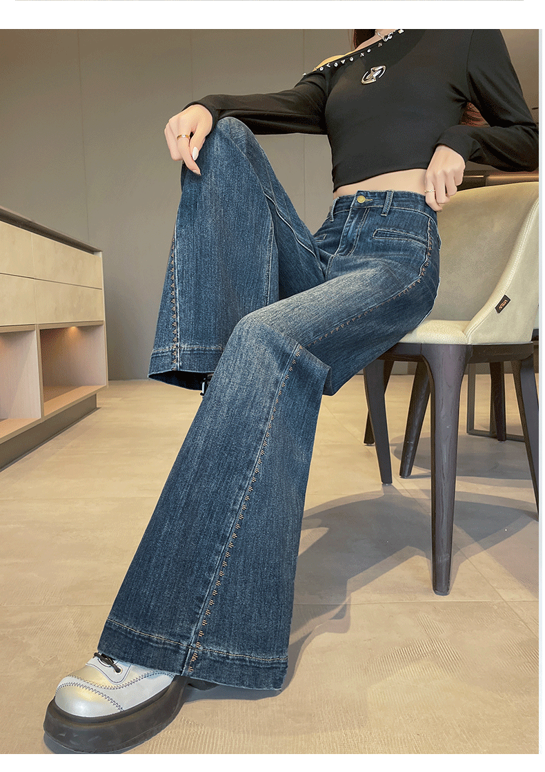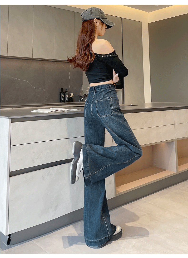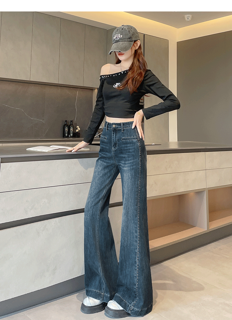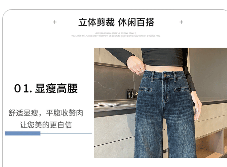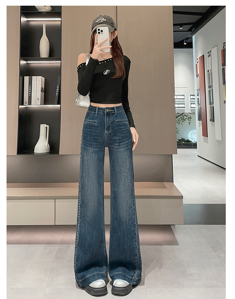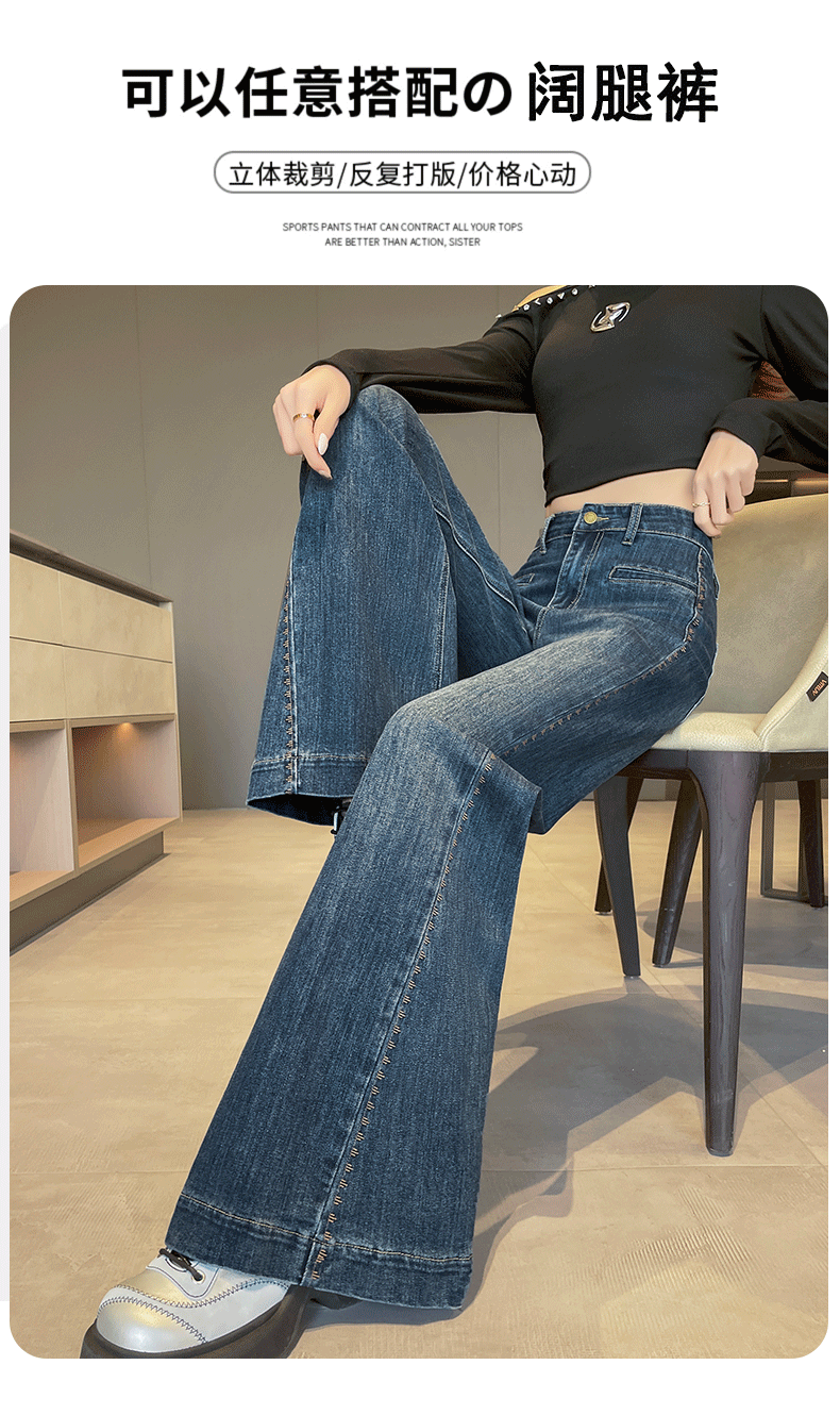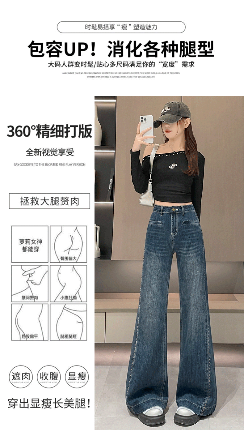 实拍阔腿牛仔裤女春秋2026新款高腰超火宽松显瘦垂感直筒拖地裤子