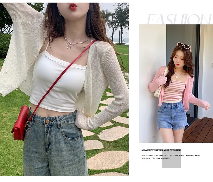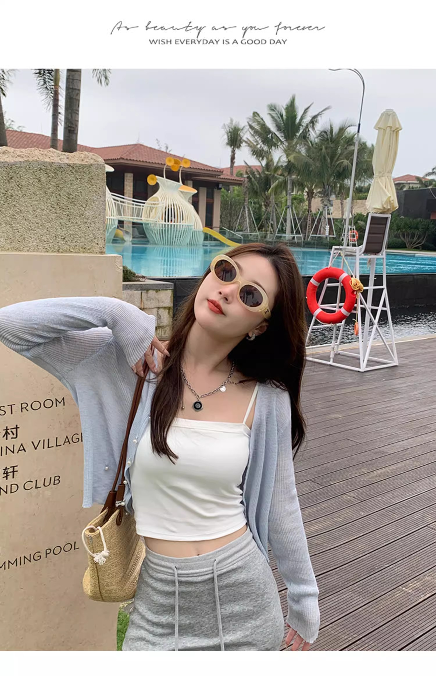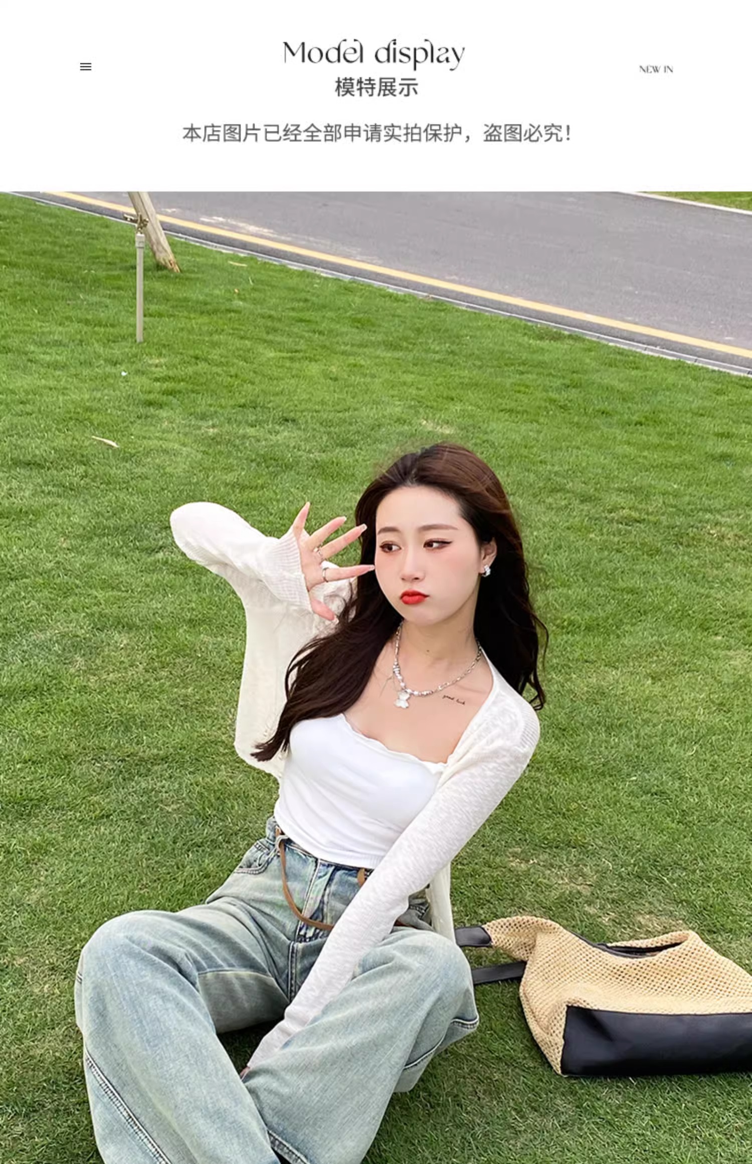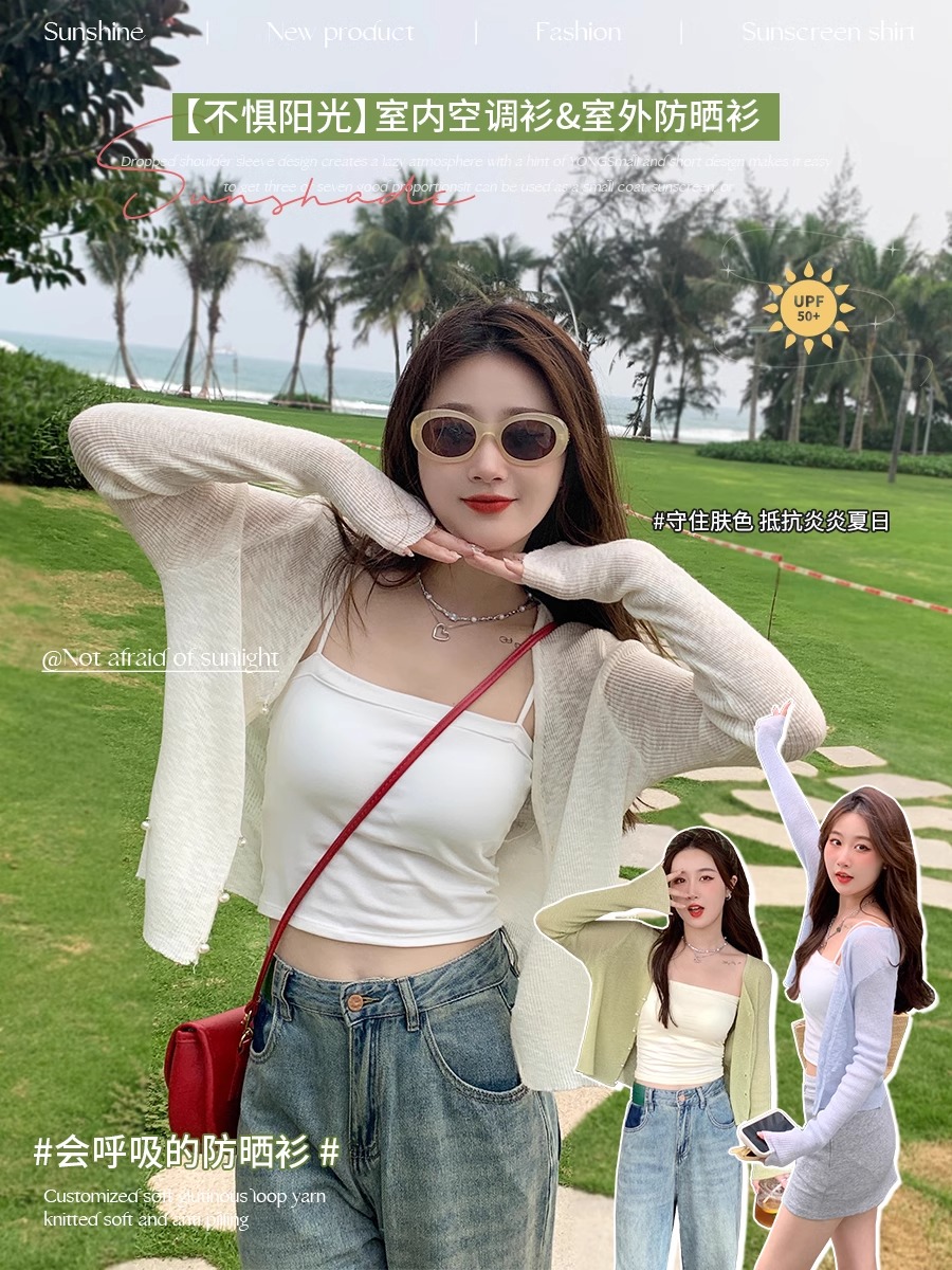 夏天配吊带裙的小外搭开衫薄款女针织小披肩冰丝薄纱防晒外套上衣