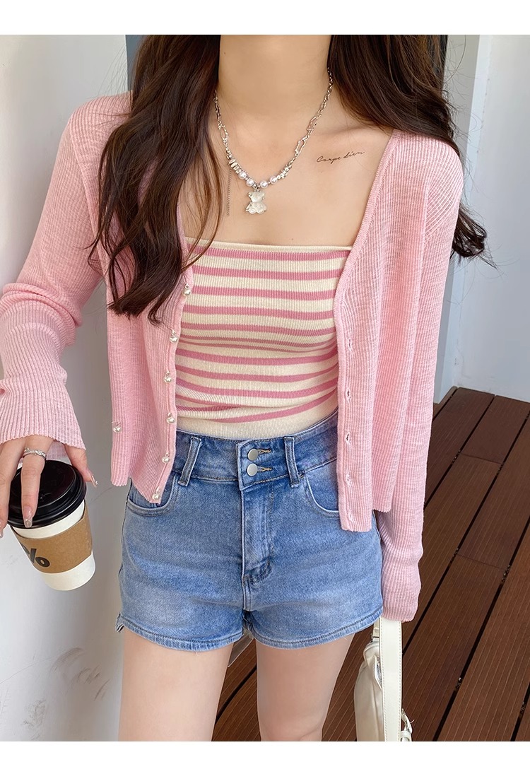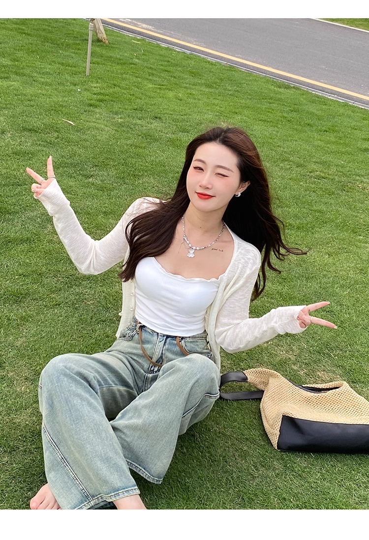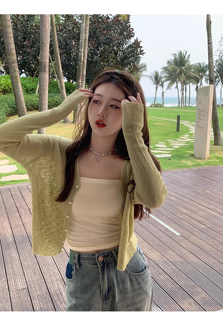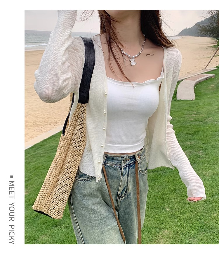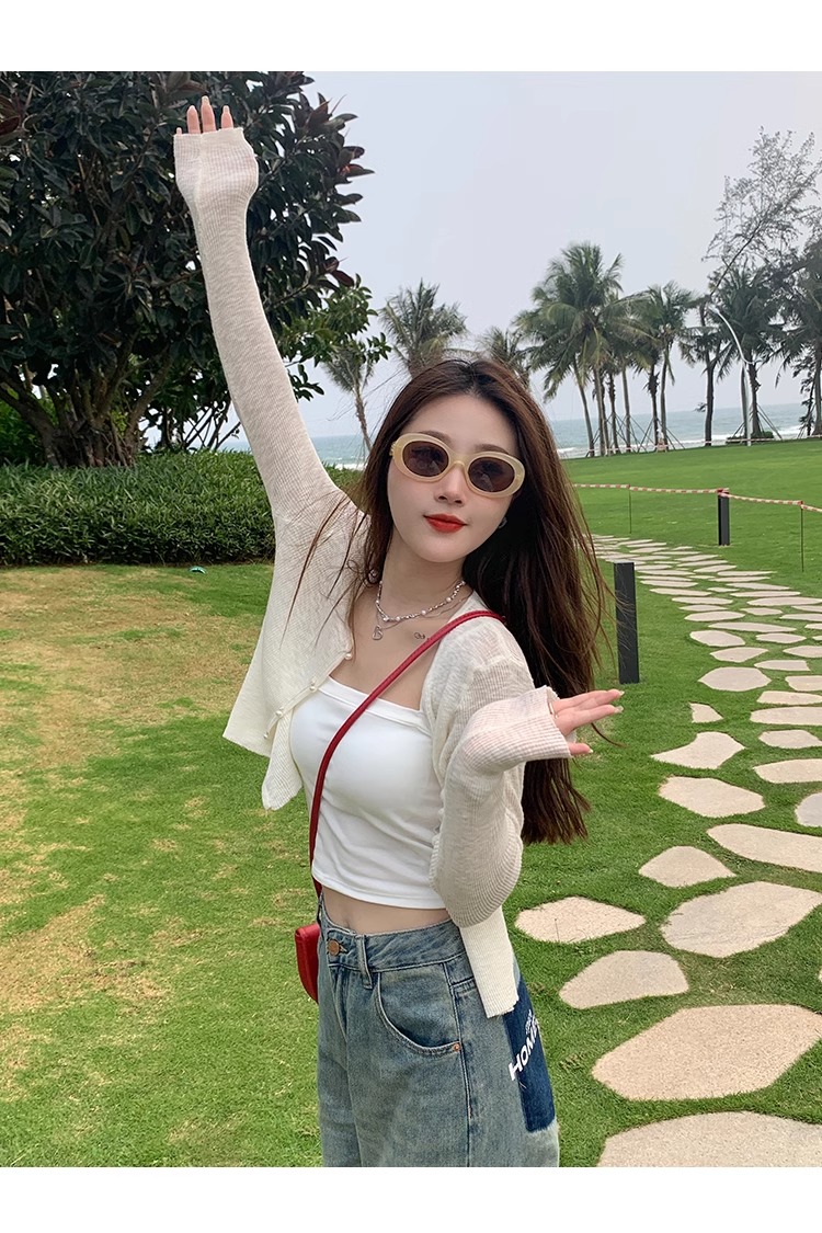 夏天配吊带裙的小外搭开衫薄款女针织小披肩冰丝薄纱防晒外套上衣