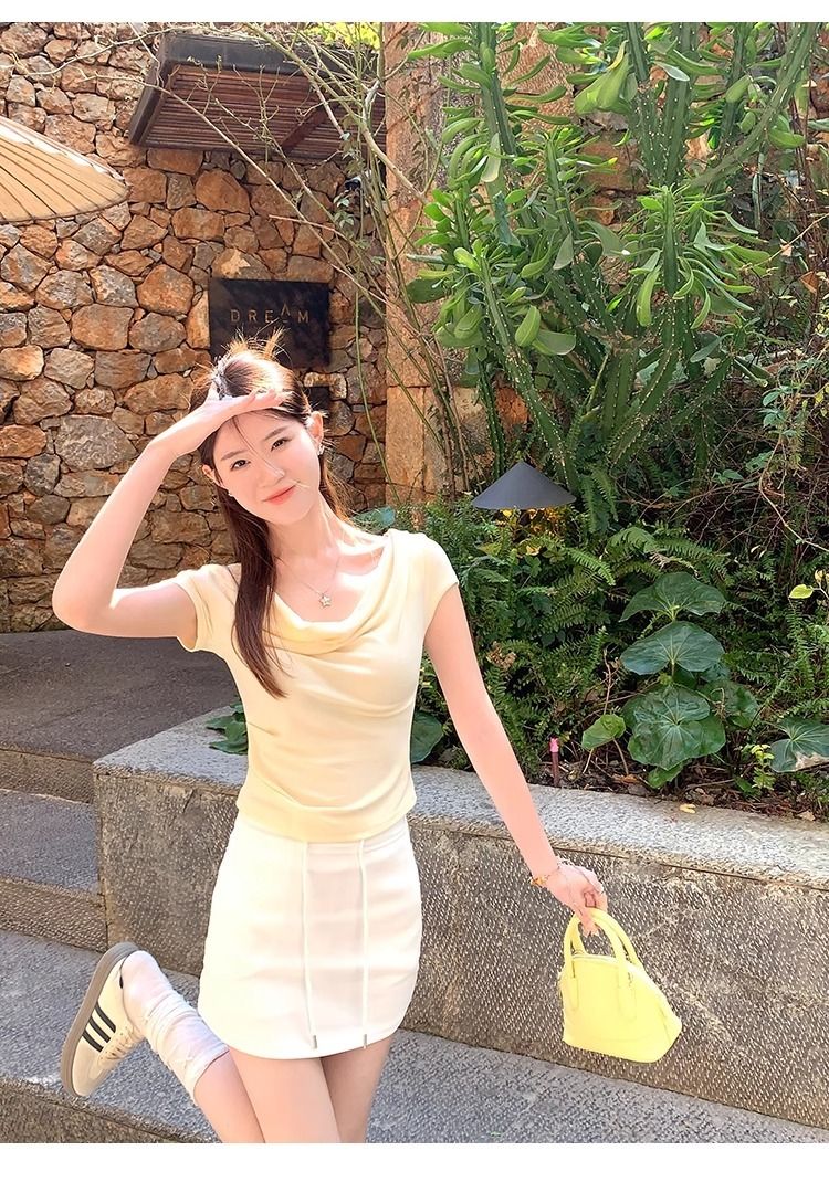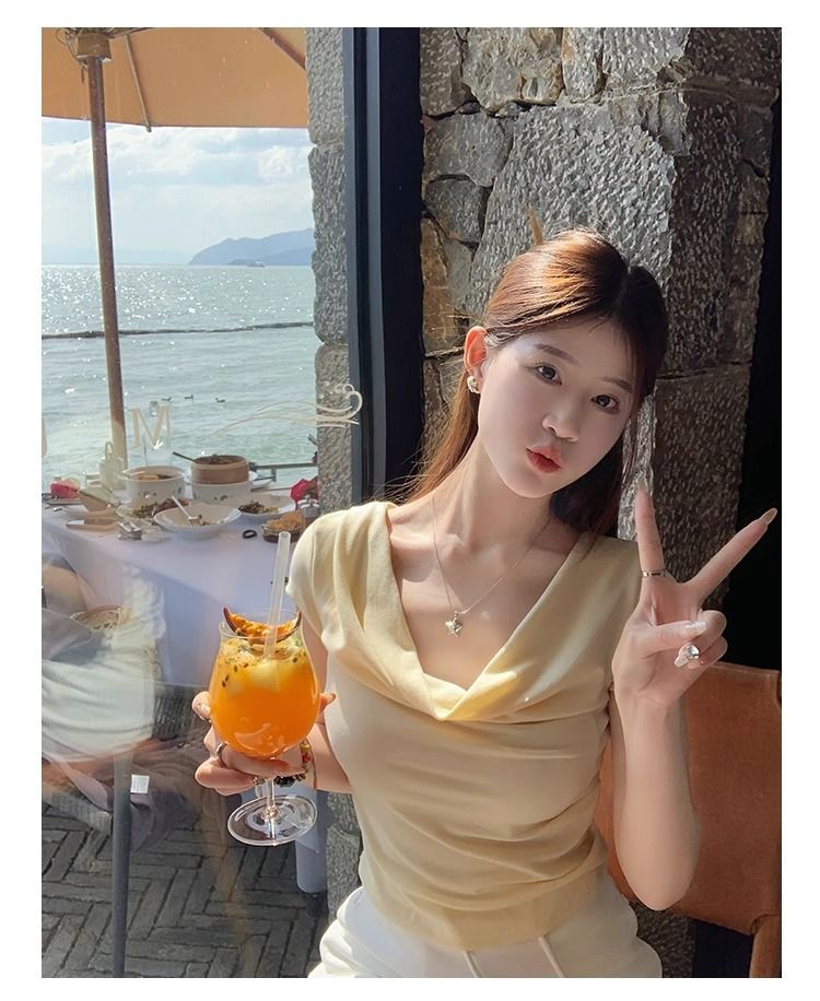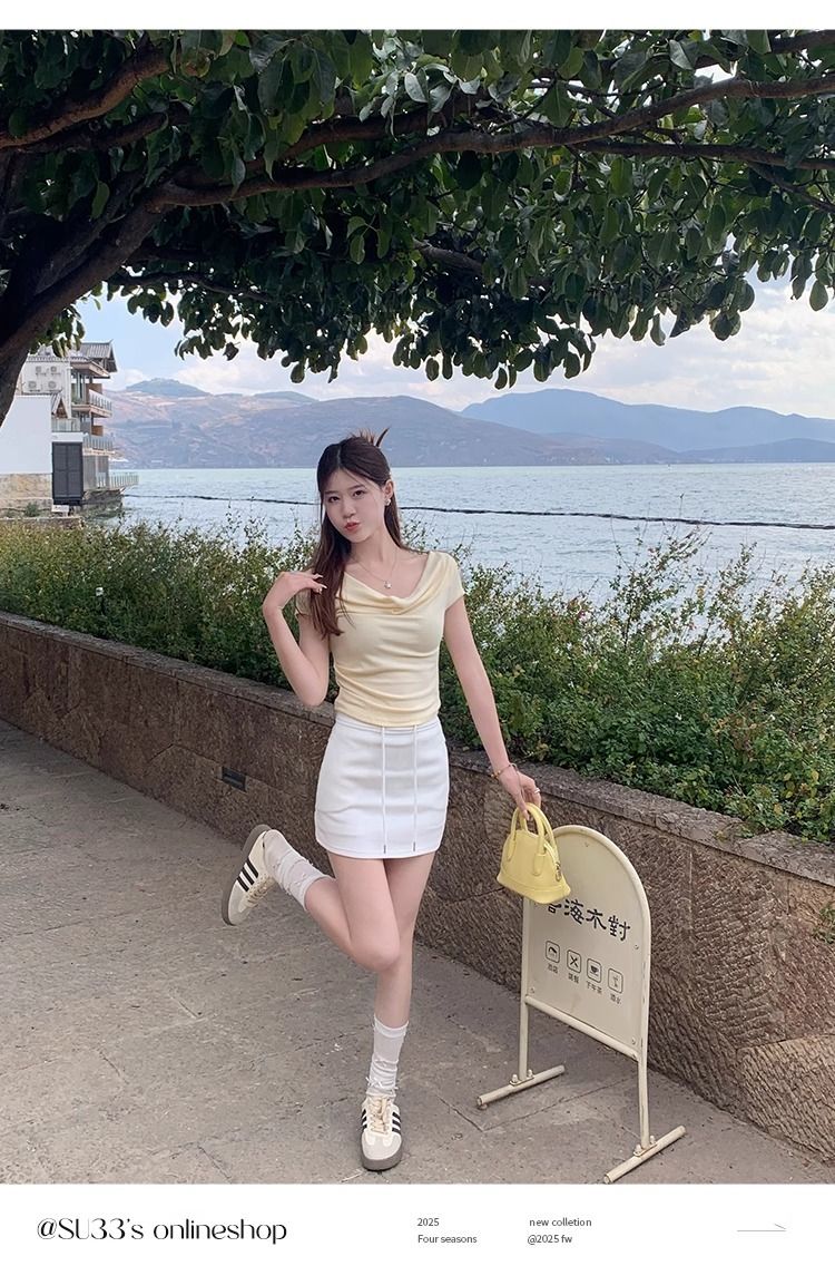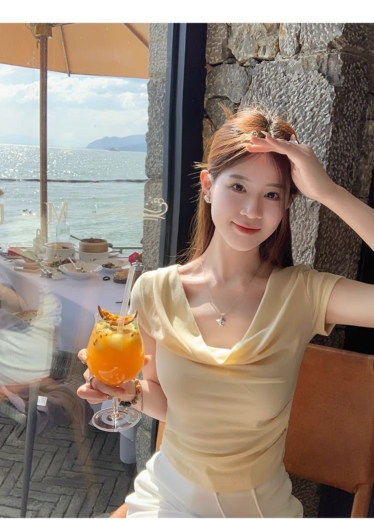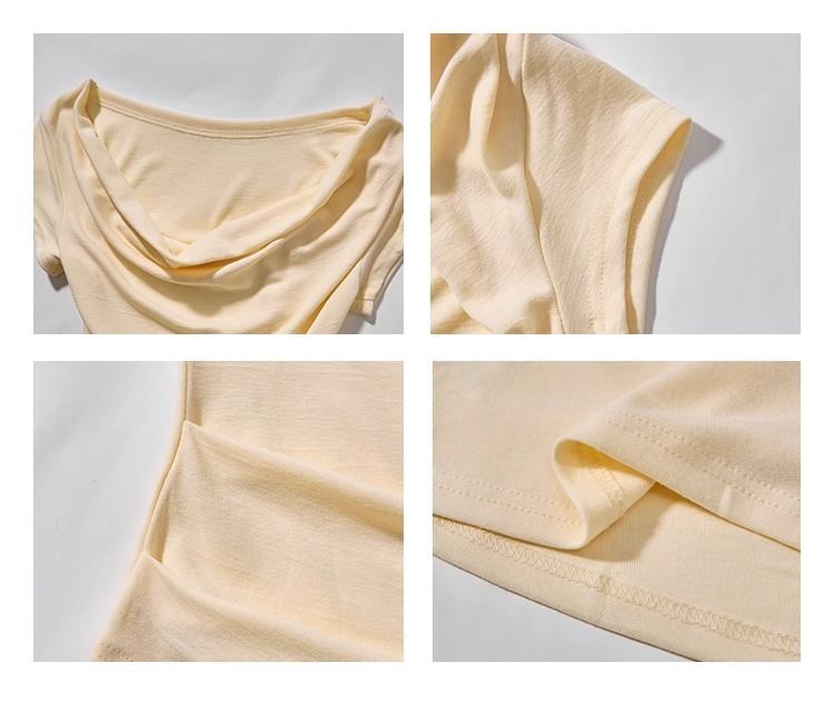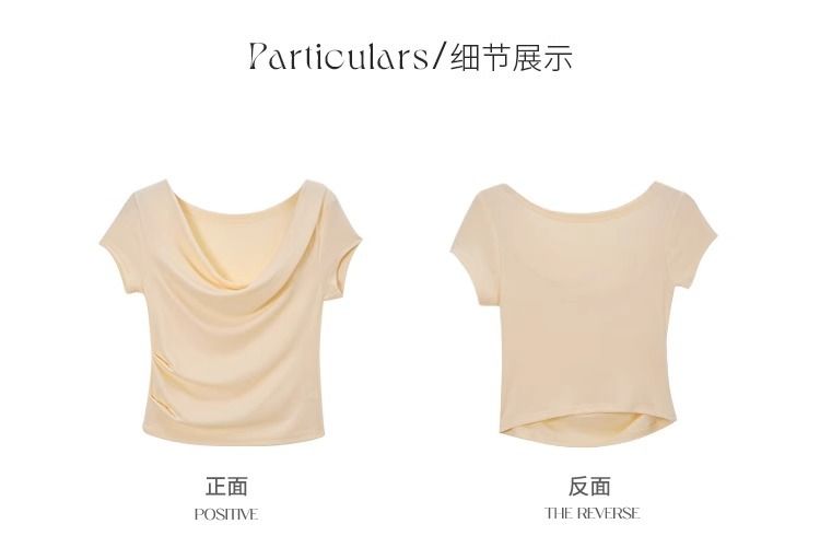 苏三三 法式荡领短袖t恤女2026年新款修身设计感纯欲风一字肩上衣