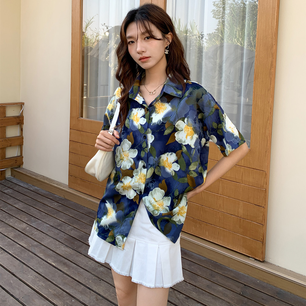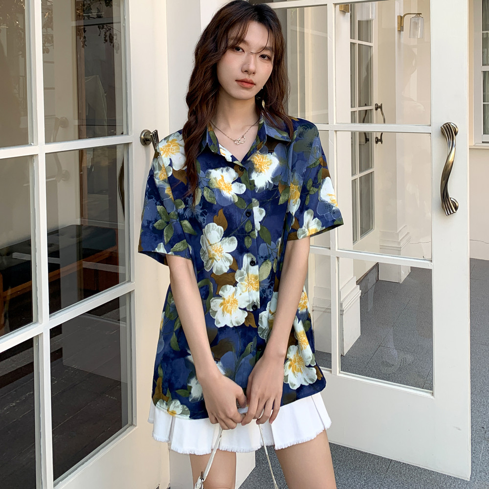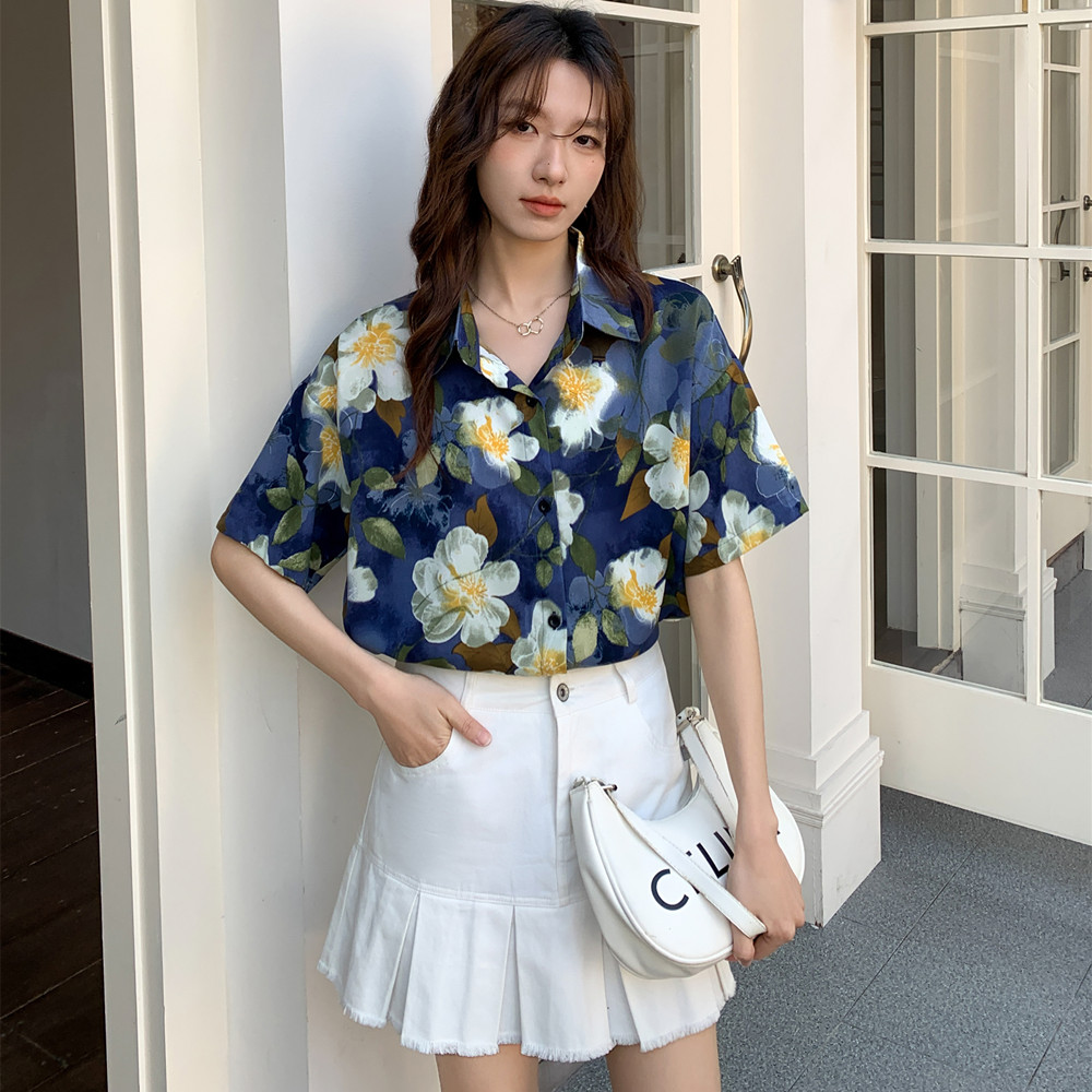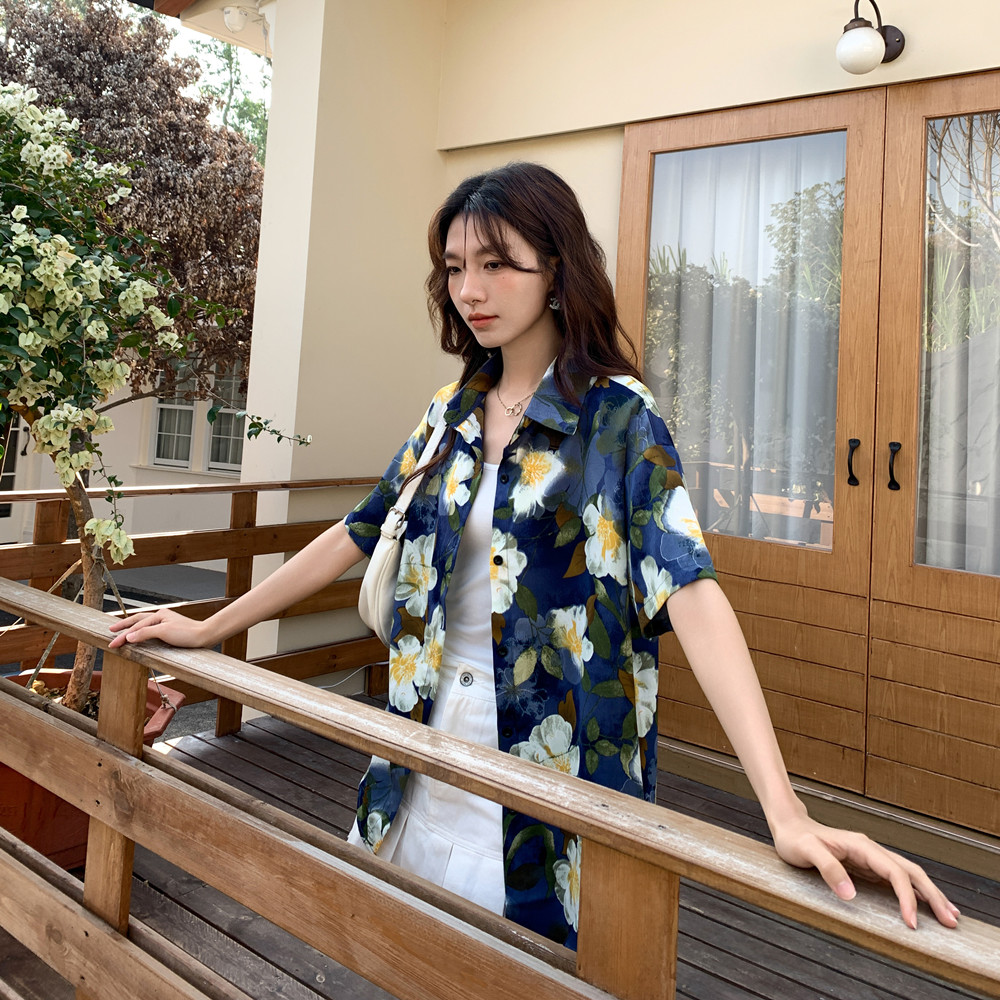 实拍 复古港味碎花衬衫女2026夏季新款设计感小众休闲短袖上衣