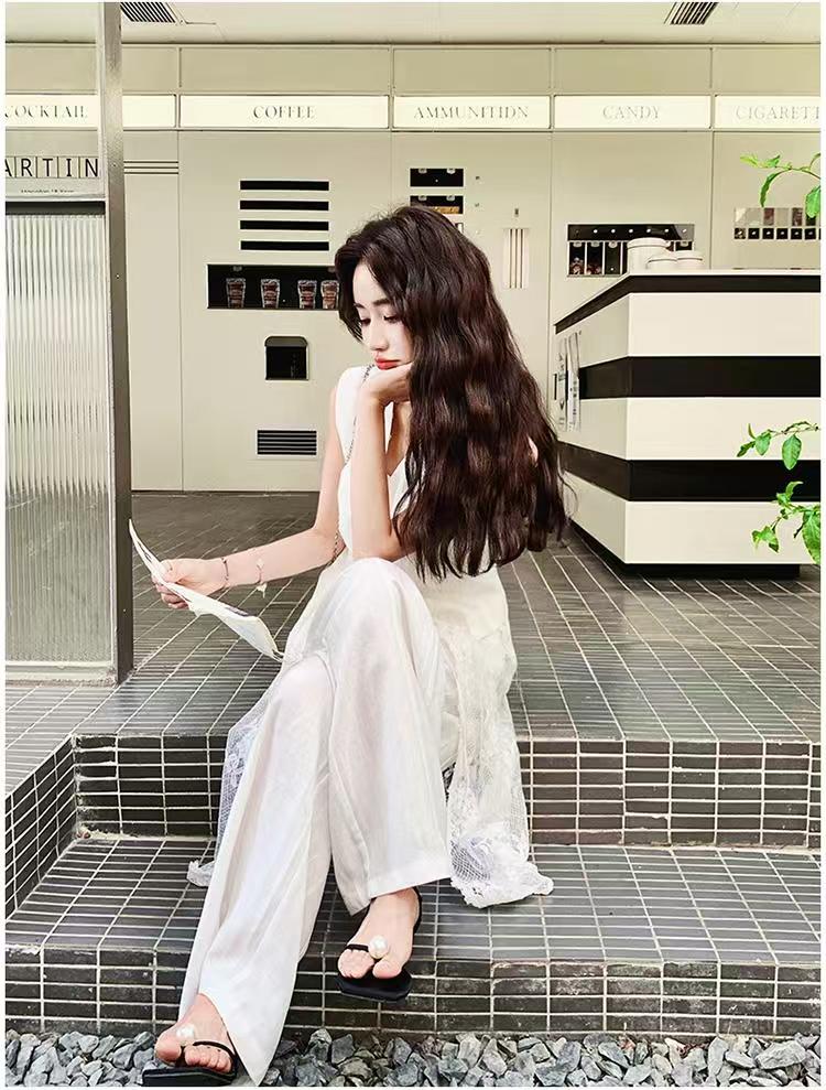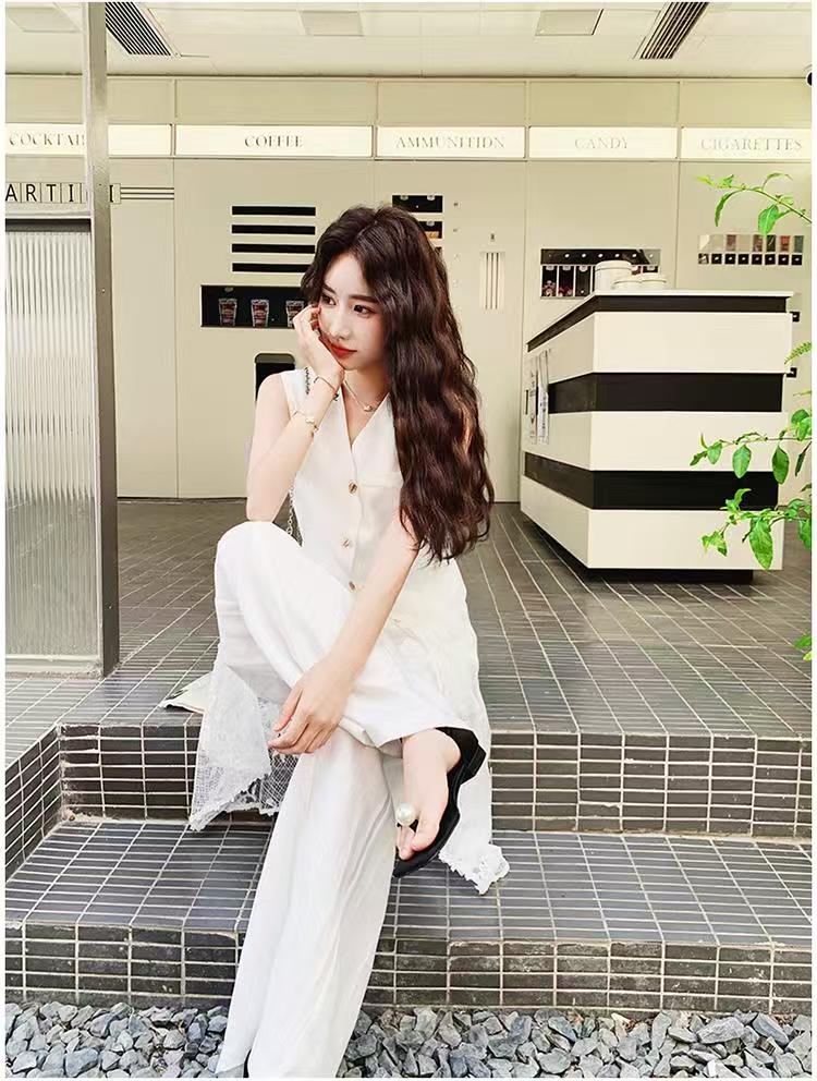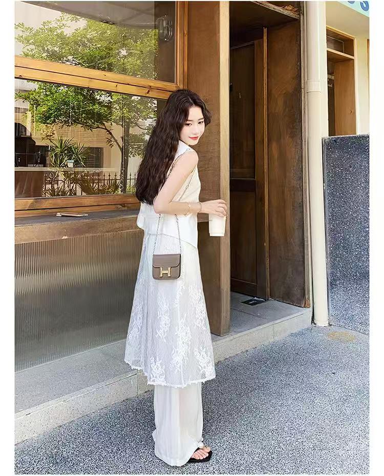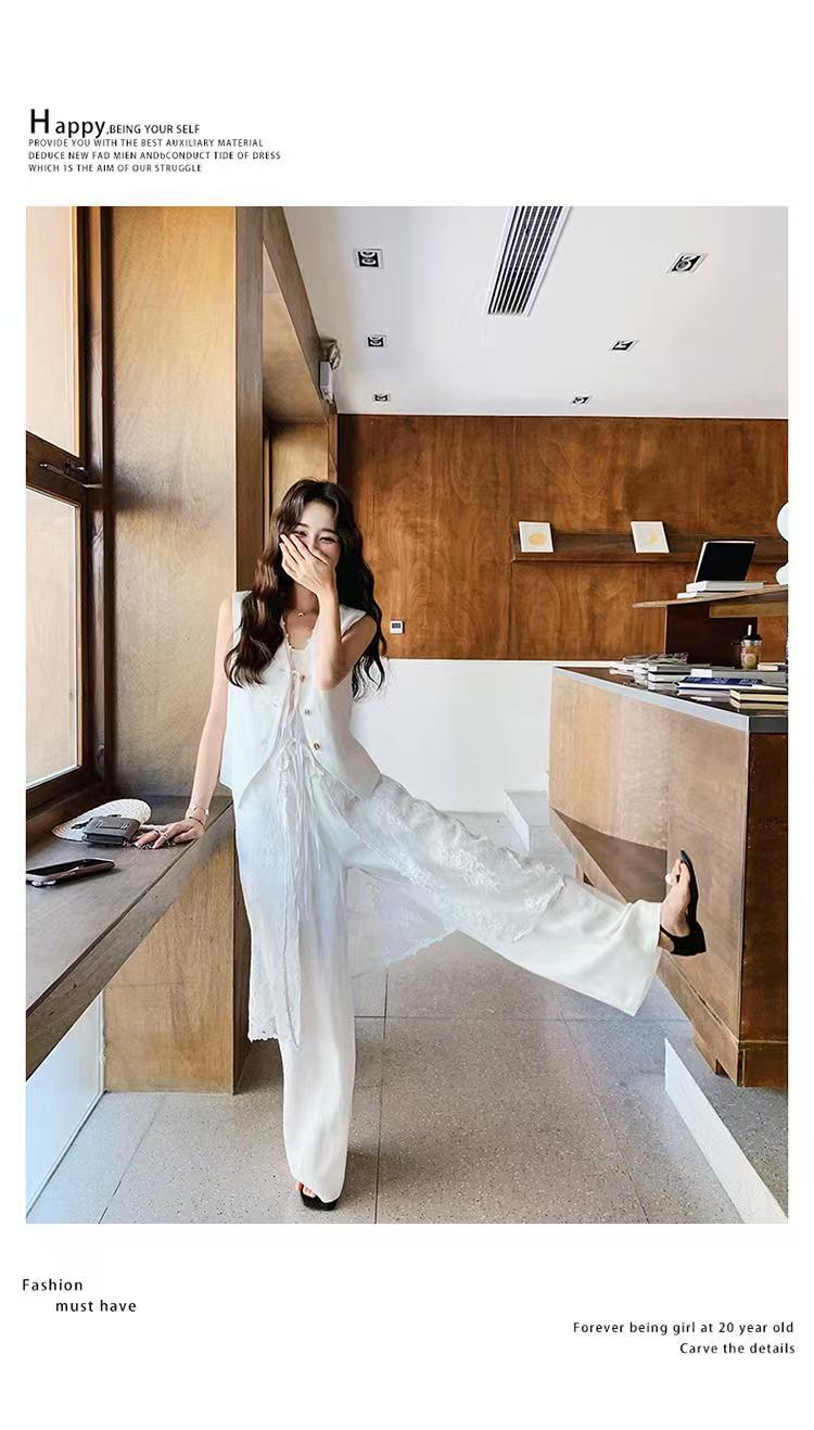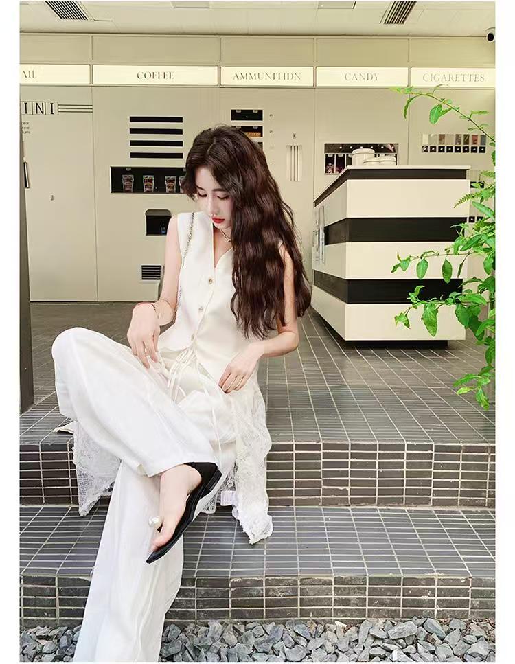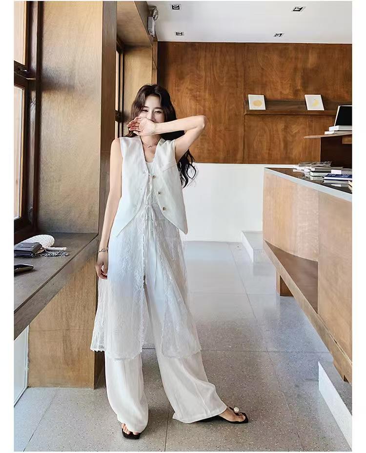又A又飒松弛感套装裤女2025年夏季新款蕾丝罩衫马甲阔腿裤三件套