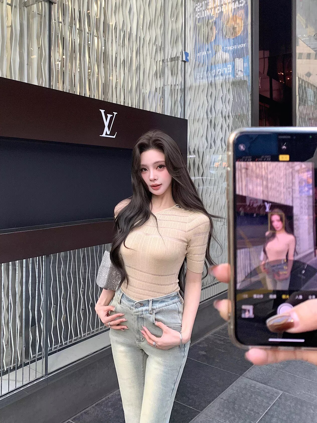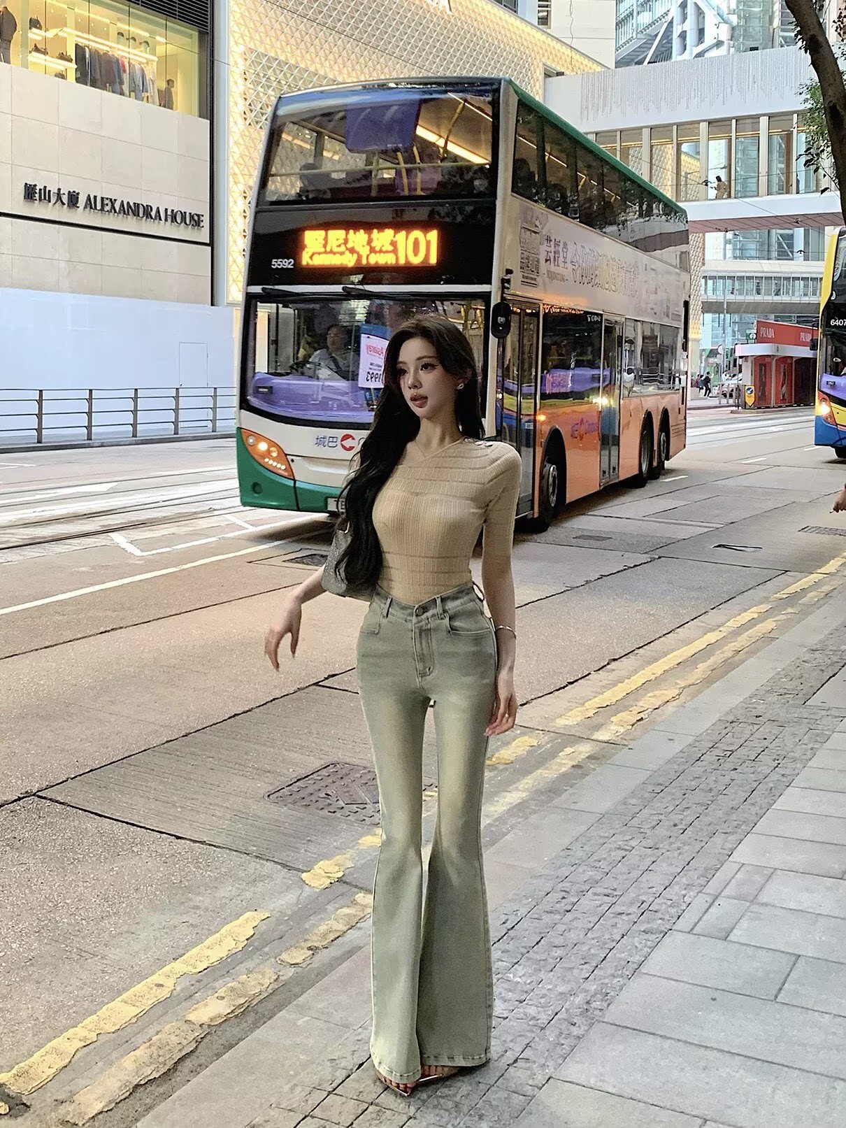 Momoshero韩女V腰裤都市姐感——本命神裤"酒杯腰"洗水微喇裤