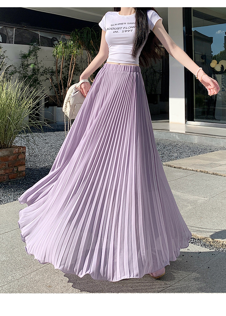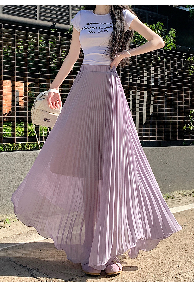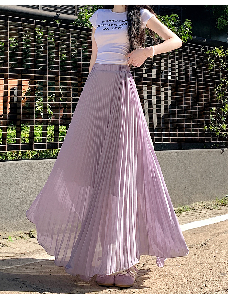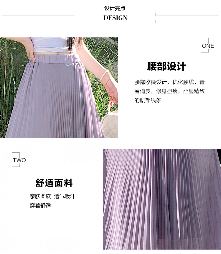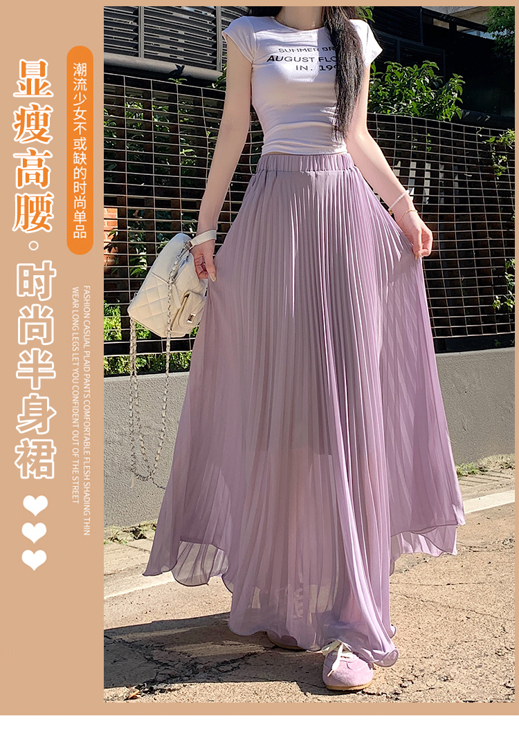 实拍半身裙女紫色高腰大摆裙温柔风设计感大摆中长裙子迷笛裙