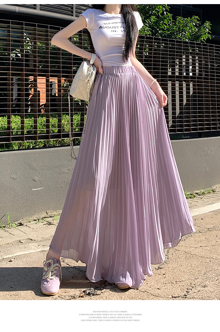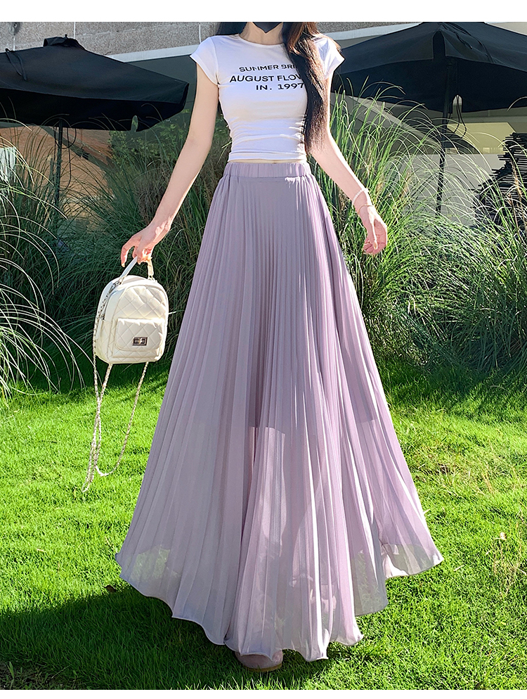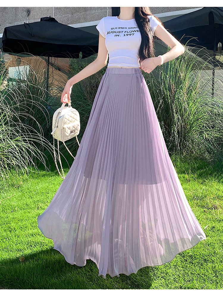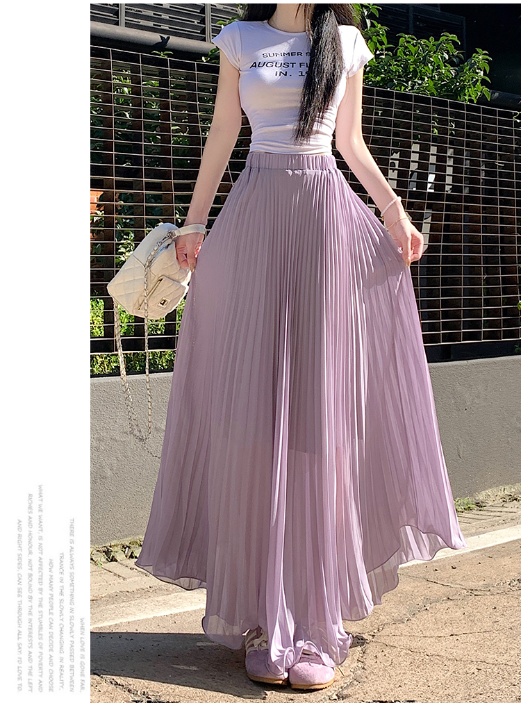 实拍半身裙女紫色高腰大摆裙温柔风设计感大摆中长裙子迷笛裙