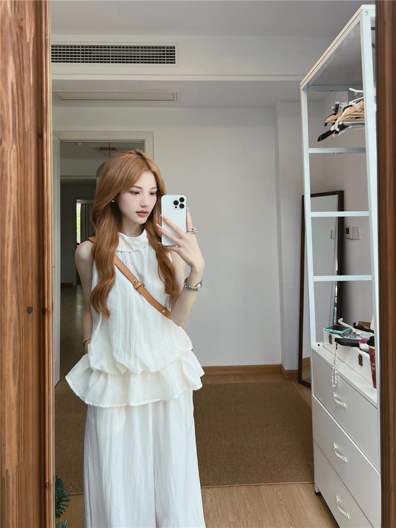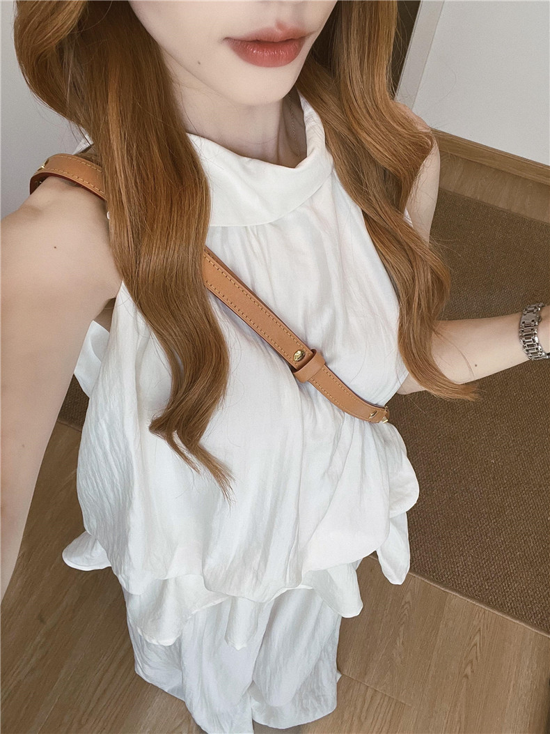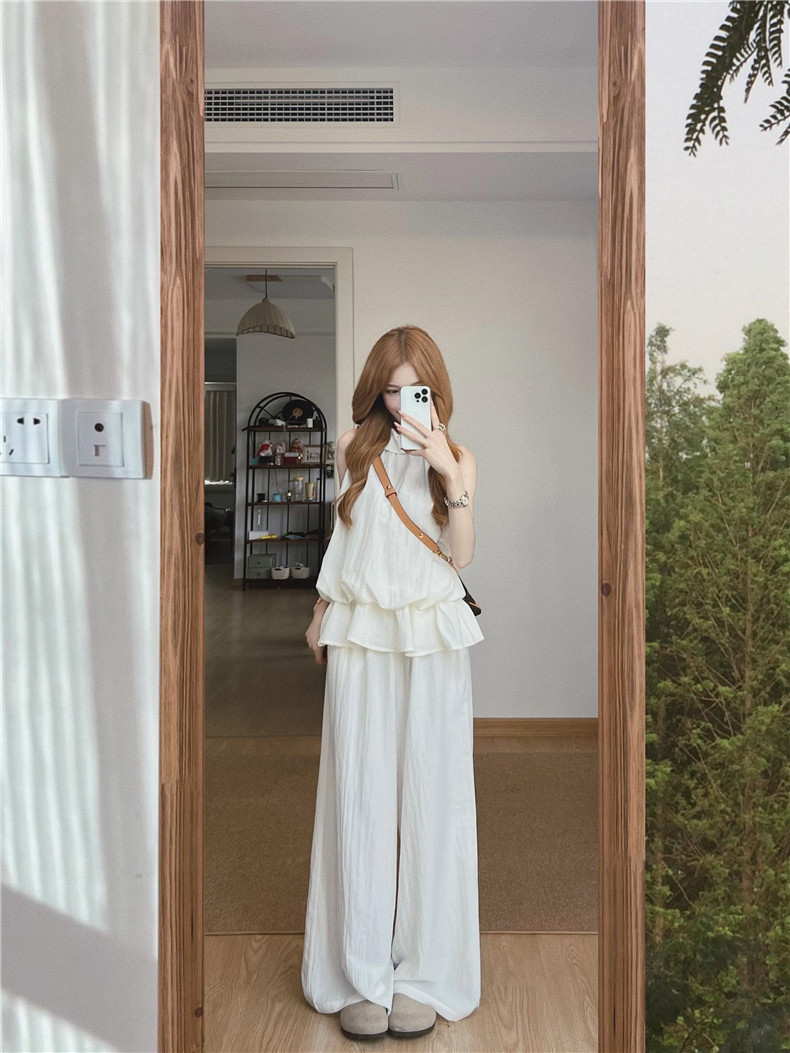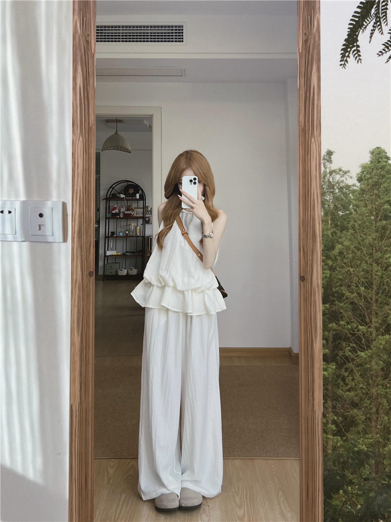 法式温柔白色挂脖上衣女2025夏季新款气质小众无袖背心休闲裤套装