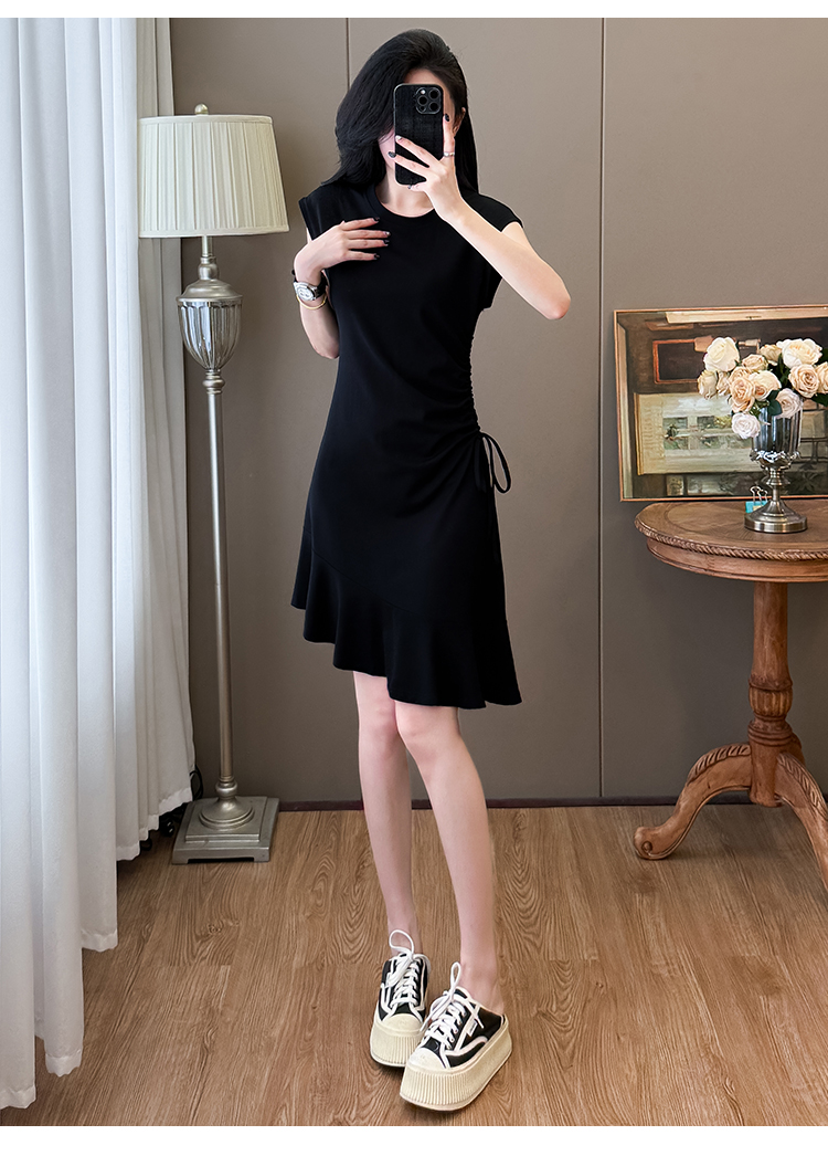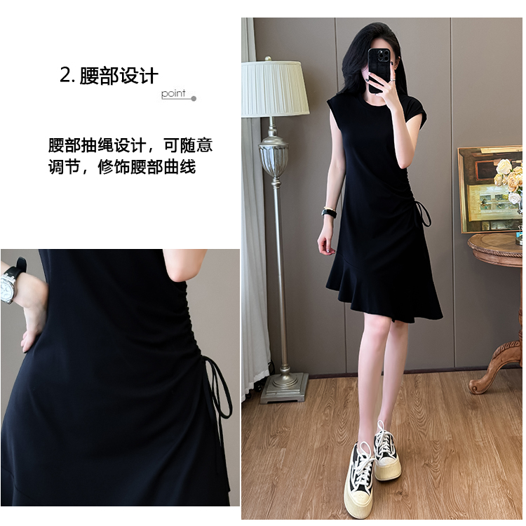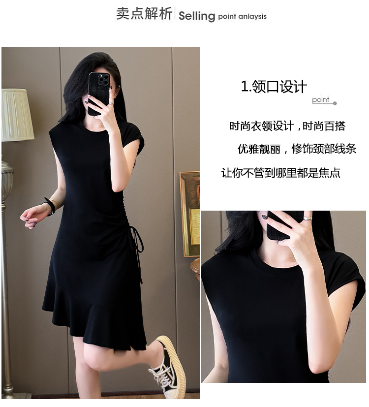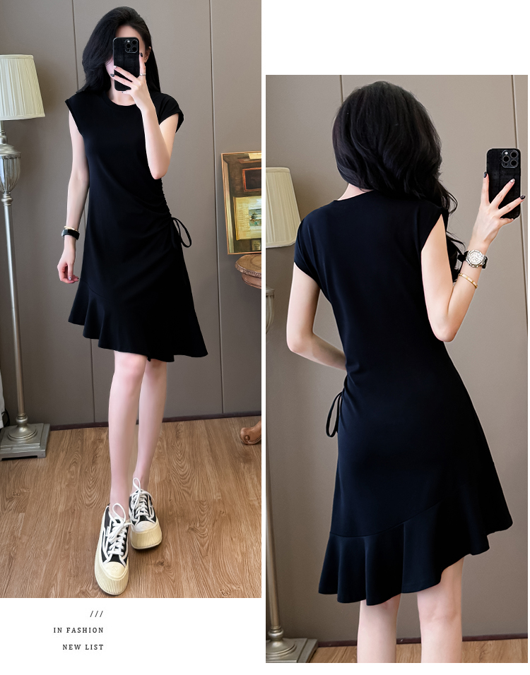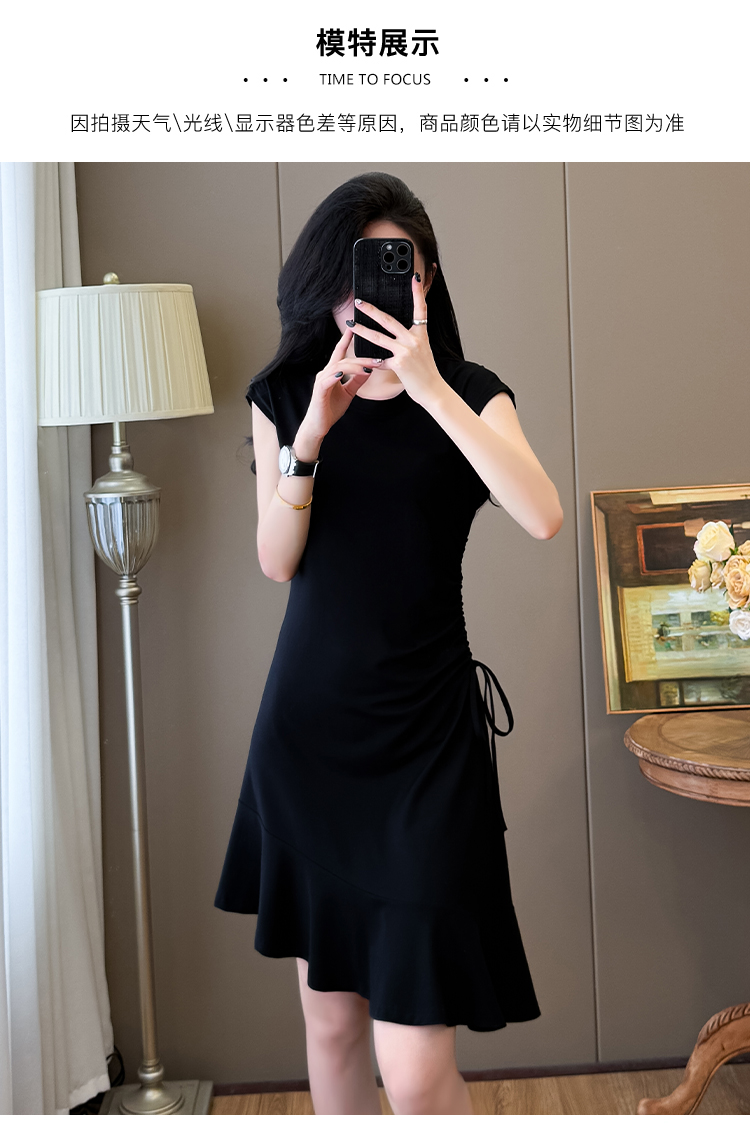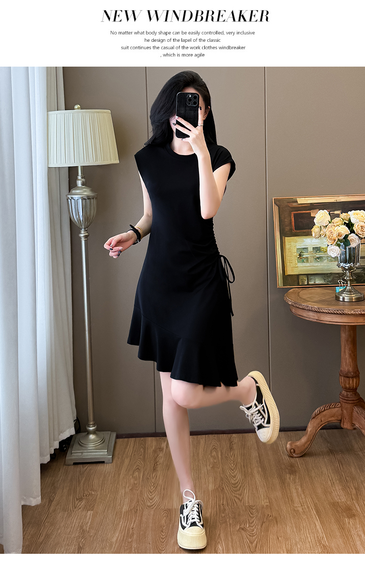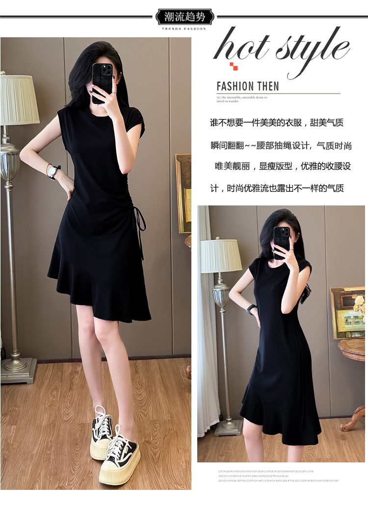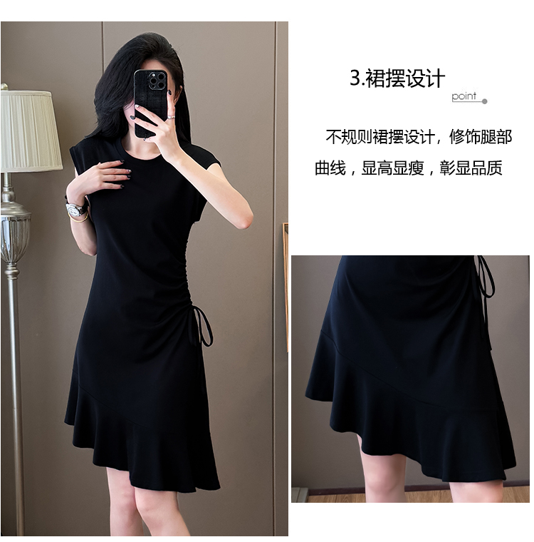 实拍抽绳连衣裙鱼尾不规则中长款大码T恤裙女夏