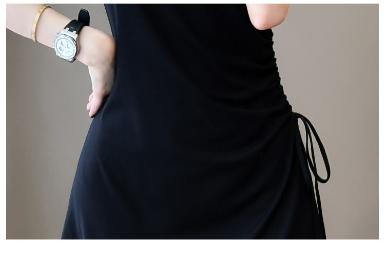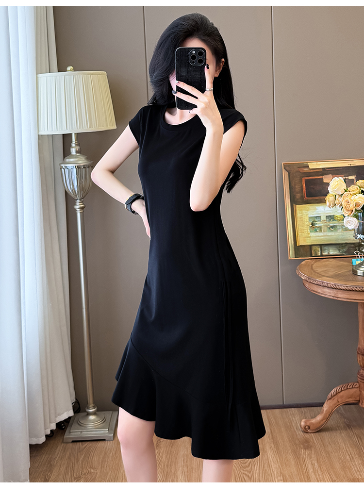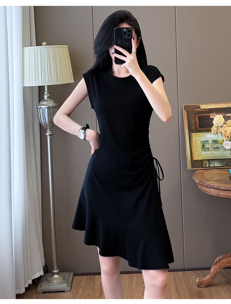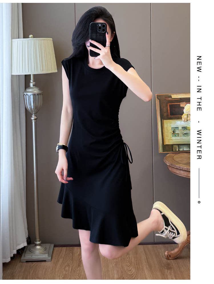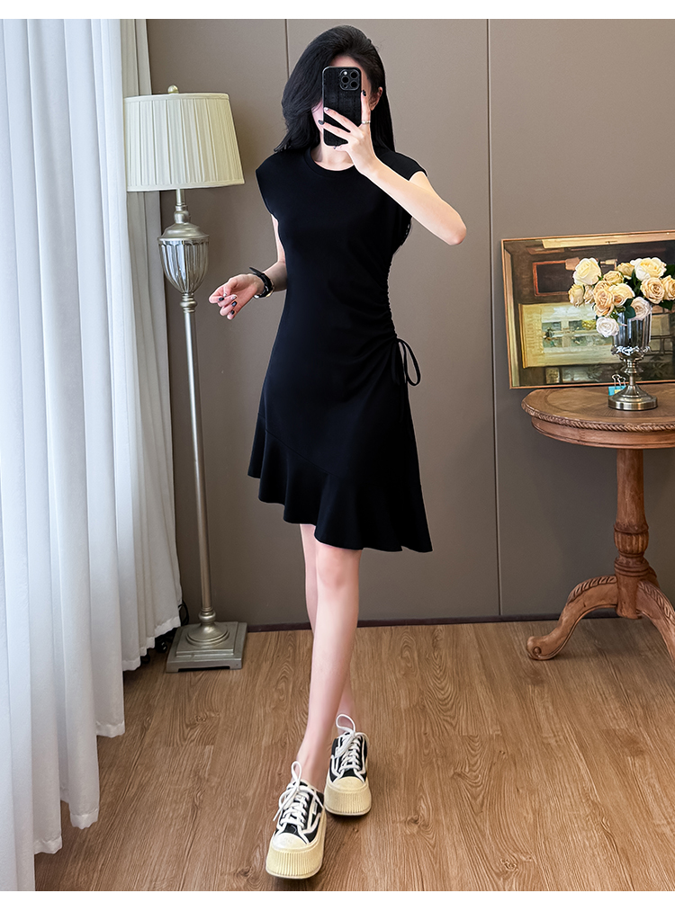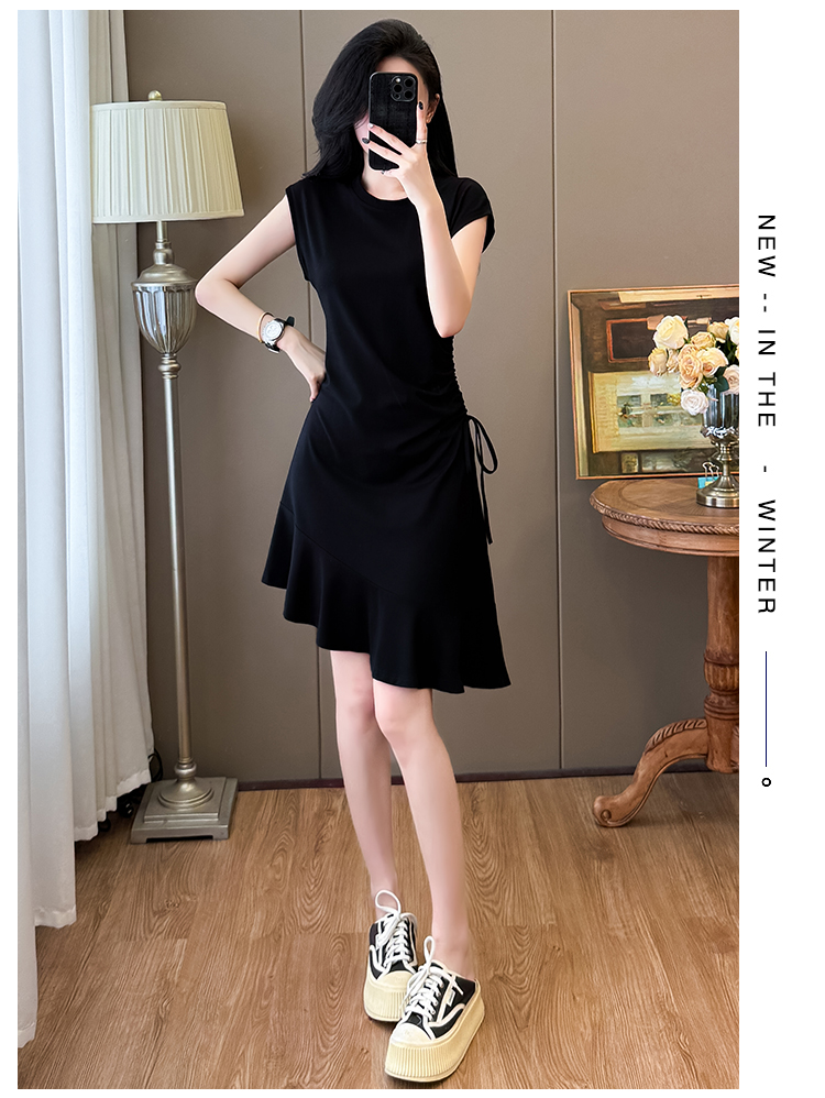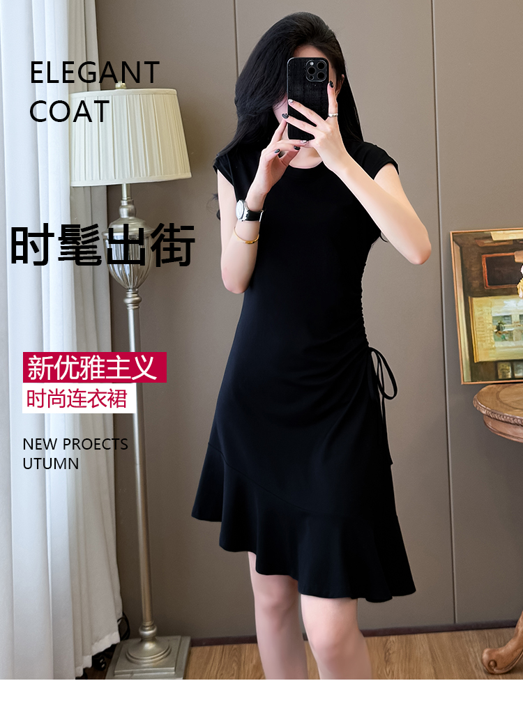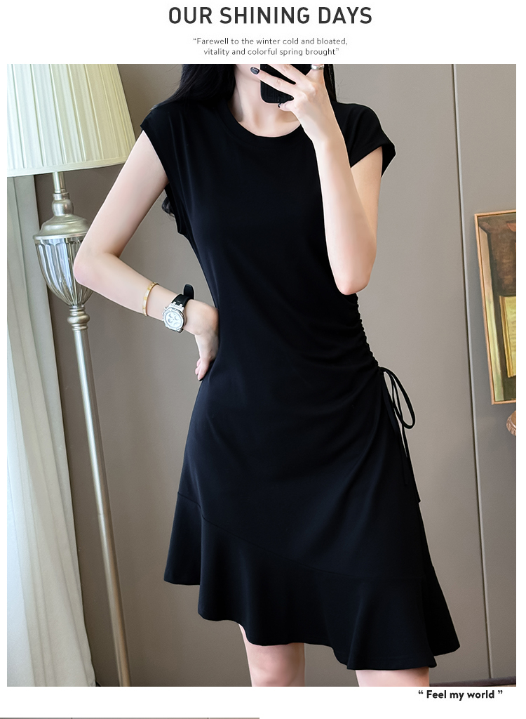 实拍抽绳连衣裙鱼尾不规则中长款大码T恤裙女夏