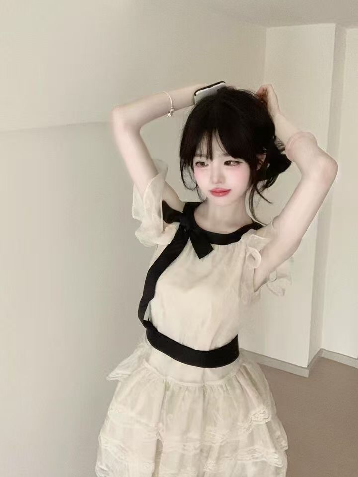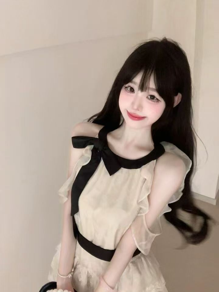 韩系氛围感穿搭法式露肩连衣裙女夏新款生日小礼服高级感蛋糕裙子