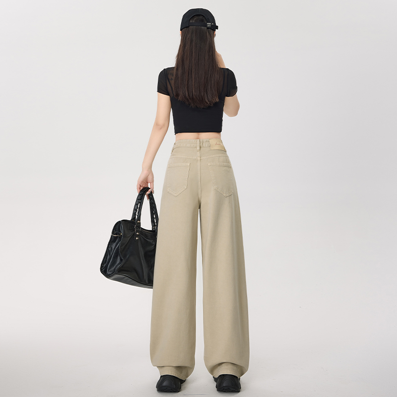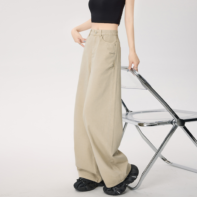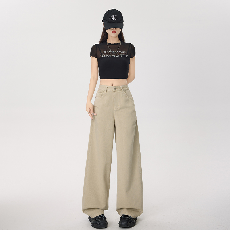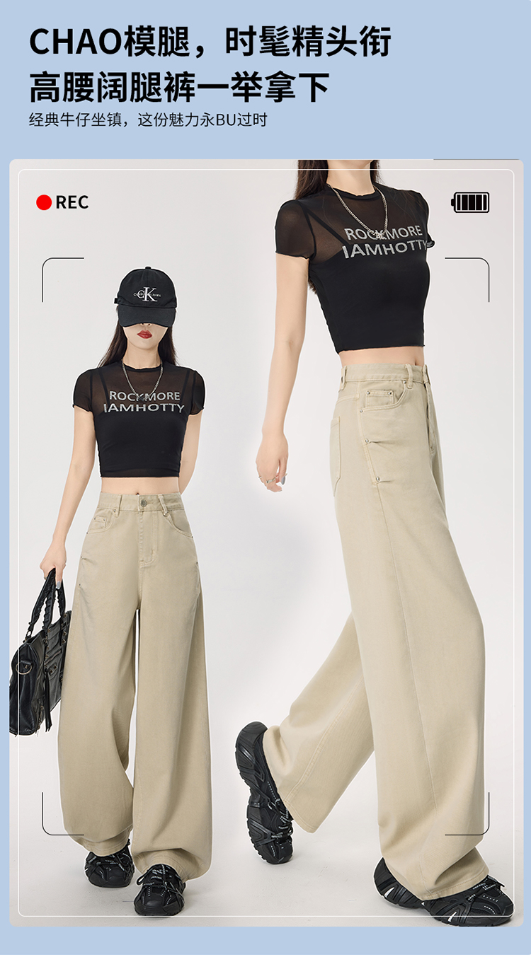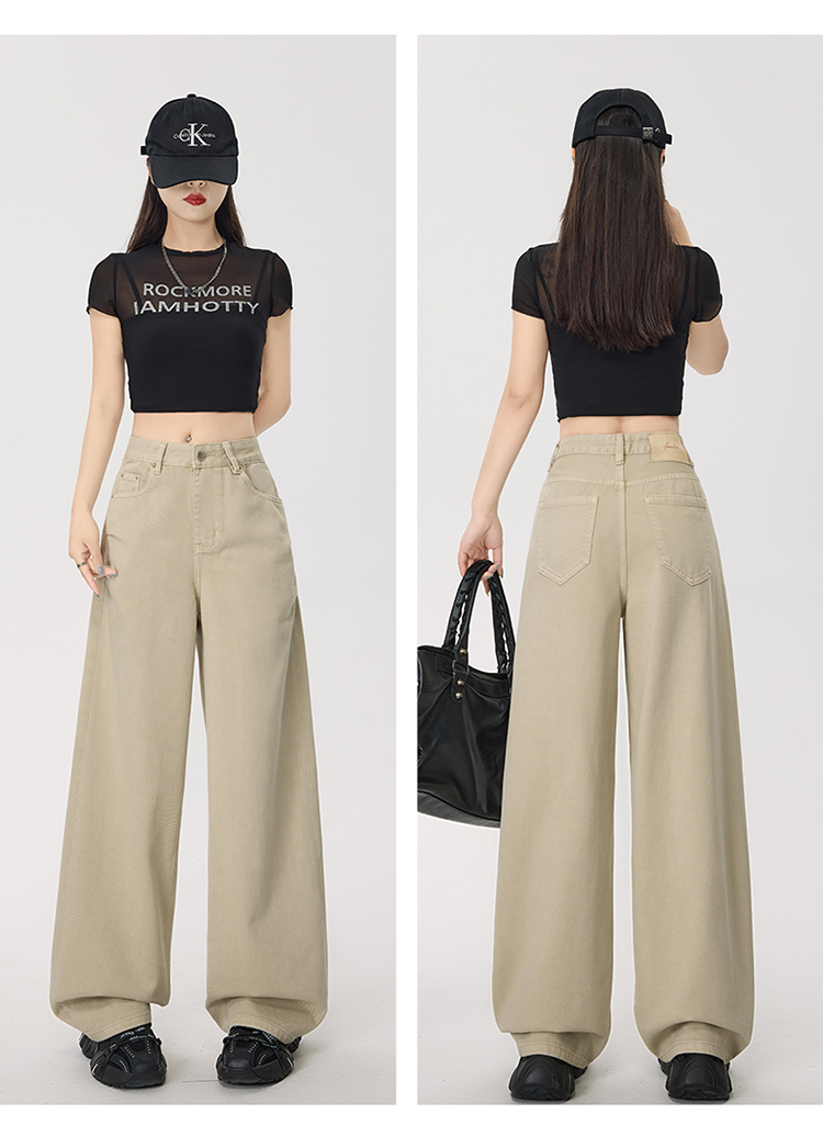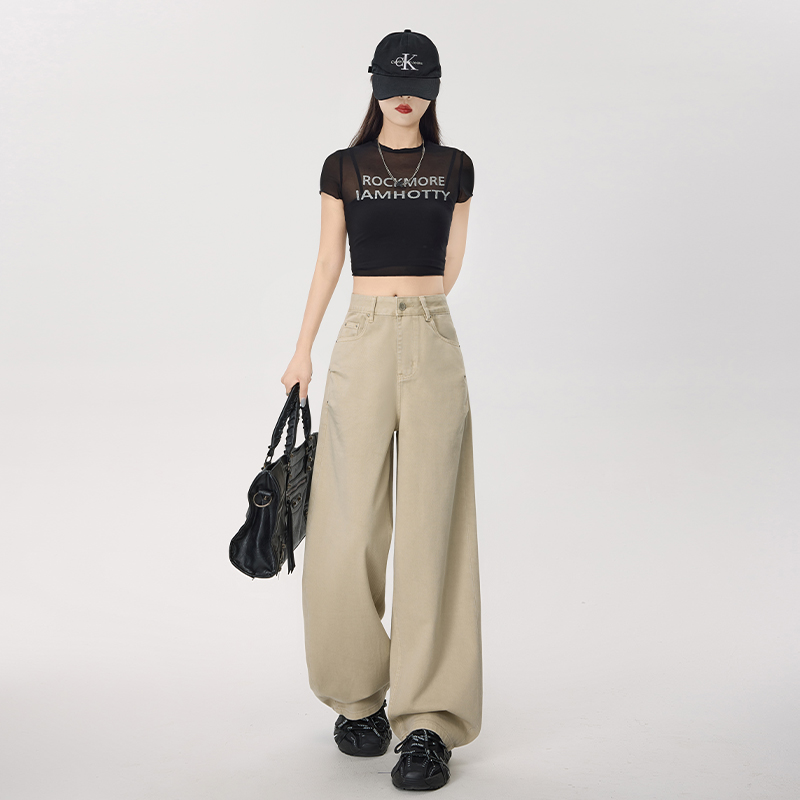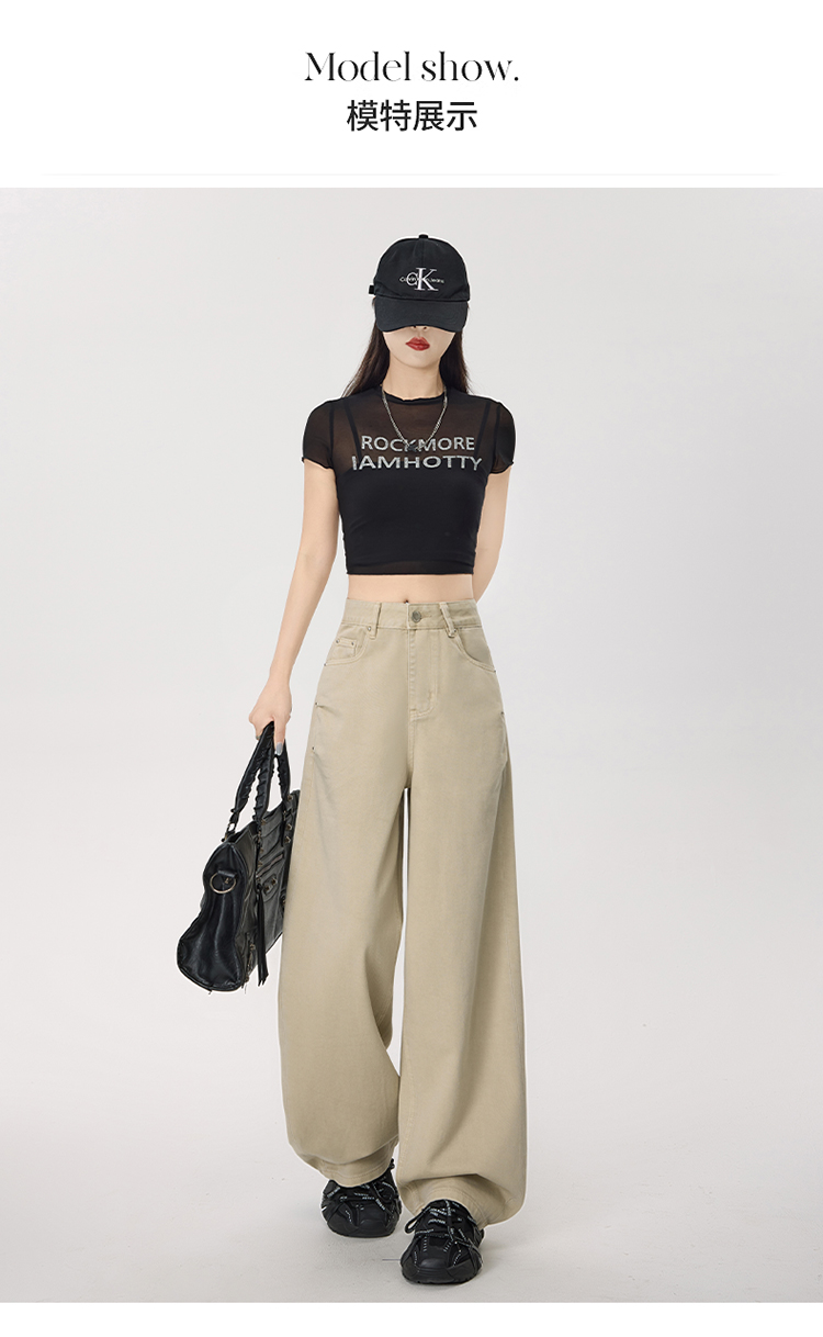 实拍~S-4XL新款大码宽松纯棉高腰窄版弯刀裤牛仔裤慵懒松弛感女