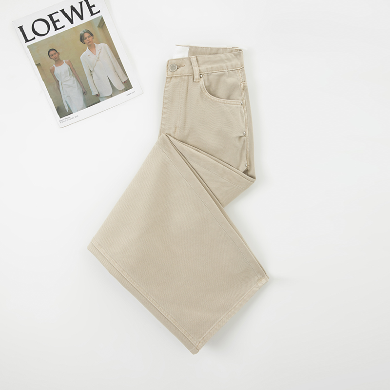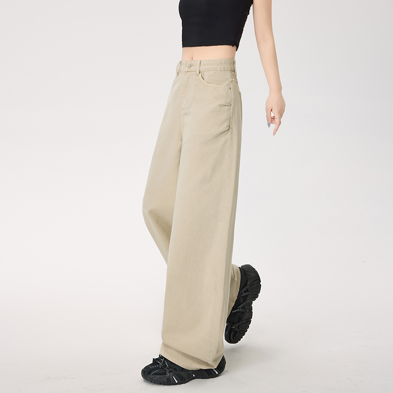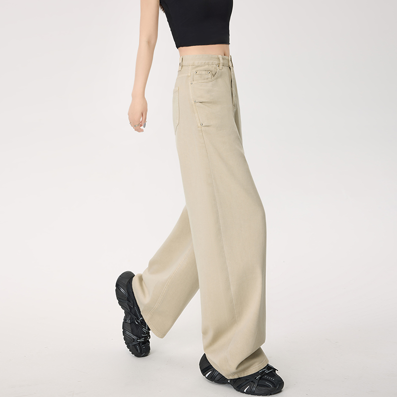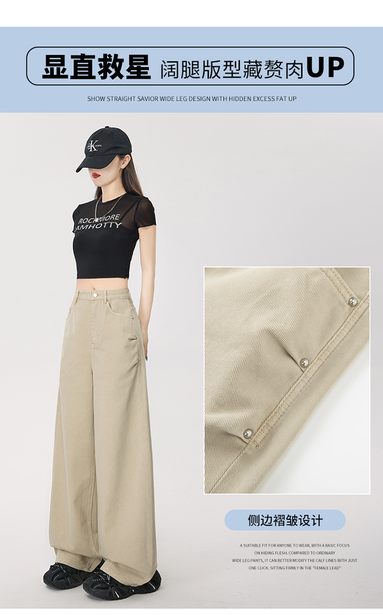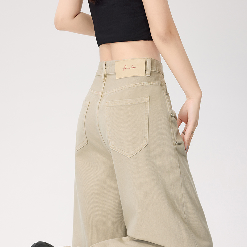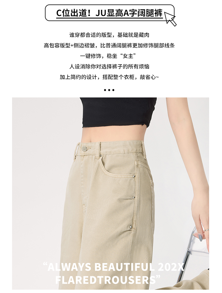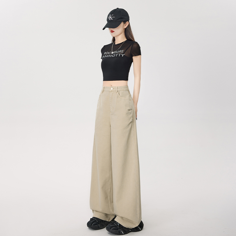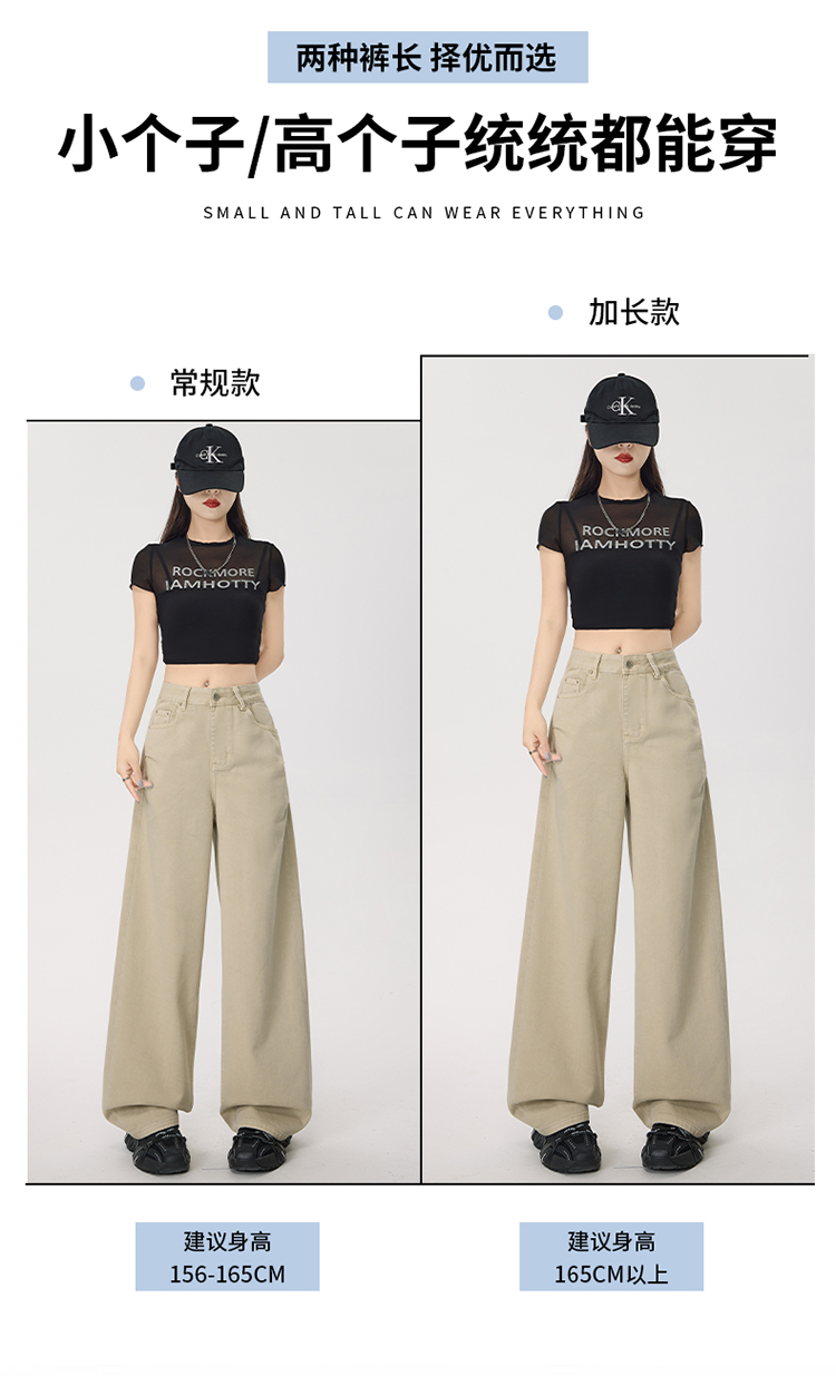 实拍~S-4XL新款大码宽松纯棉高腰窄版弯刀裤牛仔裤慵懒松弛感女