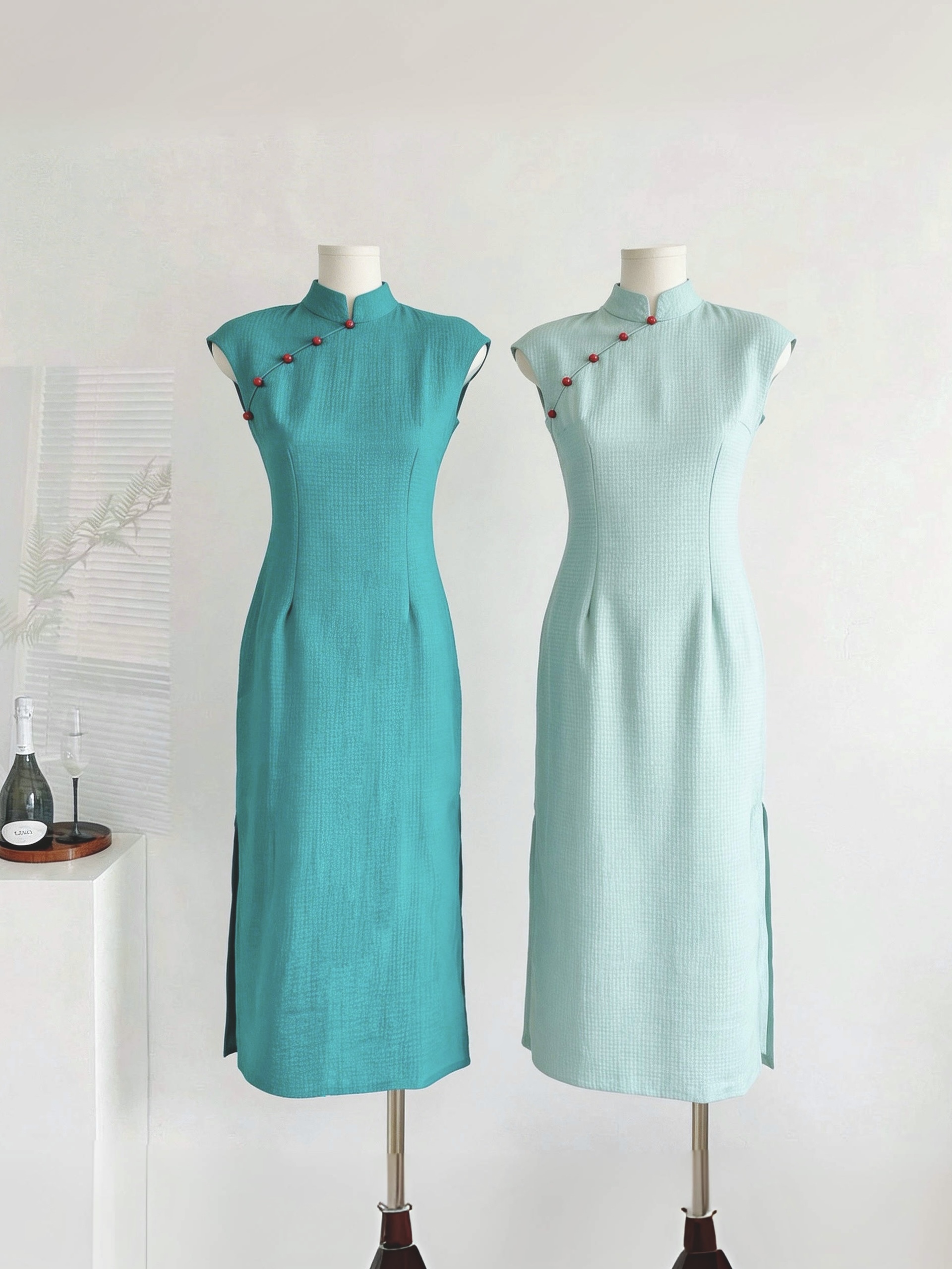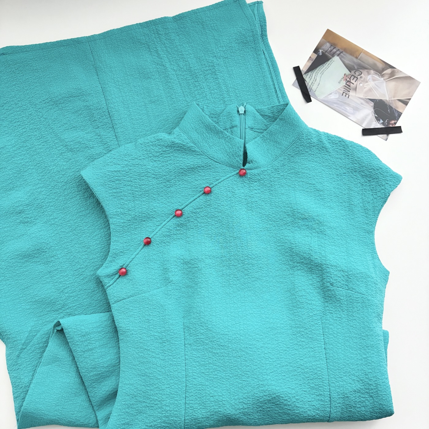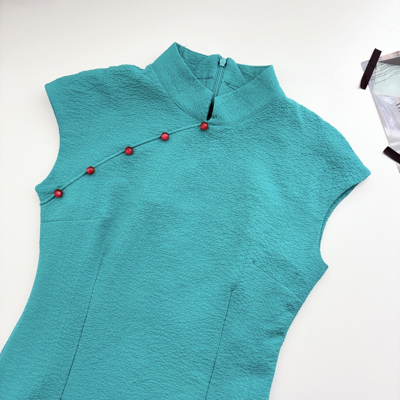 凌茜恣禾 碧城春曲'新中式冰丝皱改良旗袍女春夏明媚漂亮连衣裙