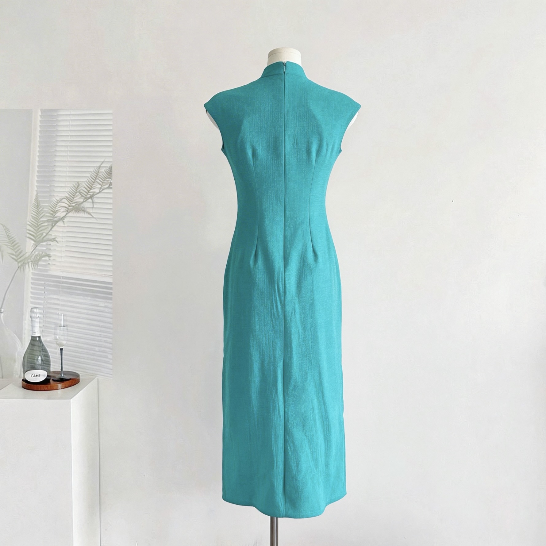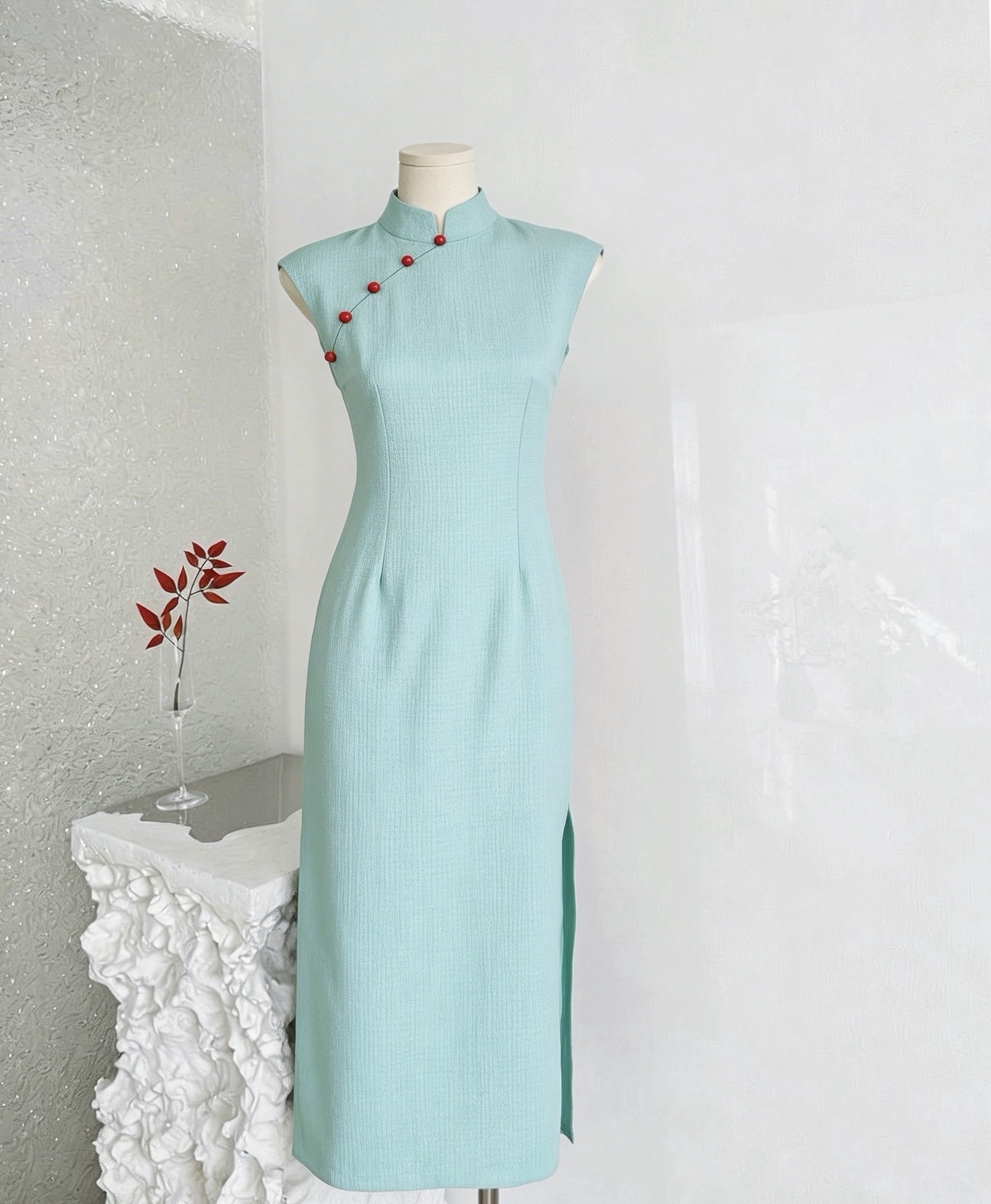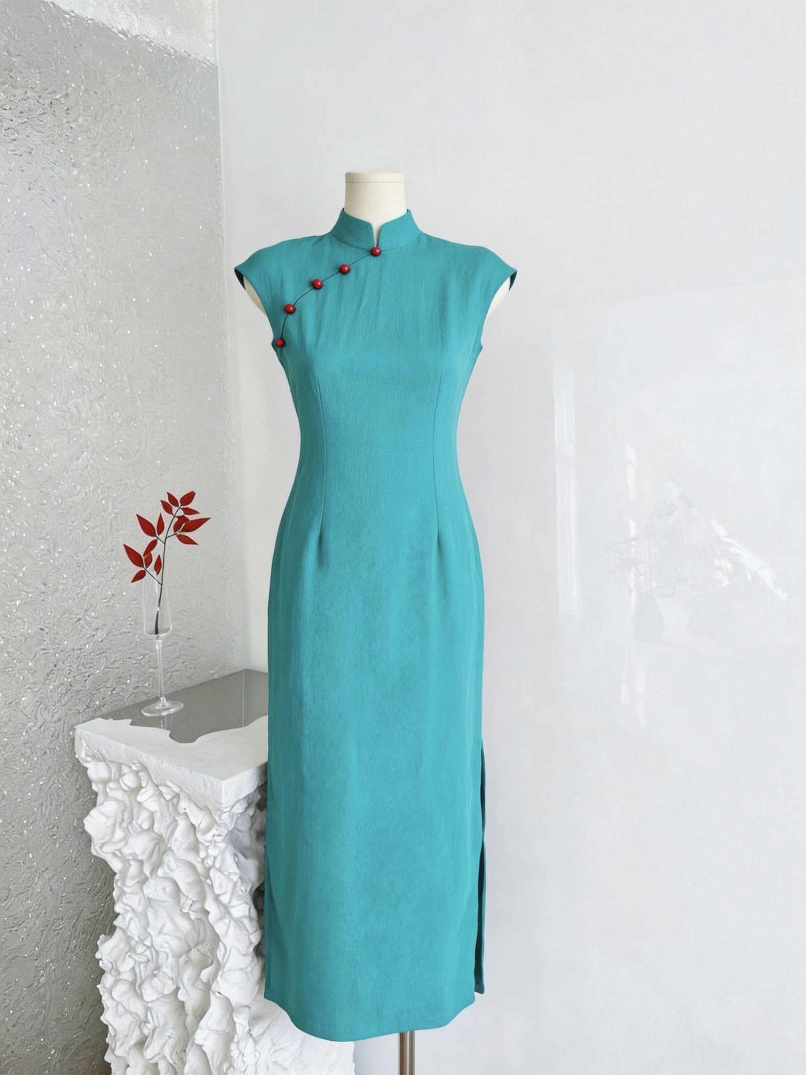 凌茜恣禾 碧城春曲'新中式冰丝皱改良旗袍女春夏明媚漂亮连衣裙