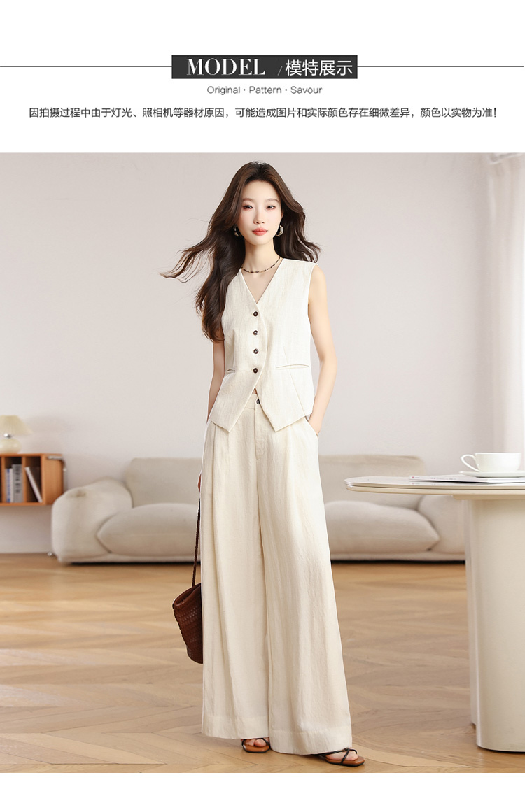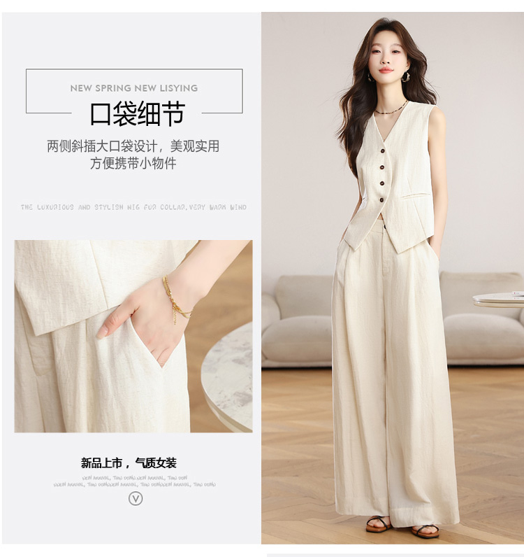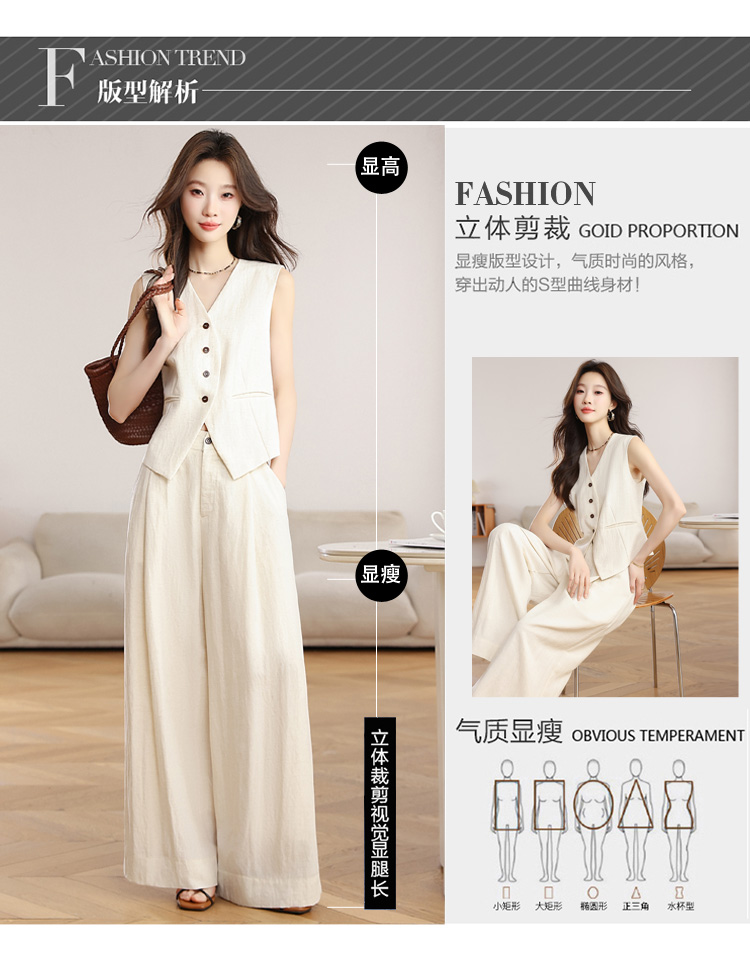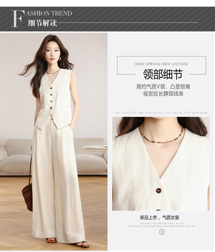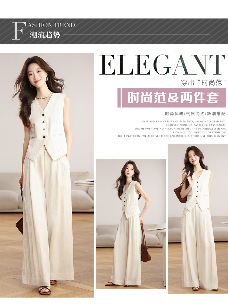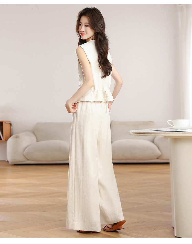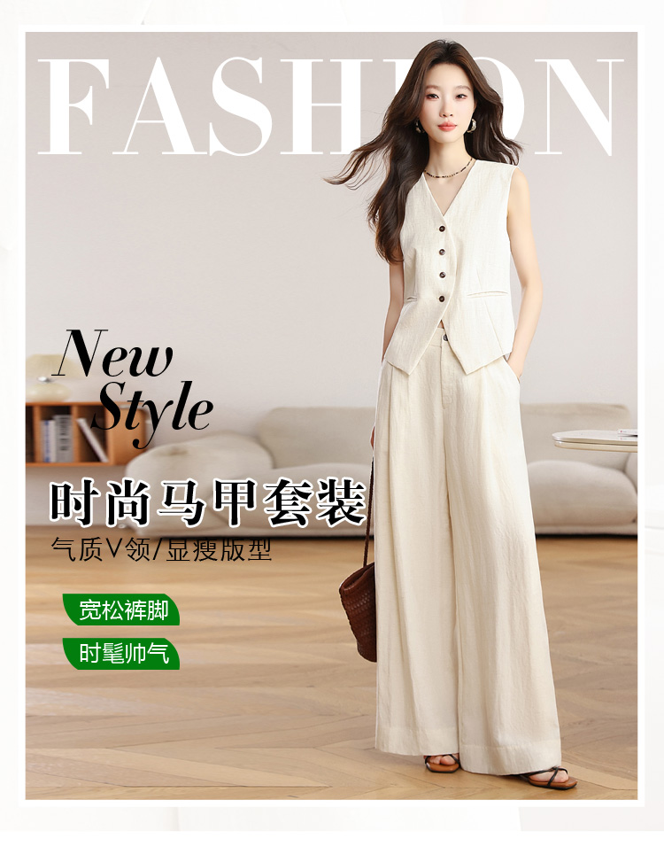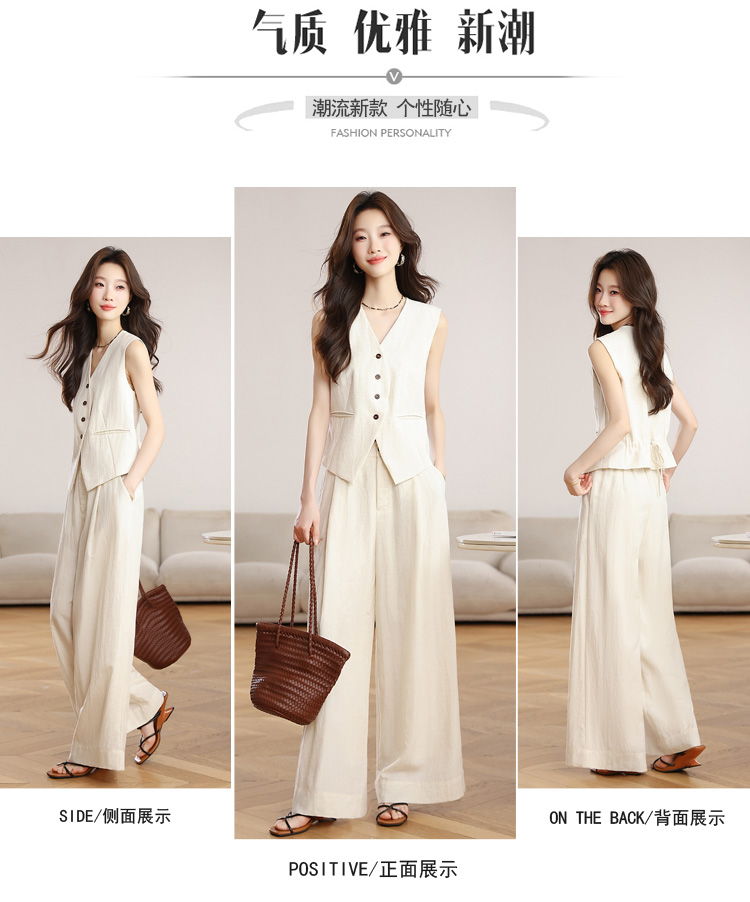 实拍 法式气质高级感穿搭套装女夏季新款老钱风马甲阔腿裤两件套