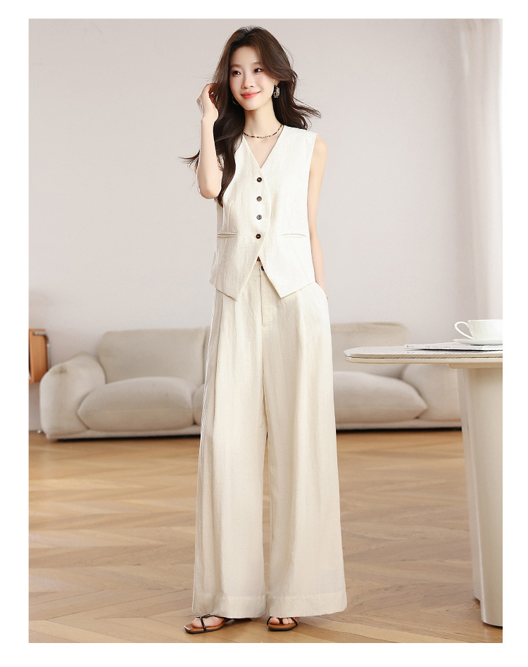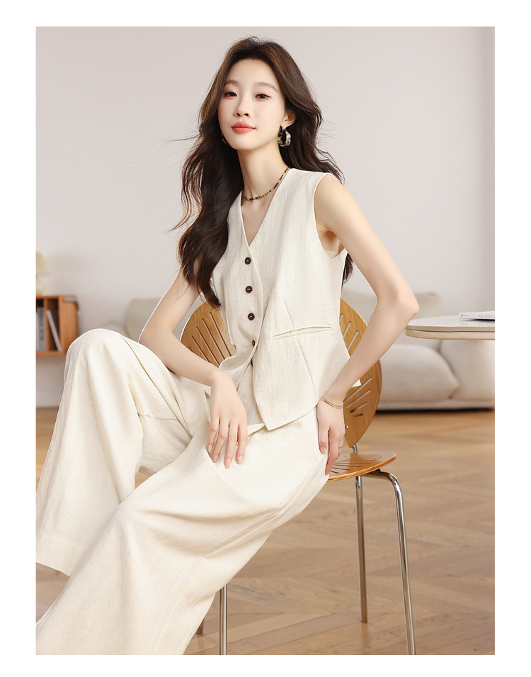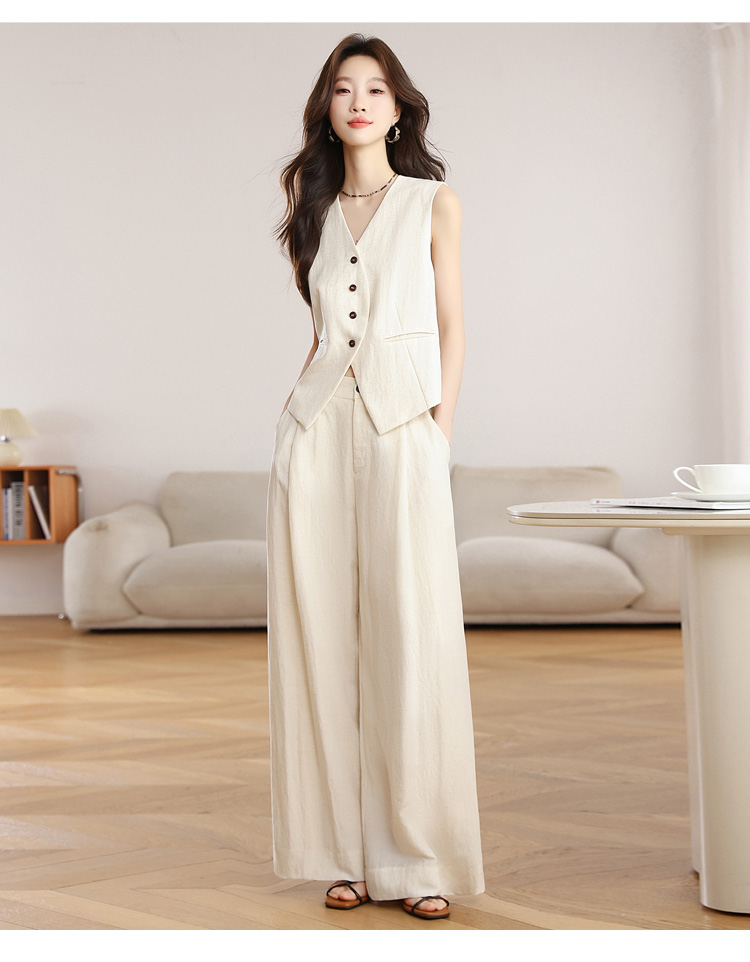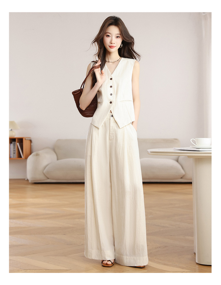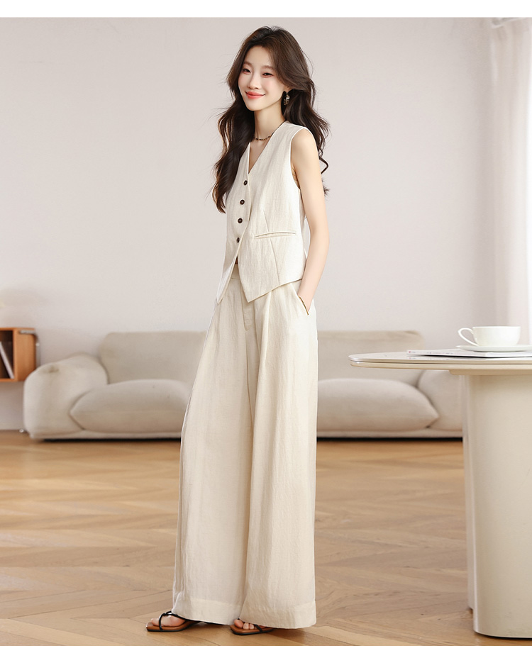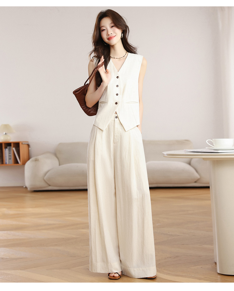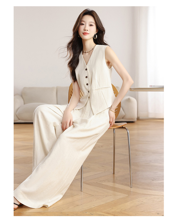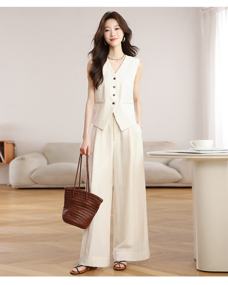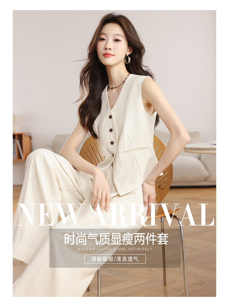 实拍 法式气质高级感穿搭套装女夏季新款老钱风马甲阔腿裤两件套