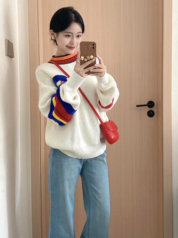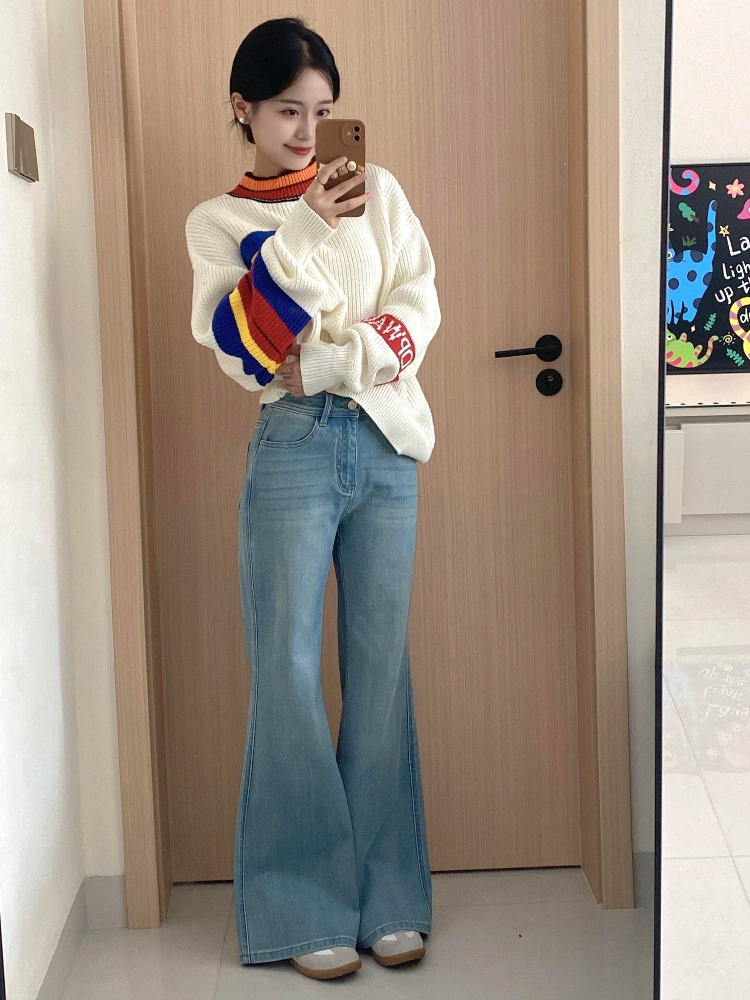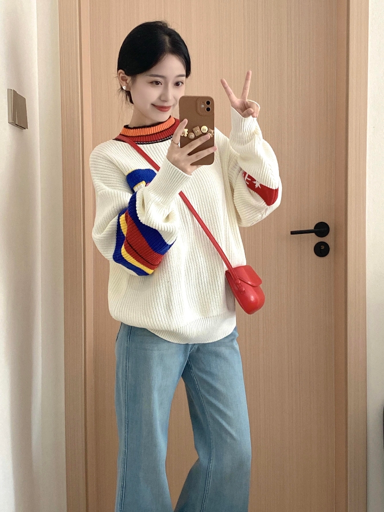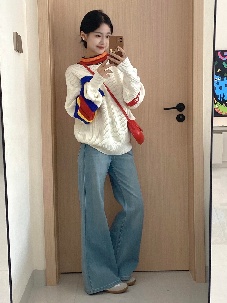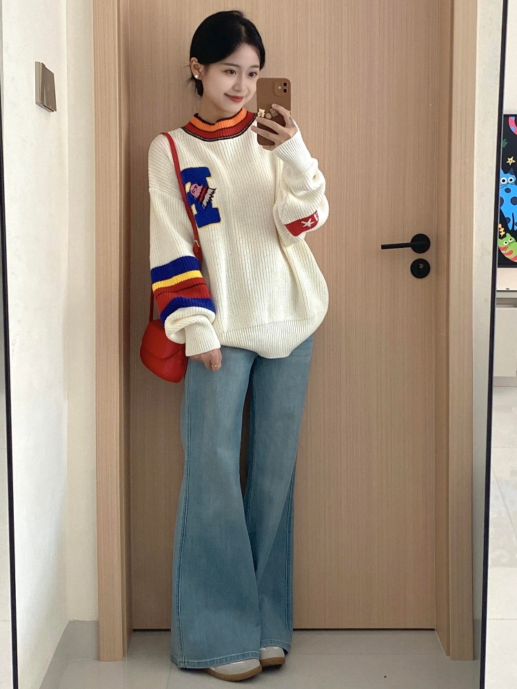 秋冬搭配一整套韩系减龄套头针织衫牛仔裤韩系慵懒风两件套套装女