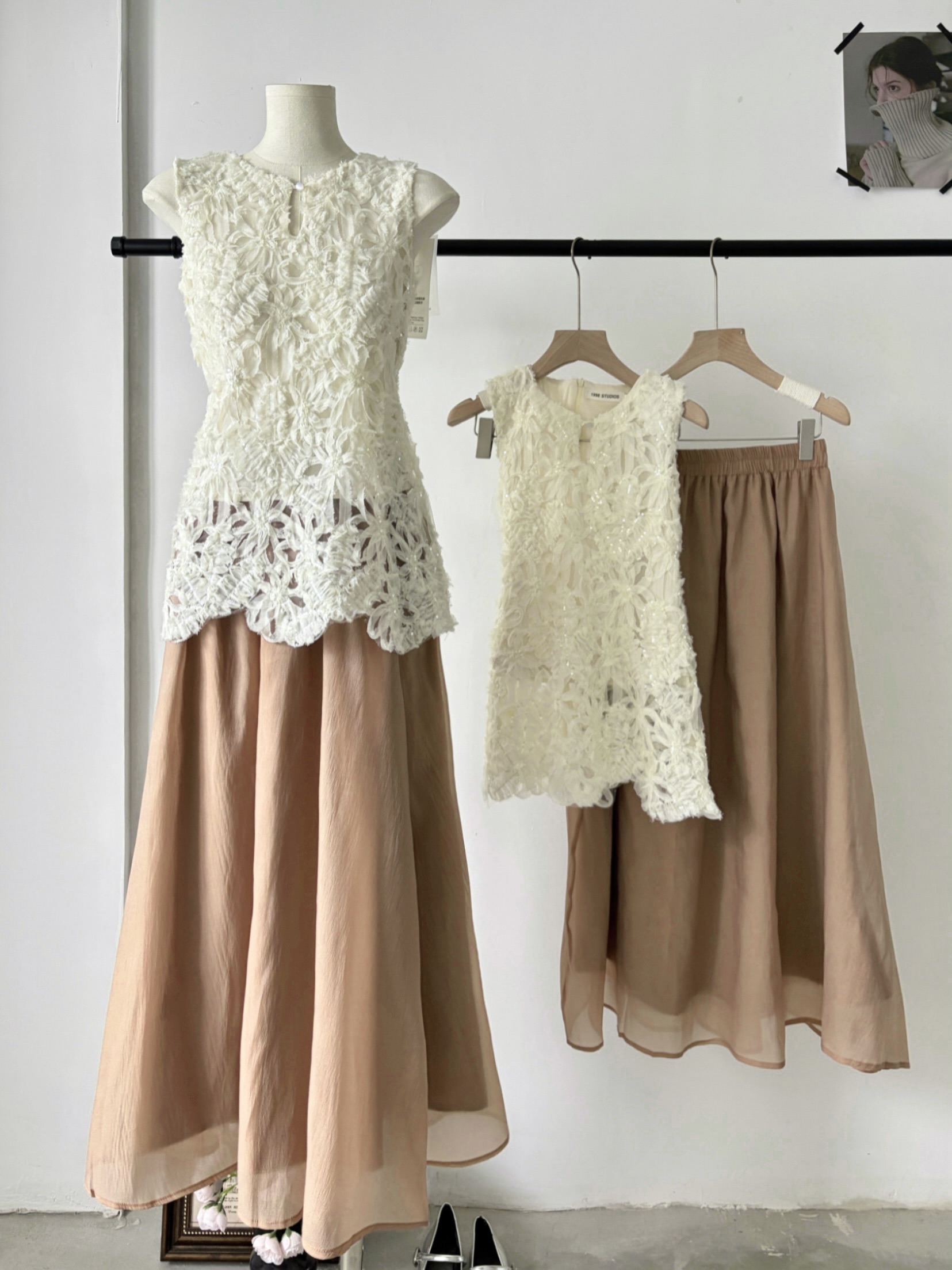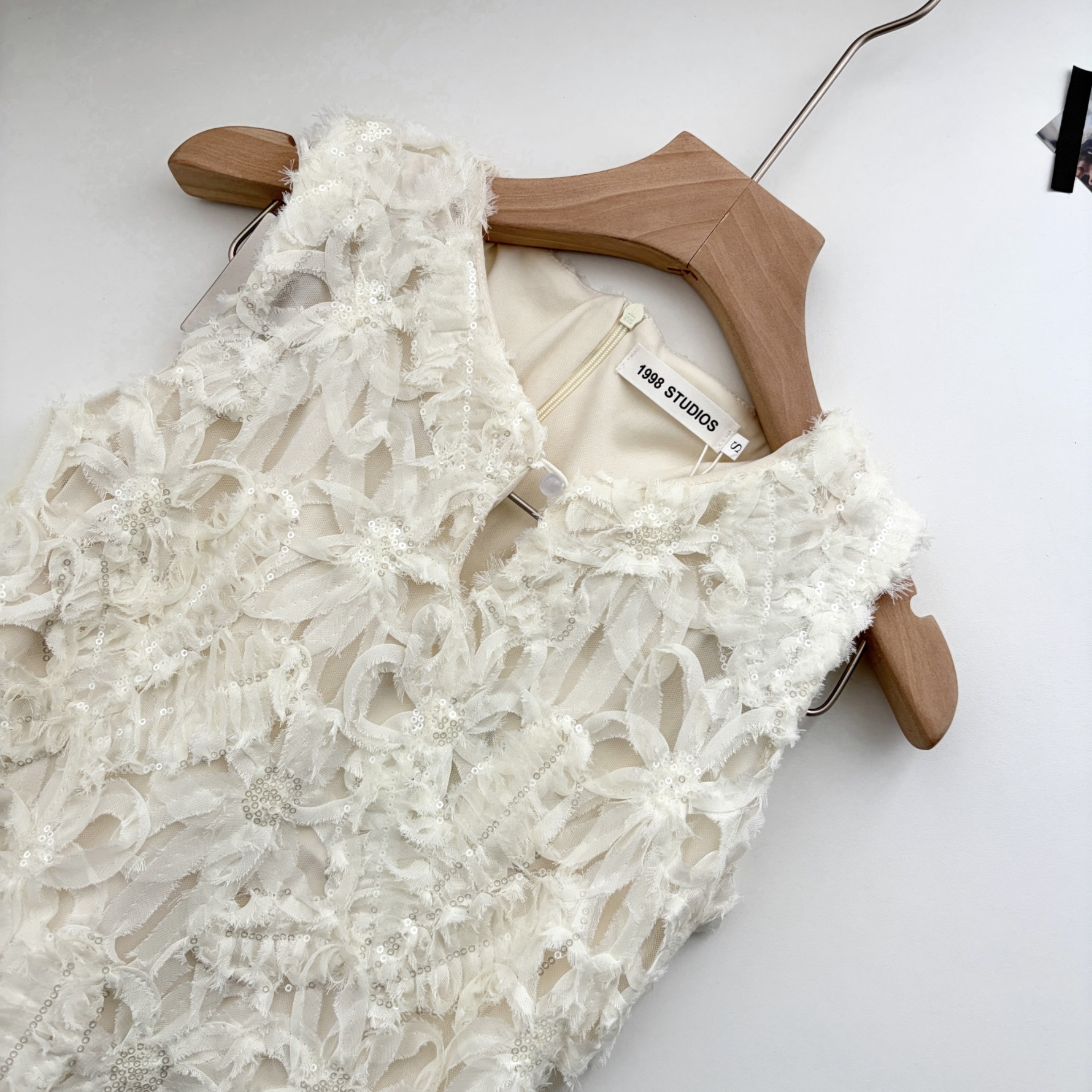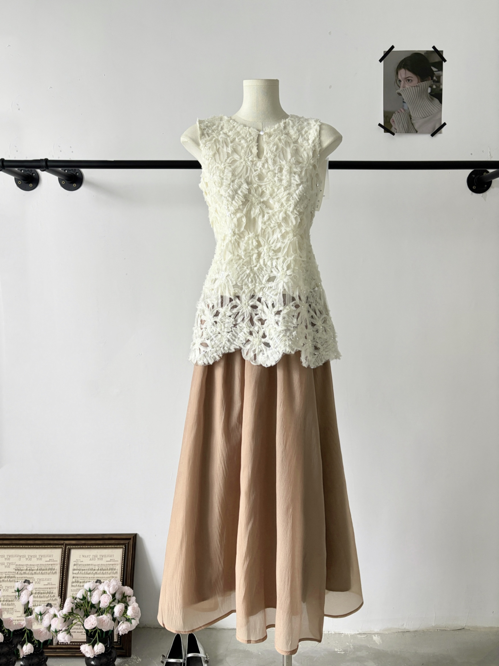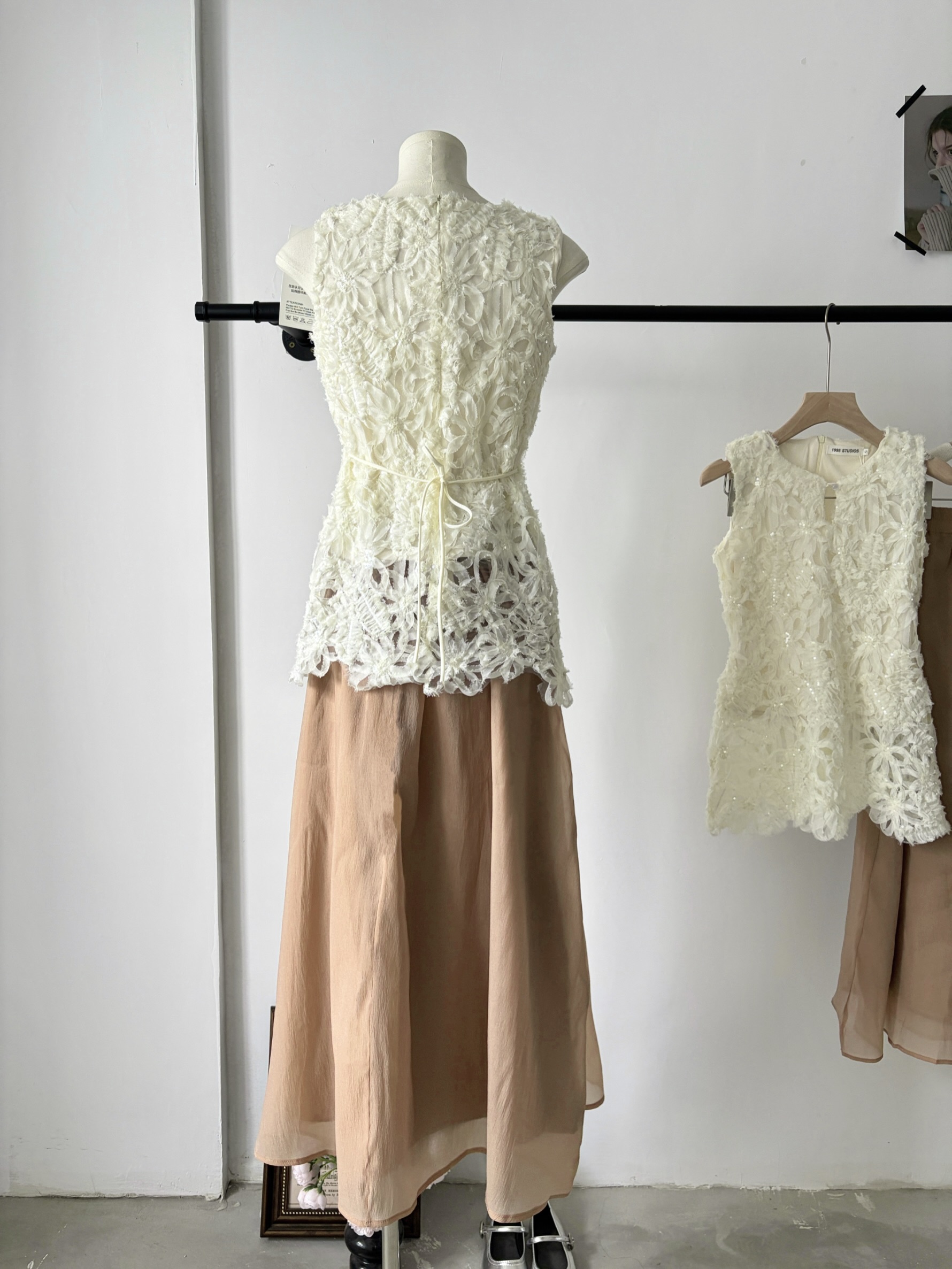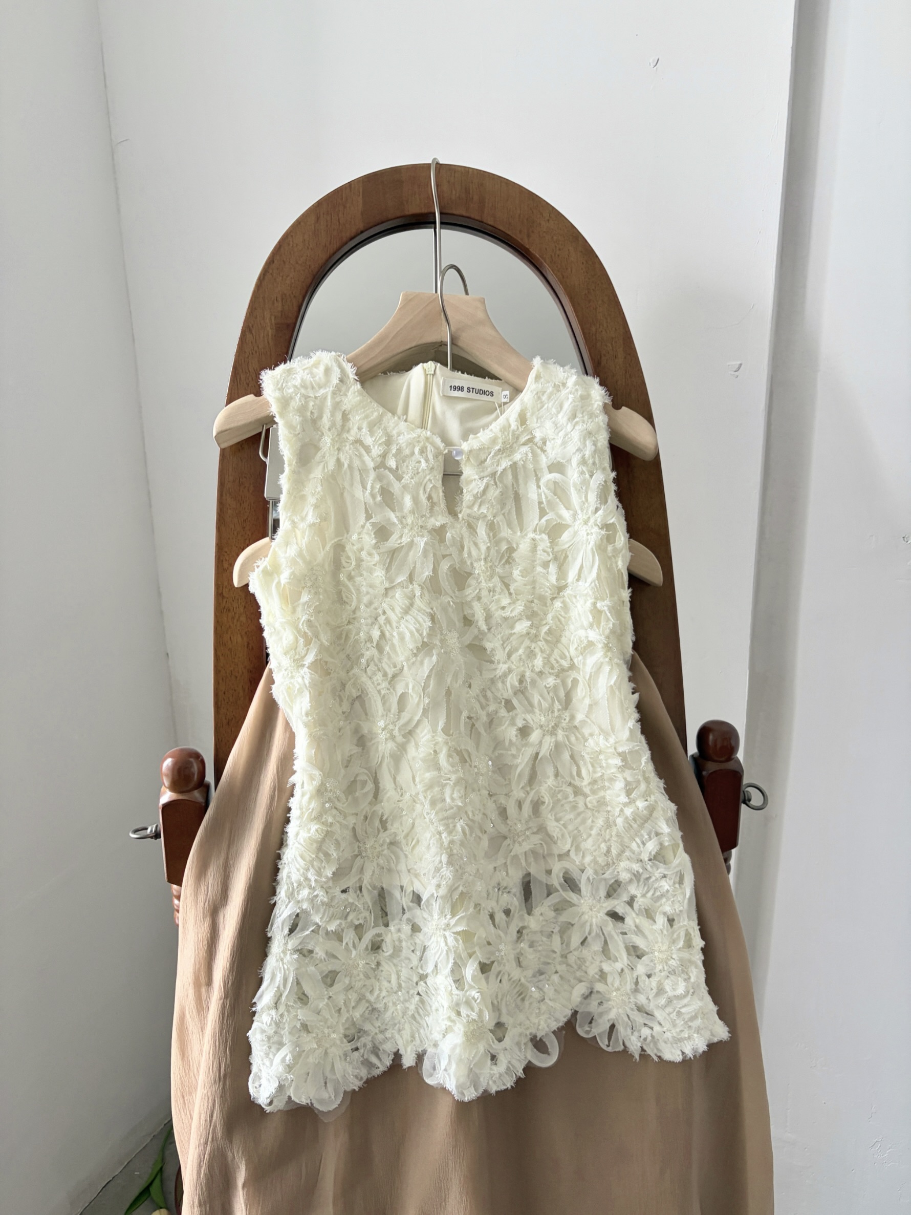 木子李的李法式优雅无袖立体刺绣镂空蕾丝背心收腰气质外穿上衣夏