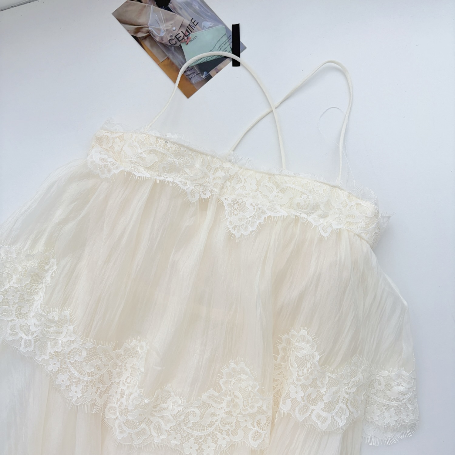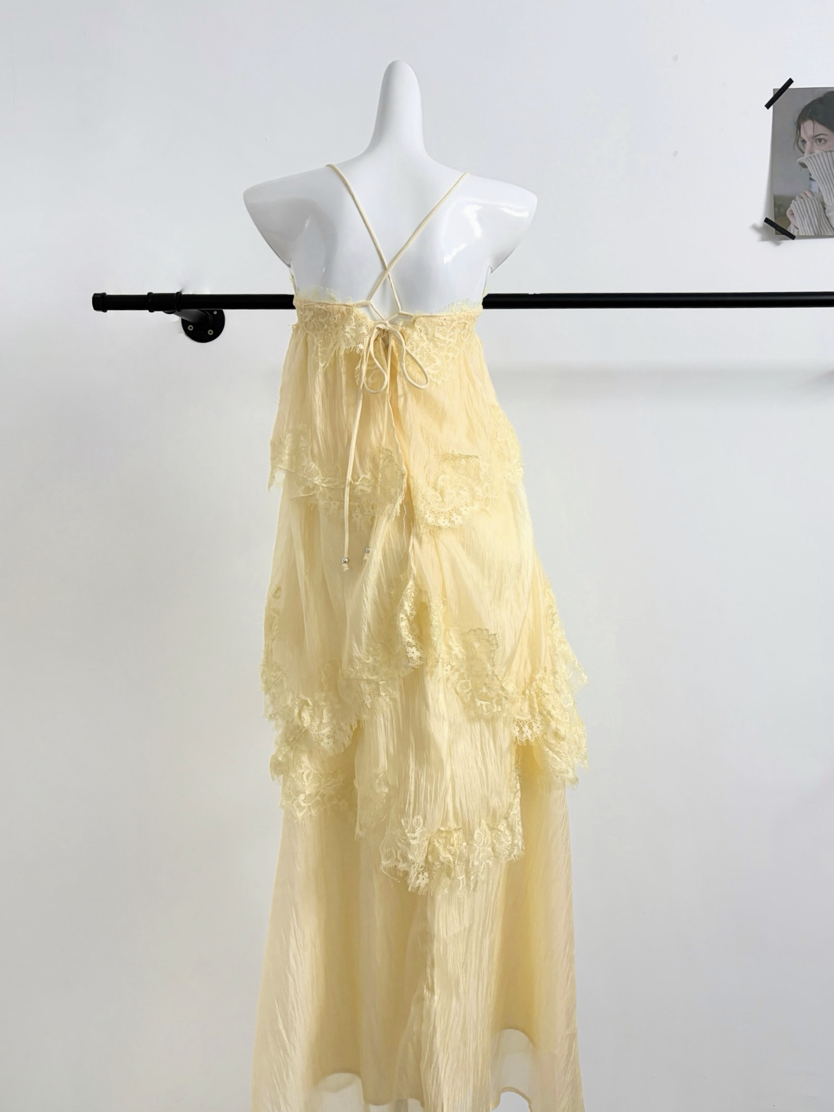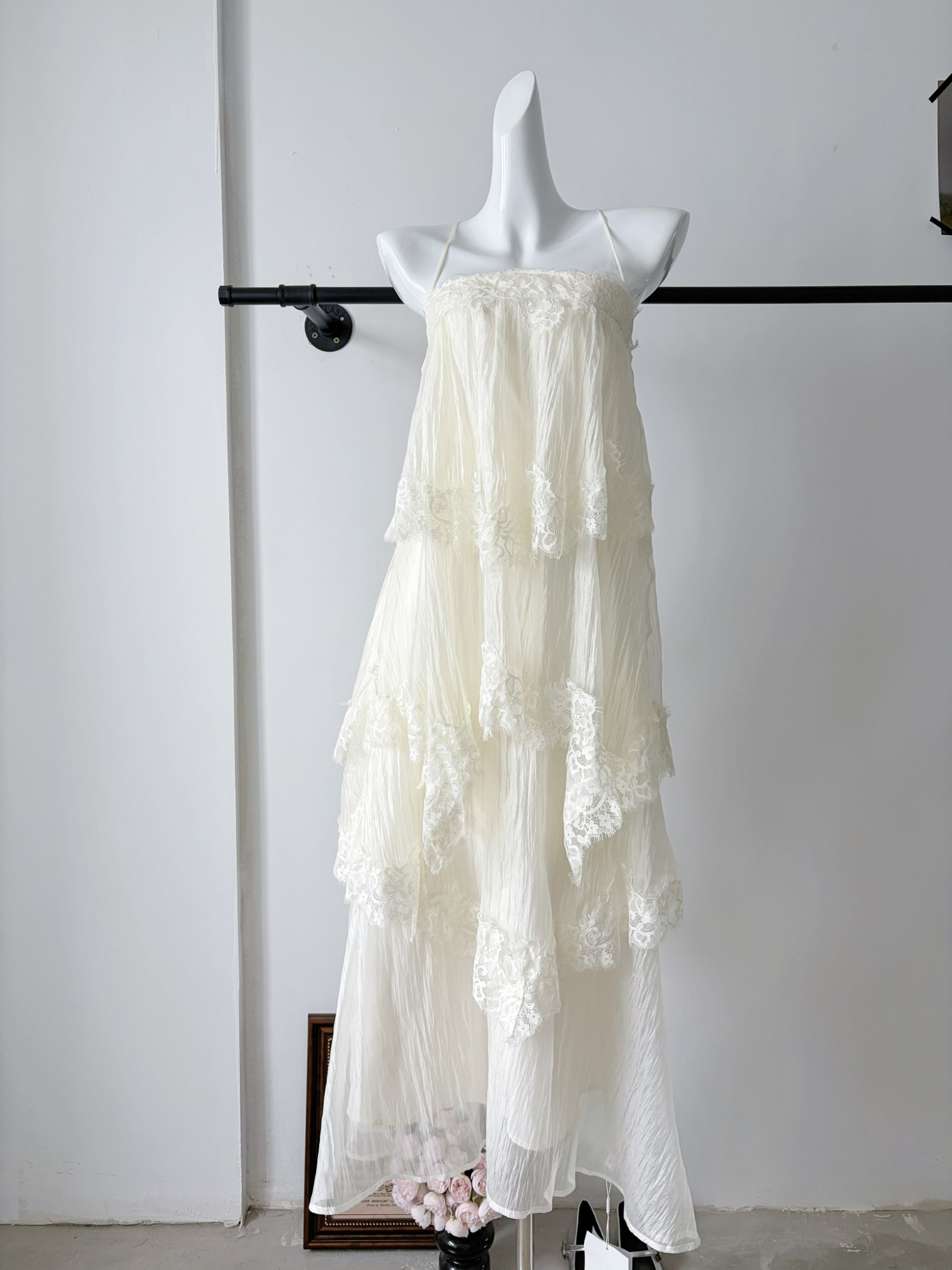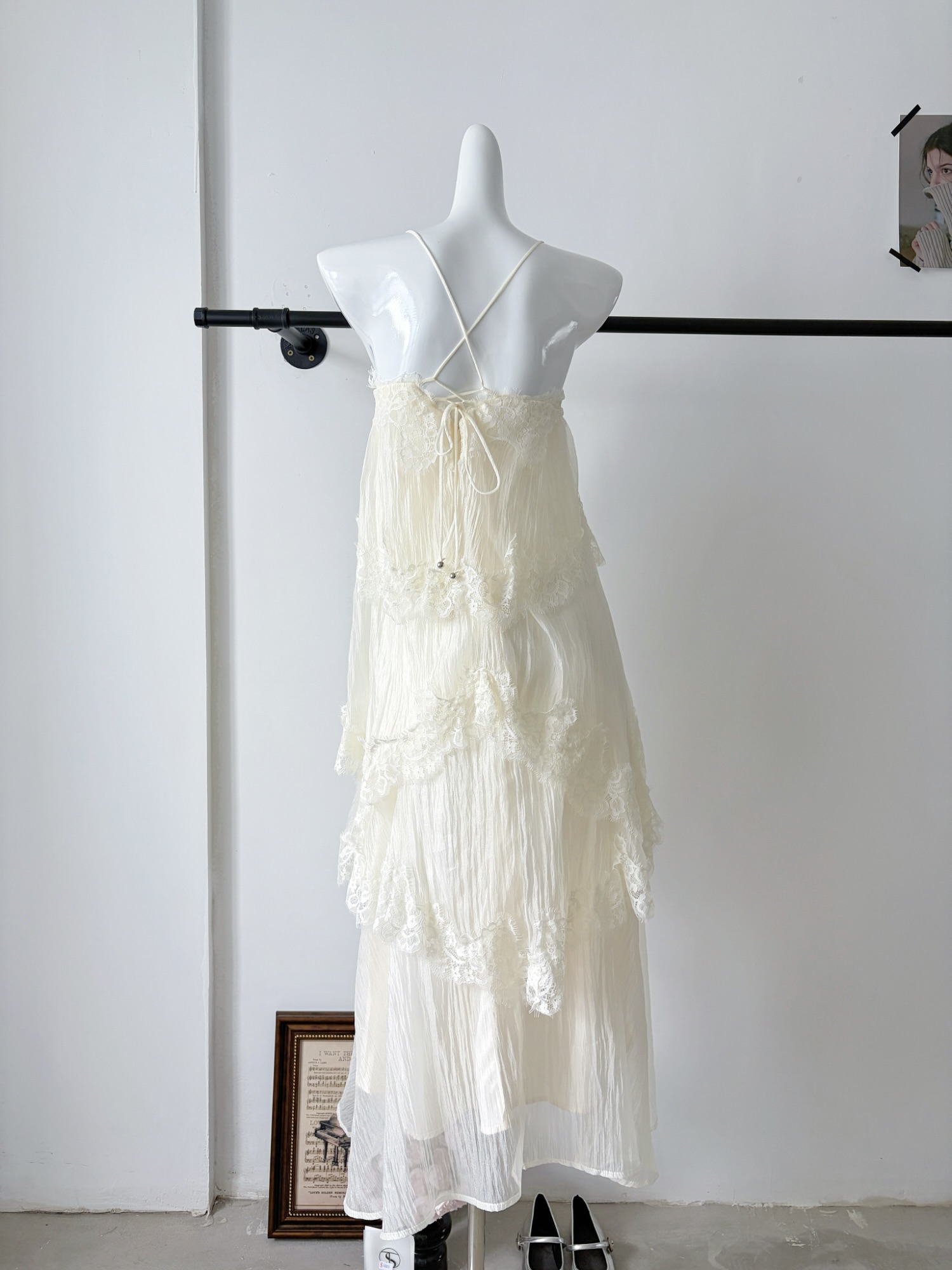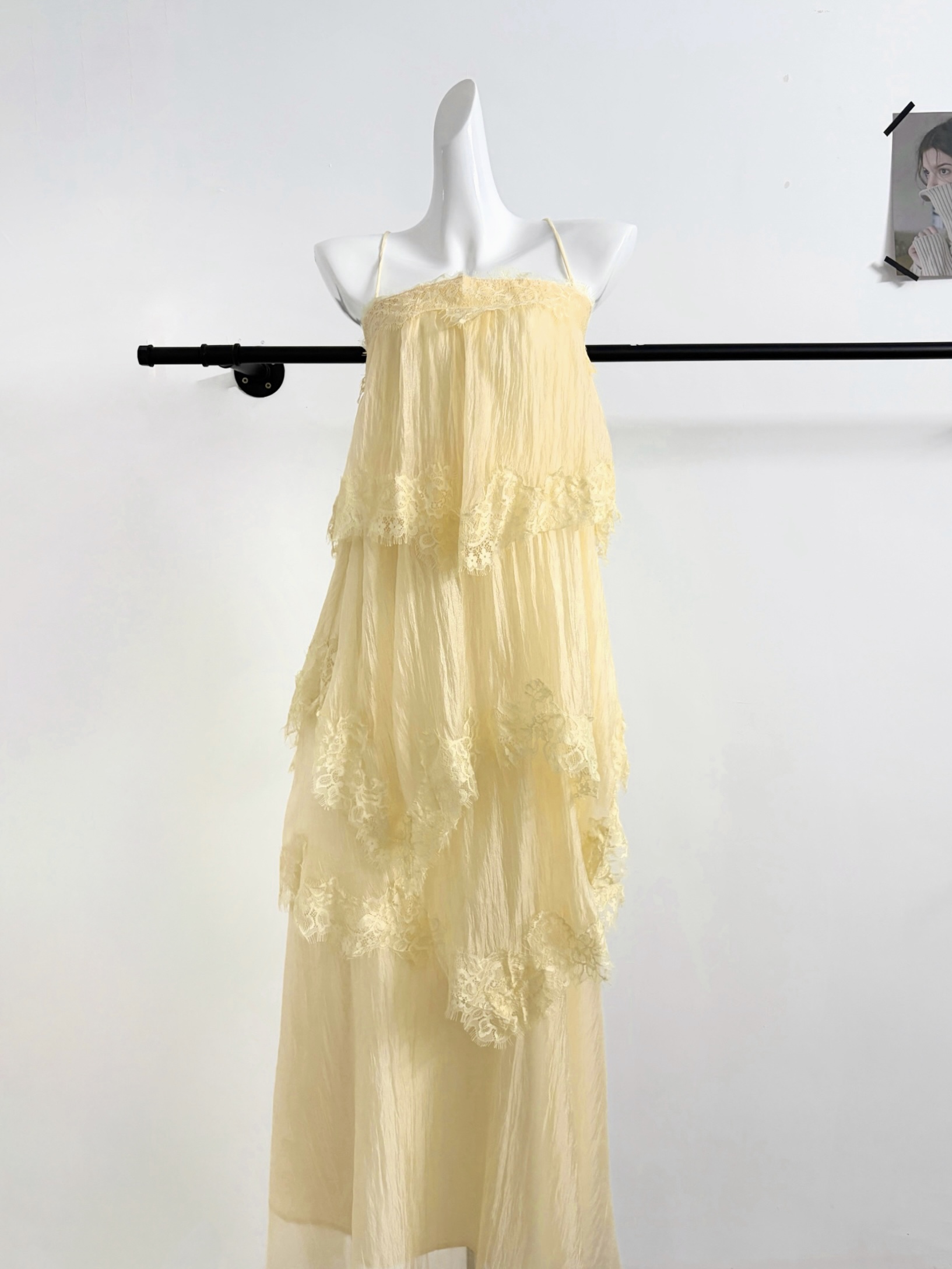 从一时刻光迹法式吊带蕾丝大摆连衣裙女温柔风度假显瘦蛋糕裙