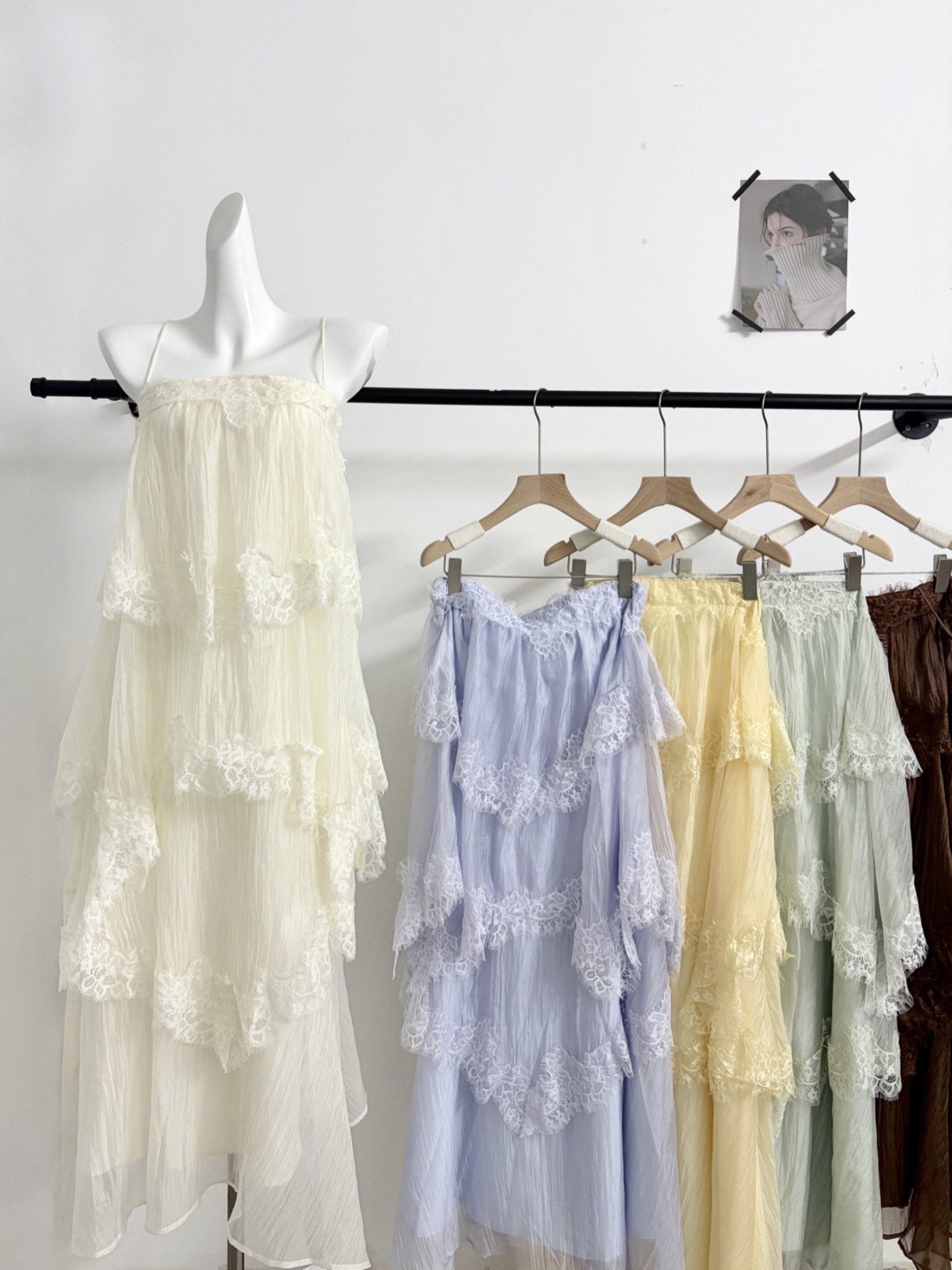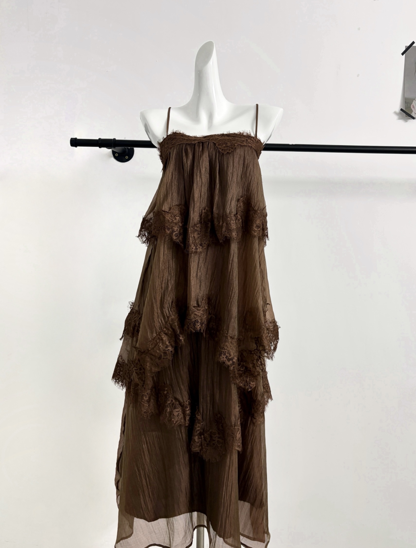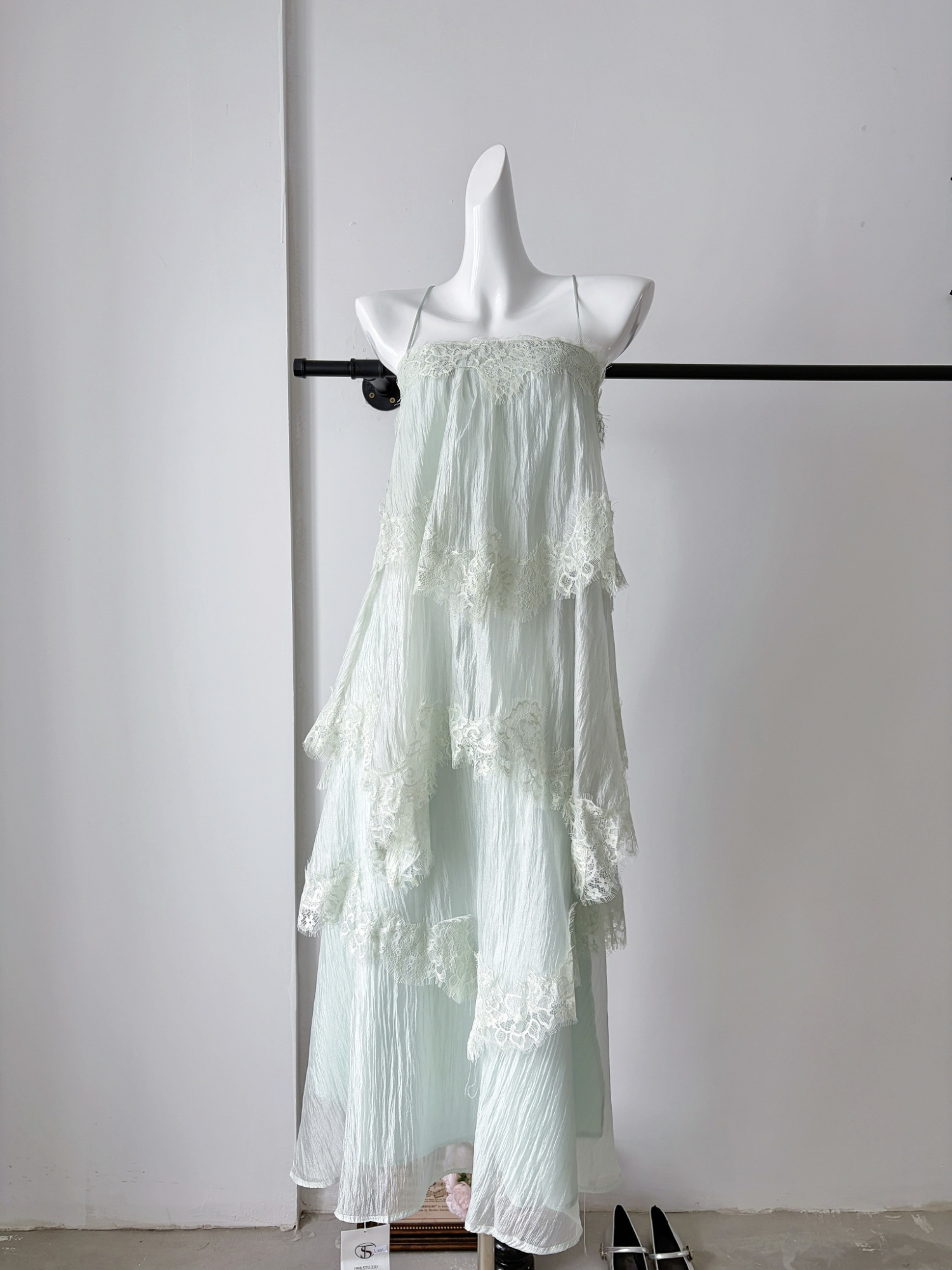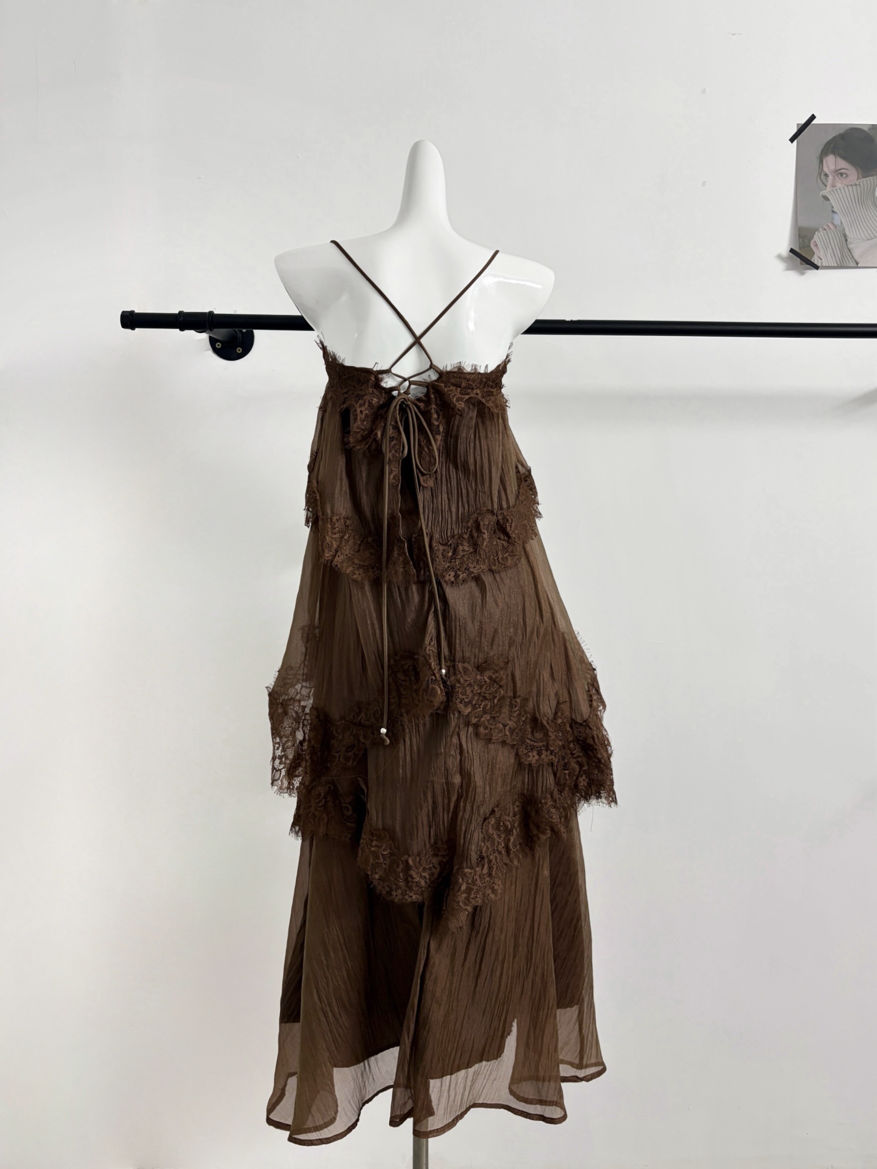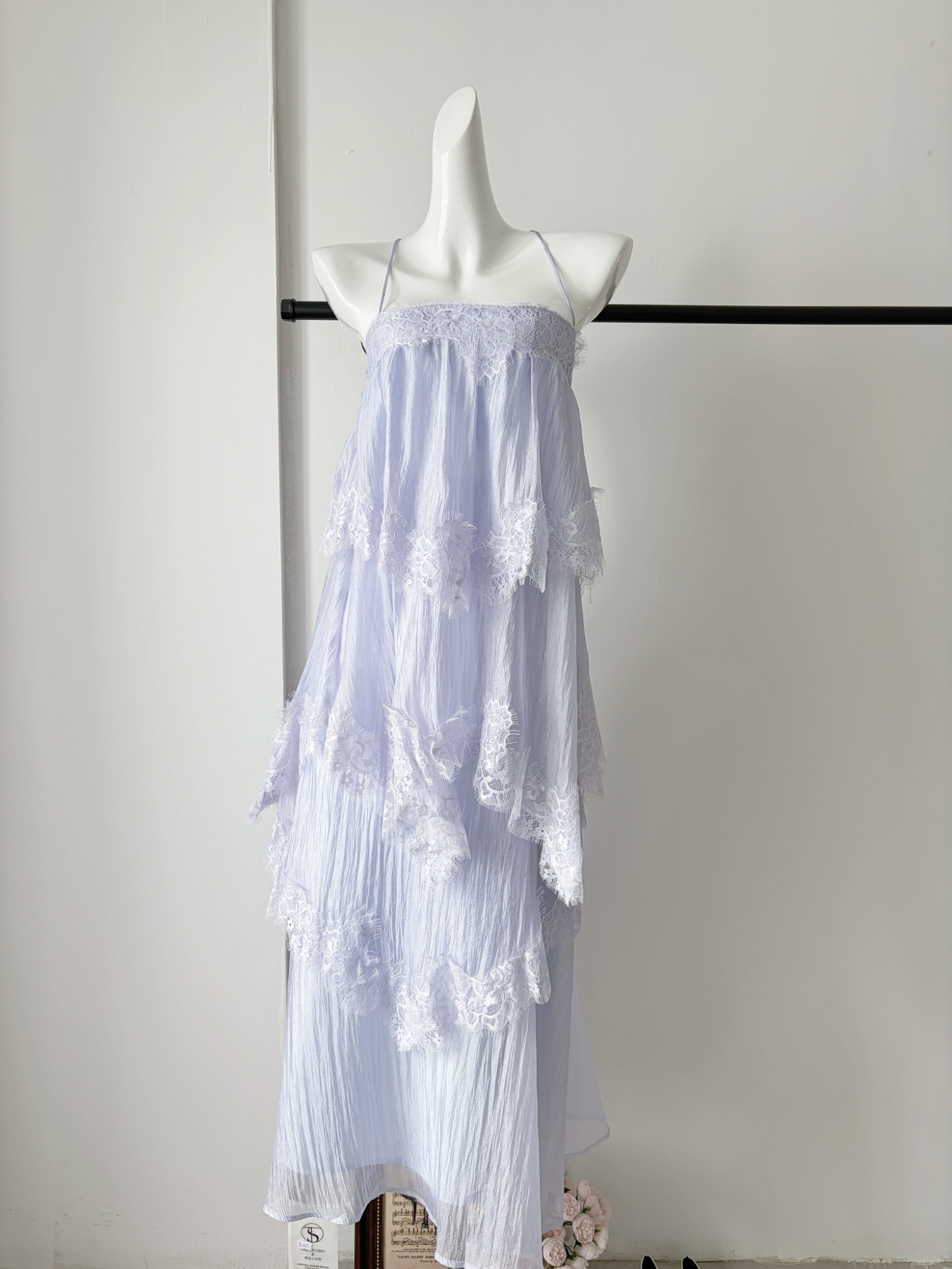 从一时刻光迹法式吊带蕾丝大摆连衣裙女温柔风度假显瘦蛋糕裙