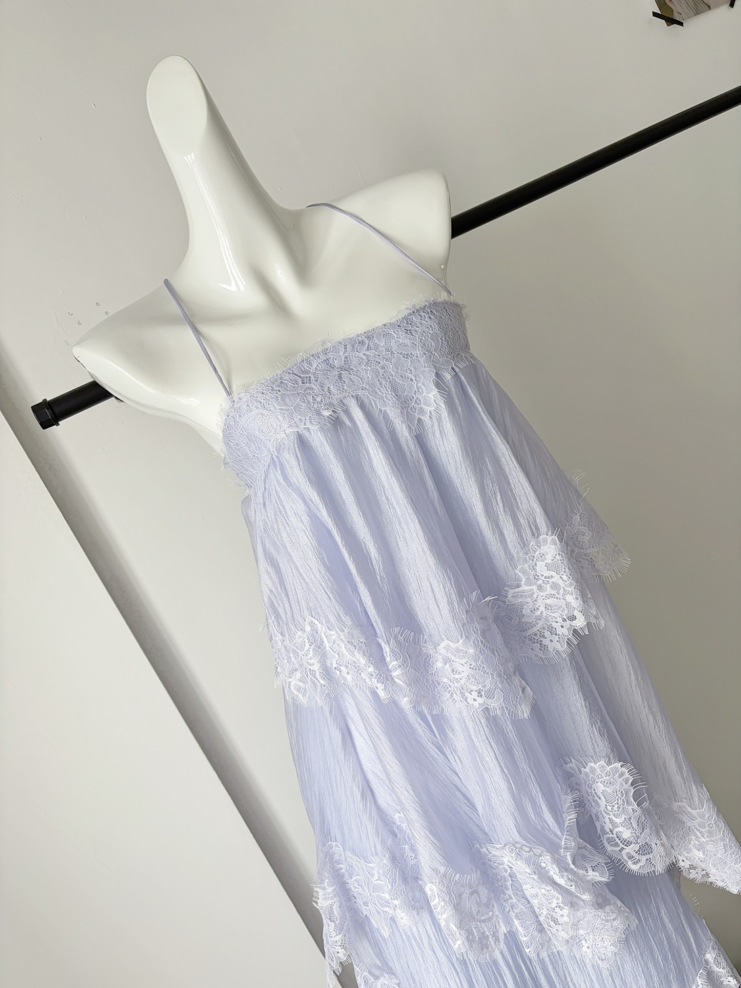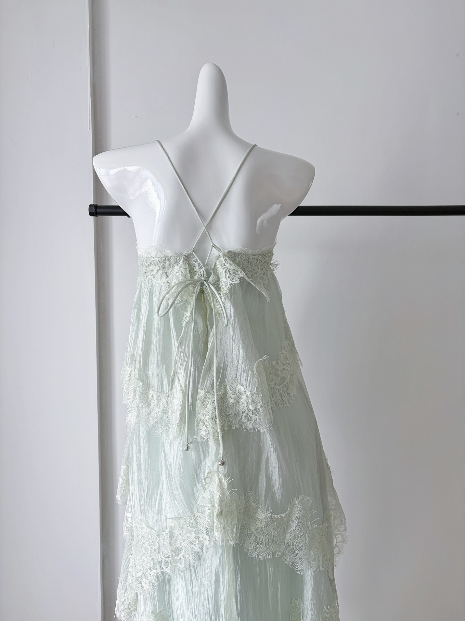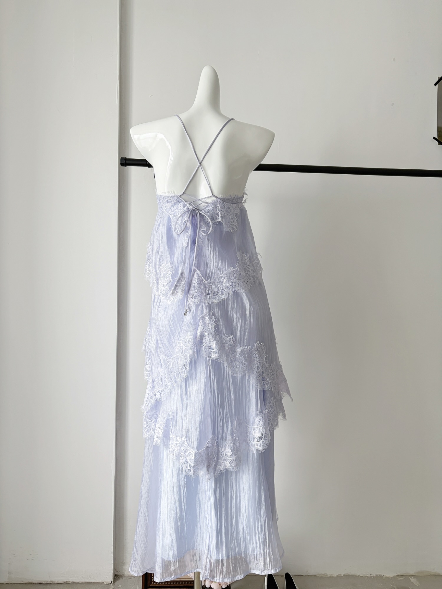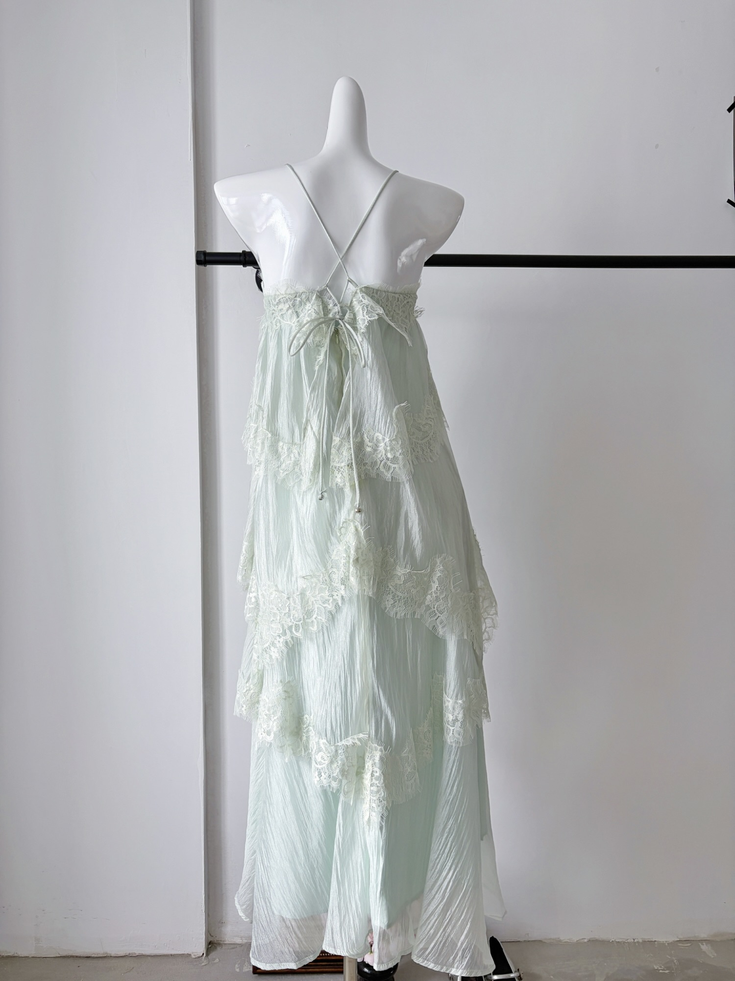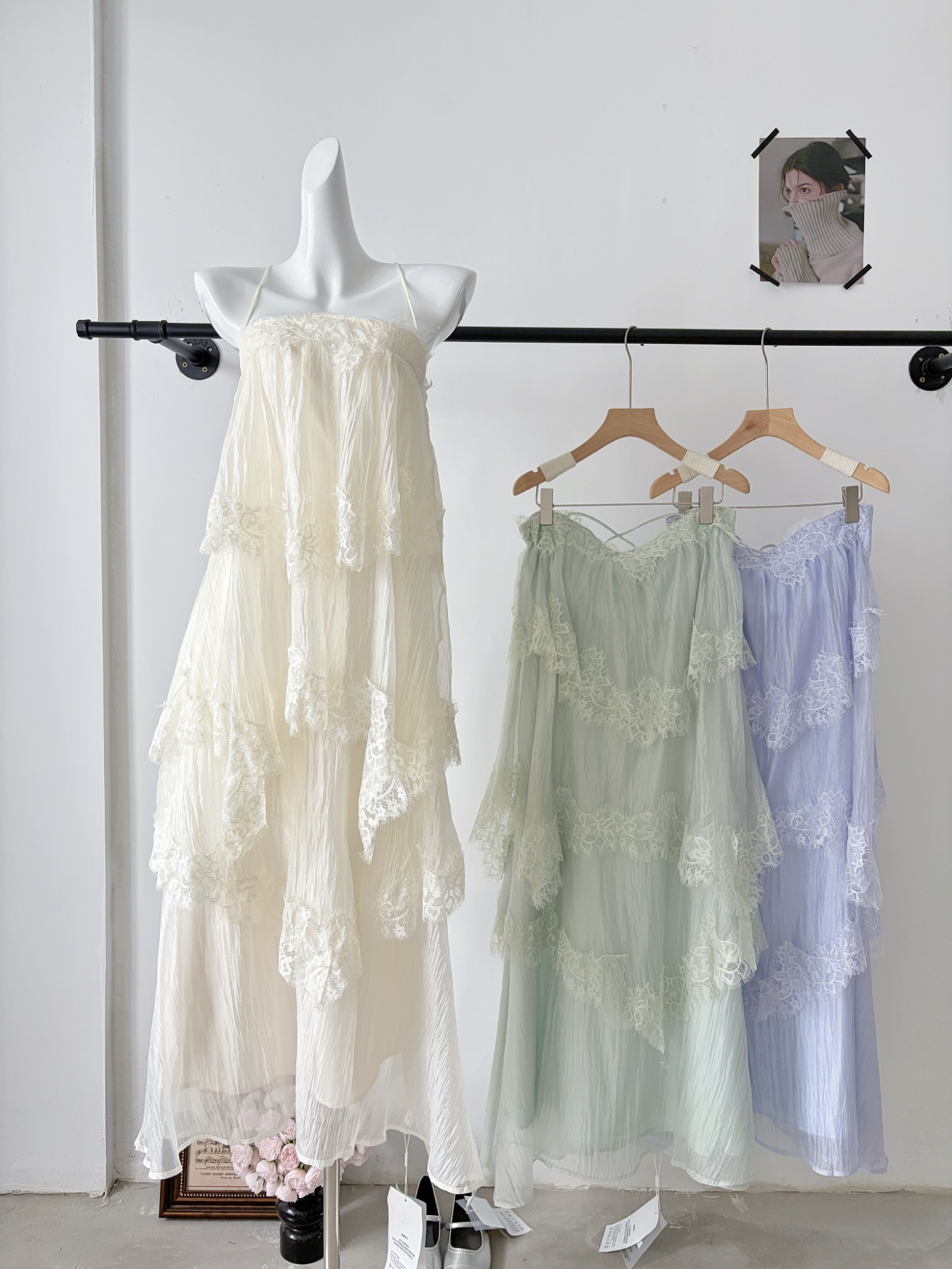从一时刻光迹法式吊带蕾丝大摆连衣裙女温柔风度假显瘦蛋糕裙