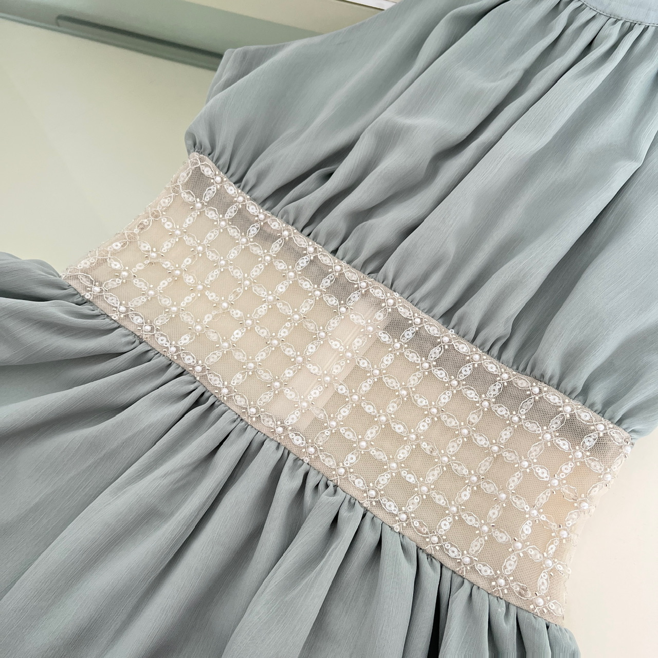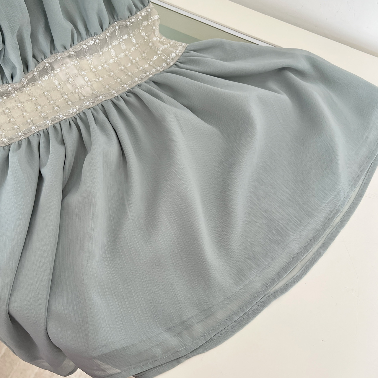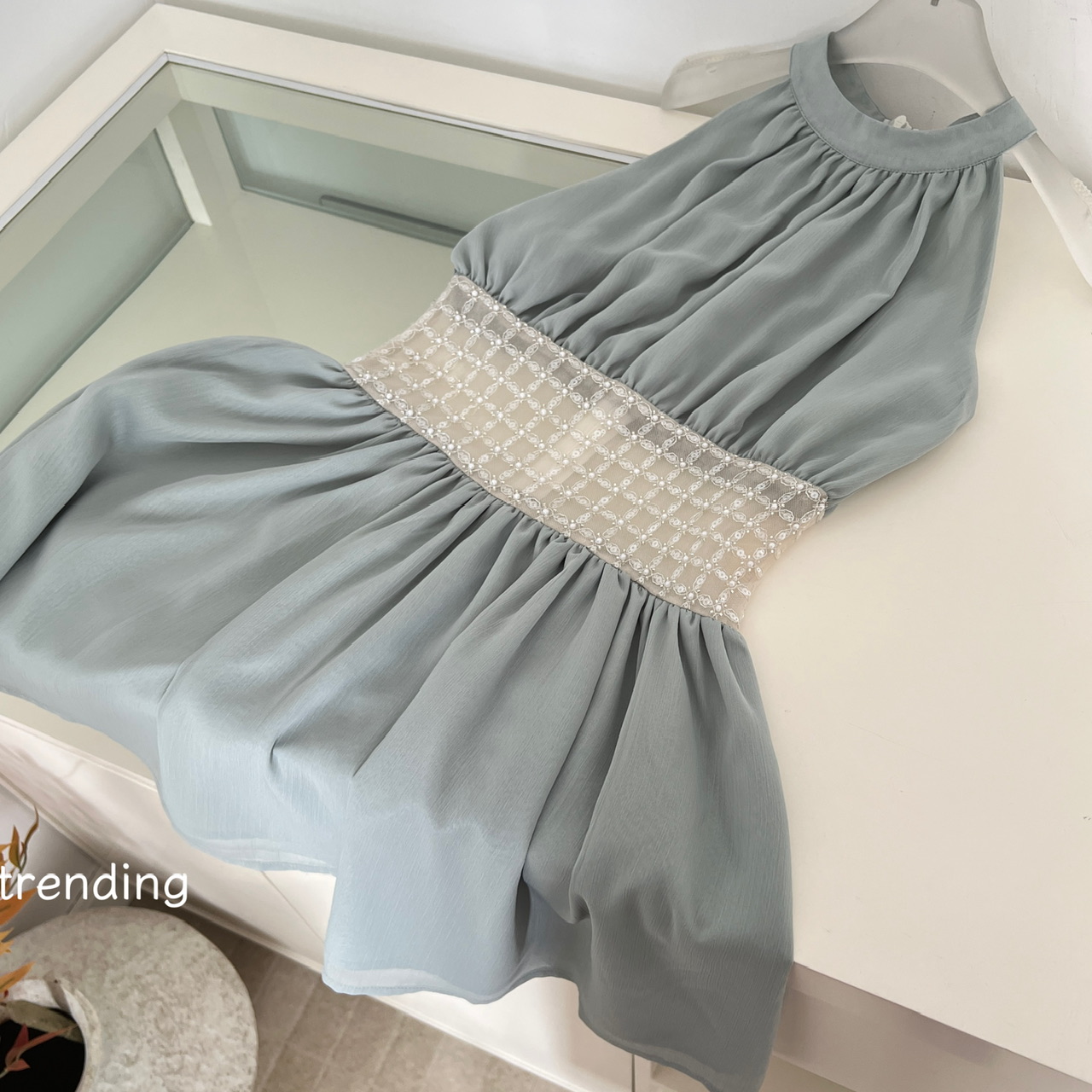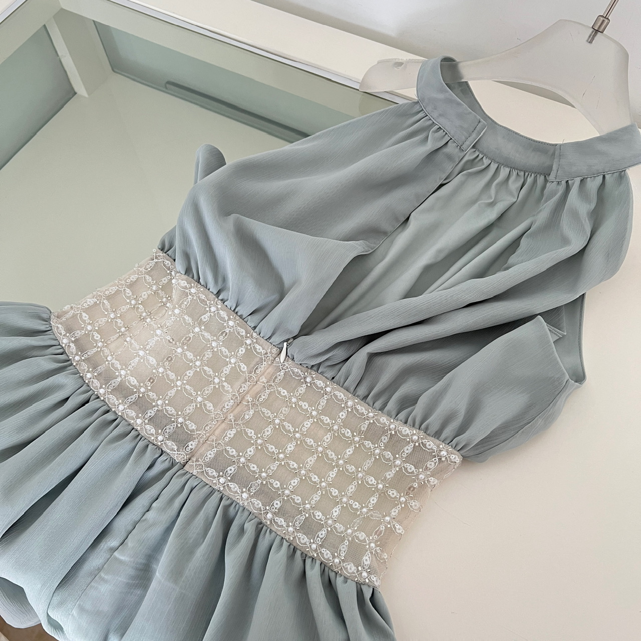 kubiliv海蓝碎珀重工挂脖挖肩纯欲氛围感手工钉珠收腰连衣裙